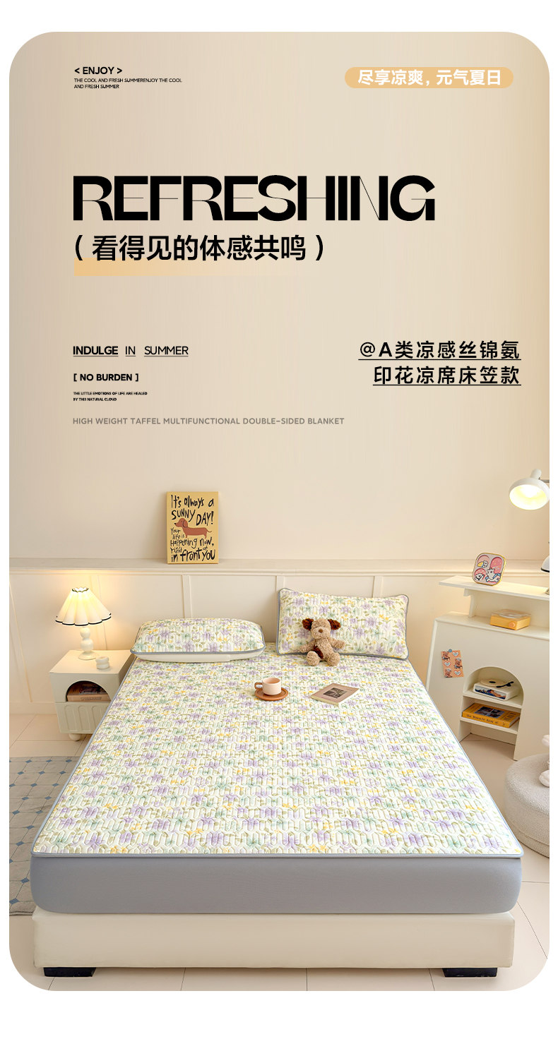 2026新款A类凉感丝锦氨印花凉席床笠款凉席席子系列