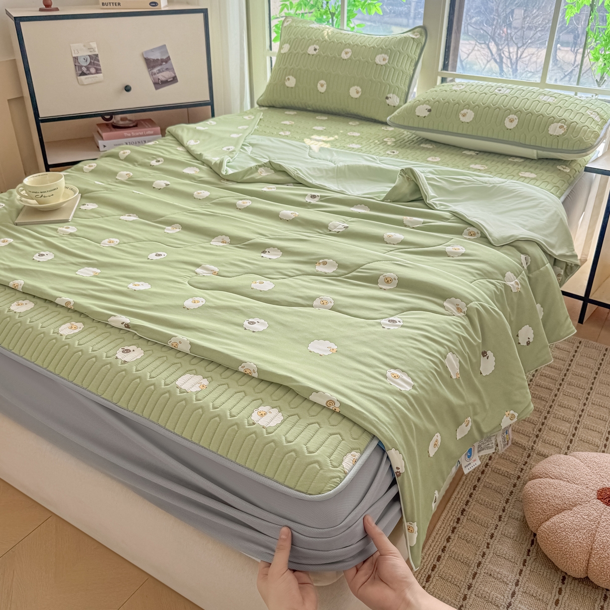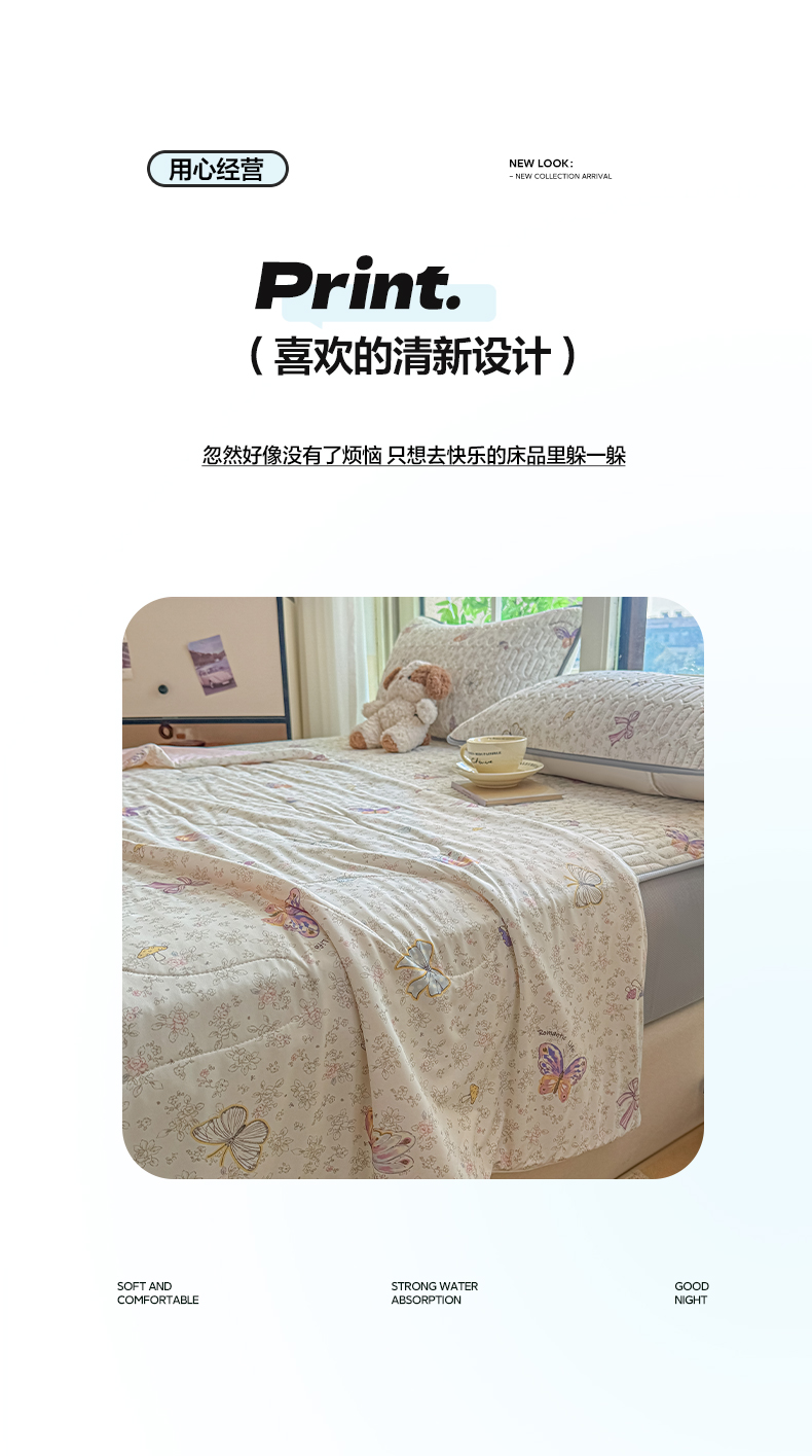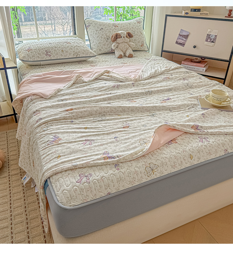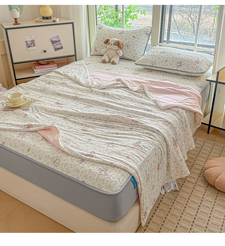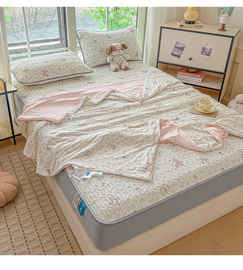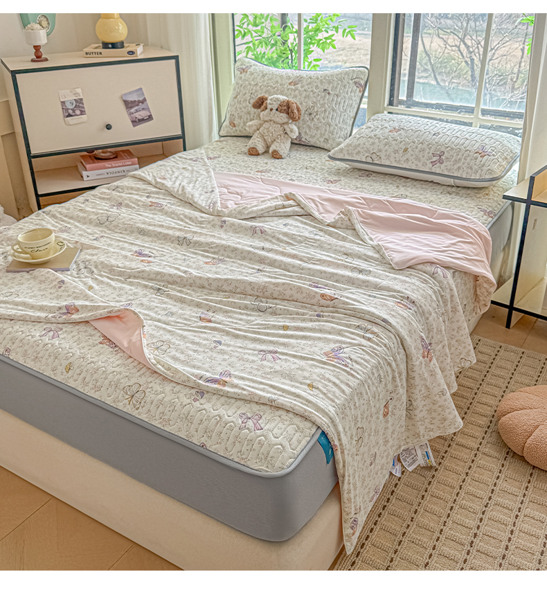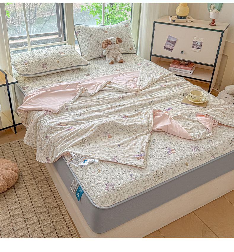 2025新款A类云母凉感丝豆豆被夏被凉席系列-夏被四件套