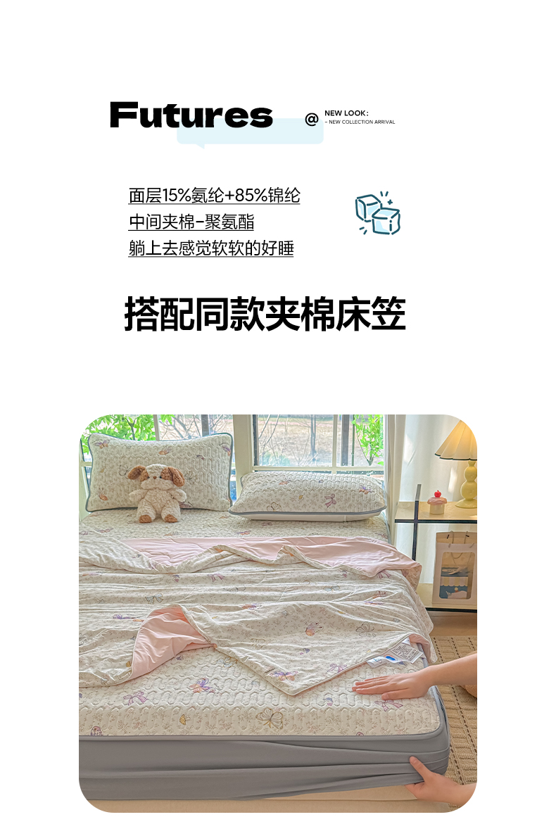 2026春夏新款A类冰淇淋凉感丝氨纶夹棉聚氨酯单床笠-曲纹