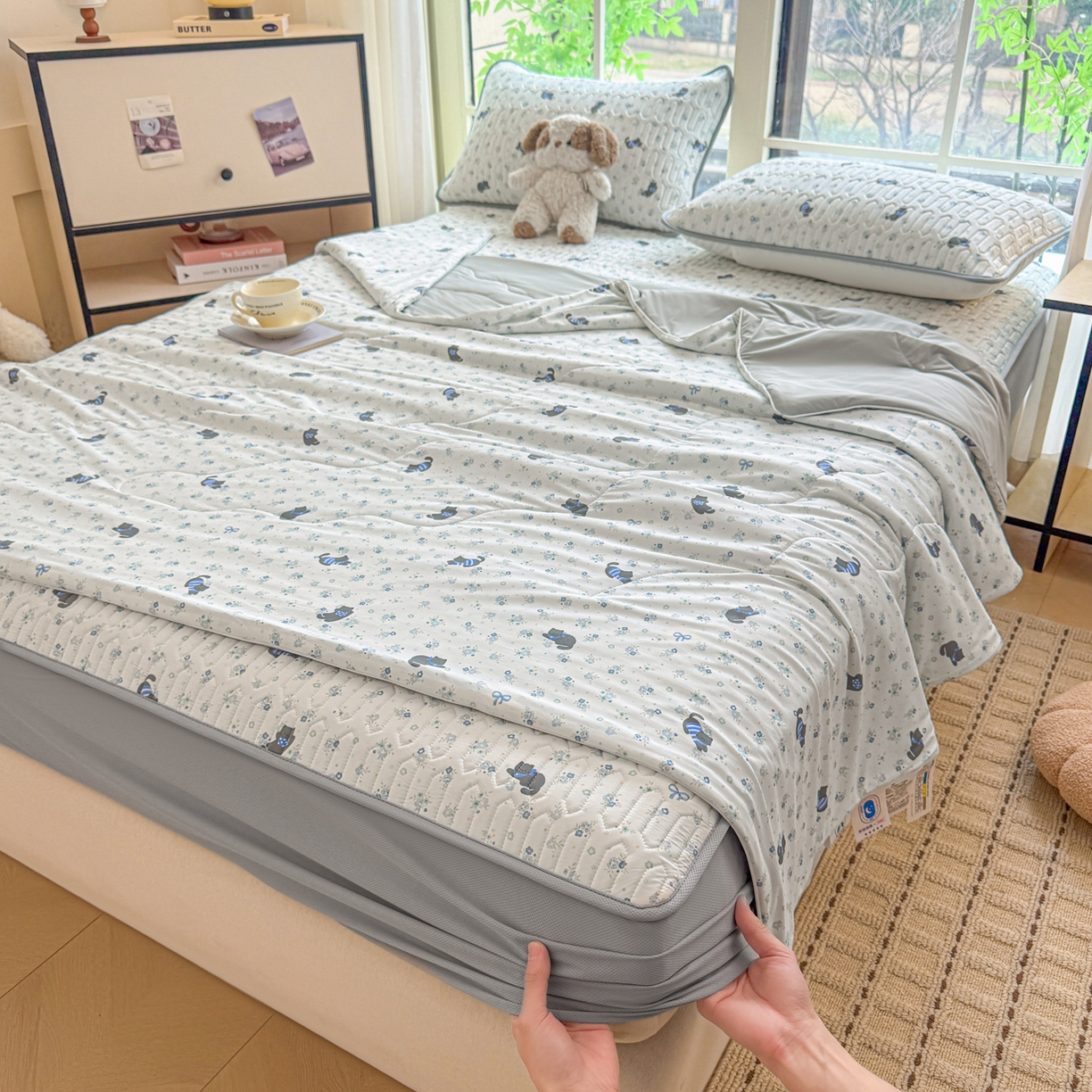 25新款A类凉感丝熊豆豆凉席床笠款
