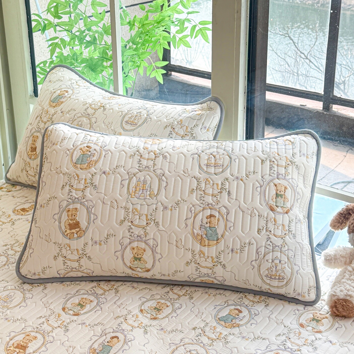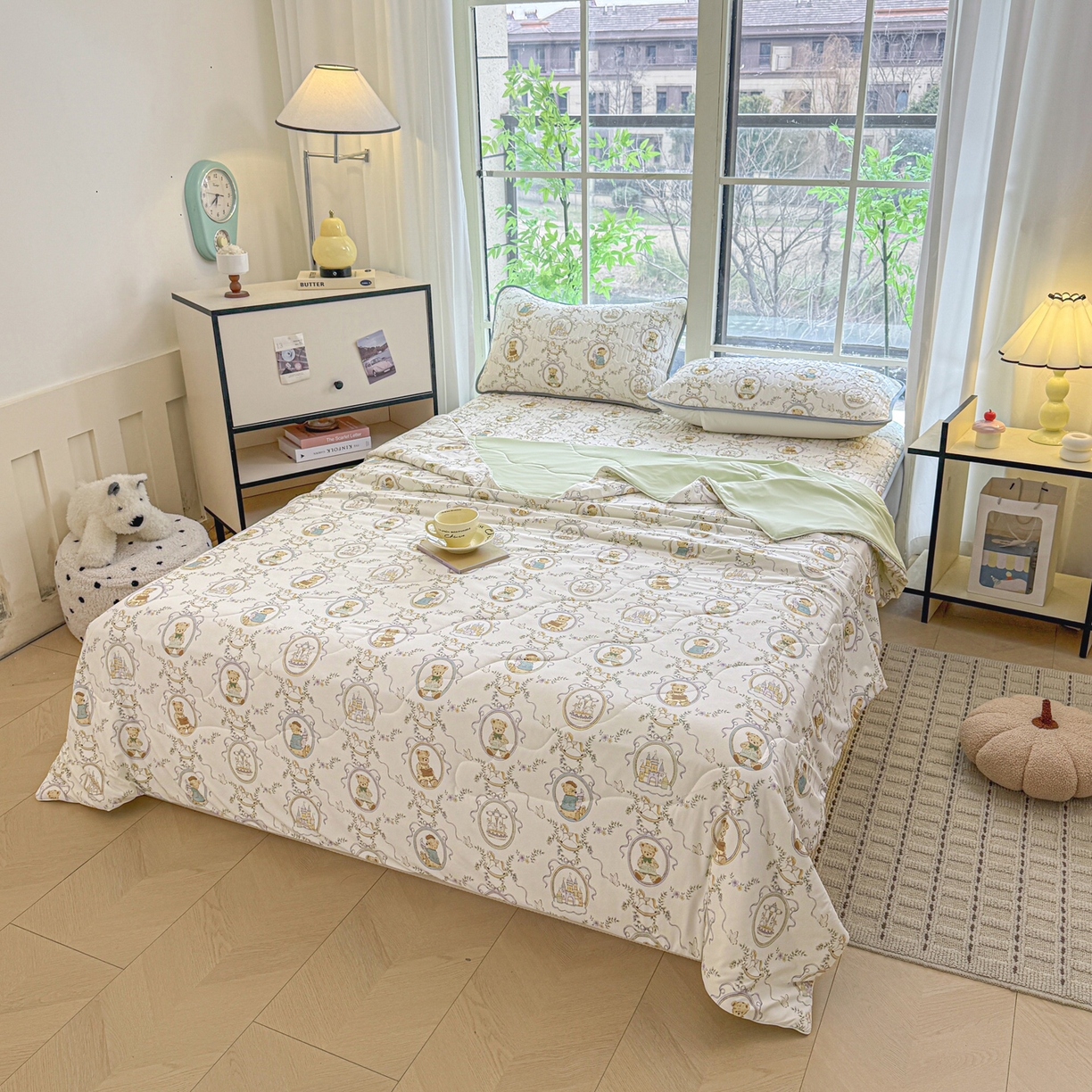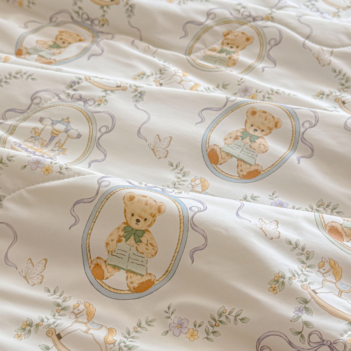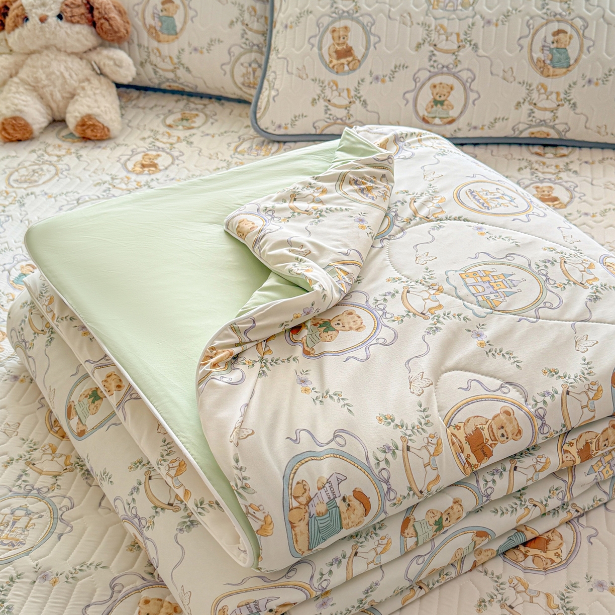 > 莱登卡奴 2026新款新款A类凉感丝锦氨数码印花夏被四件套 熊堡轻梦