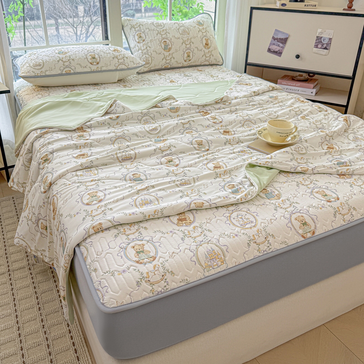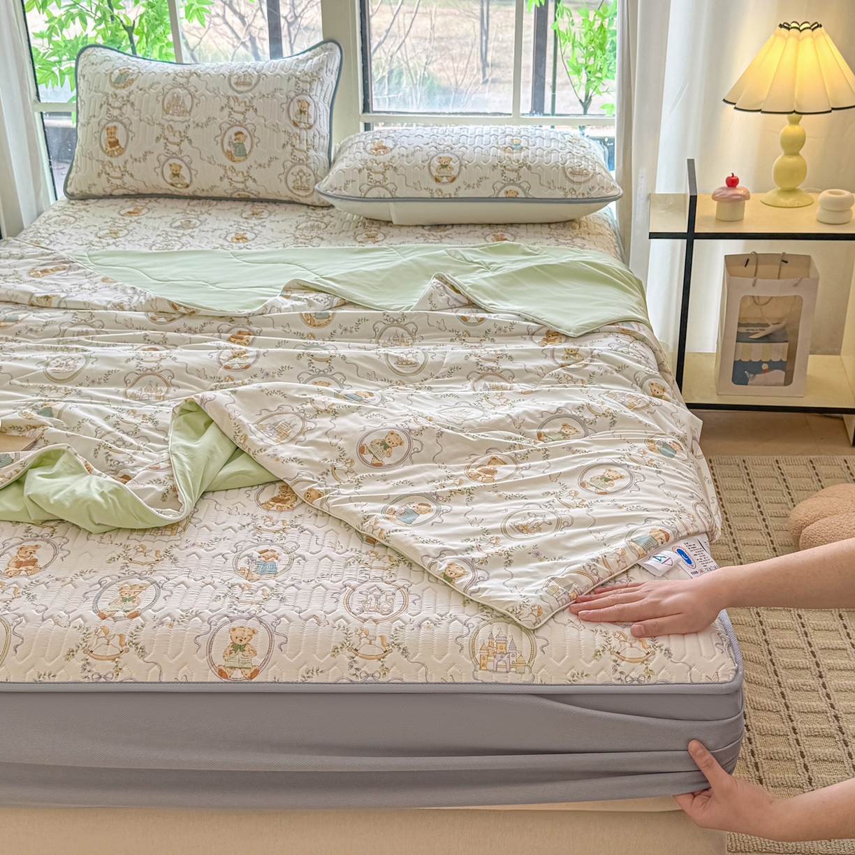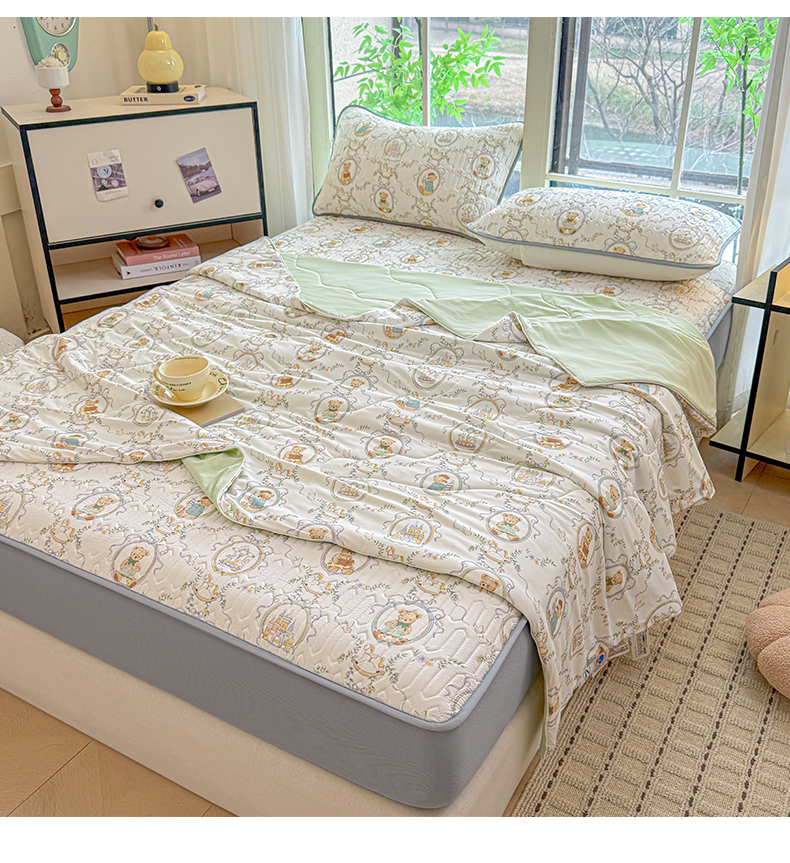 25新款A类凉感丝熊豆豆凉席床笠款