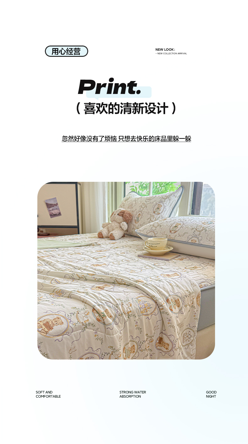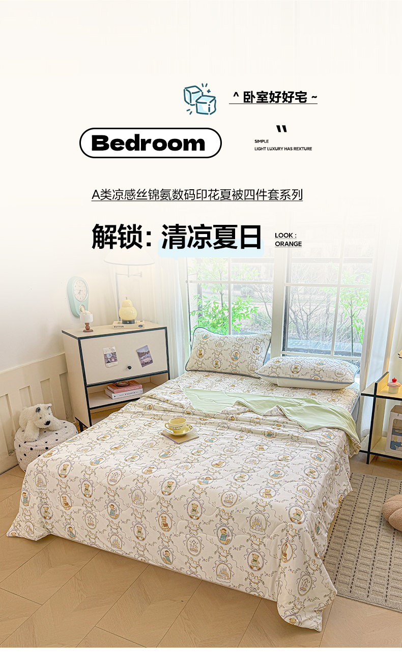 25新款A类凉感丝熊豆豆夏被四件套