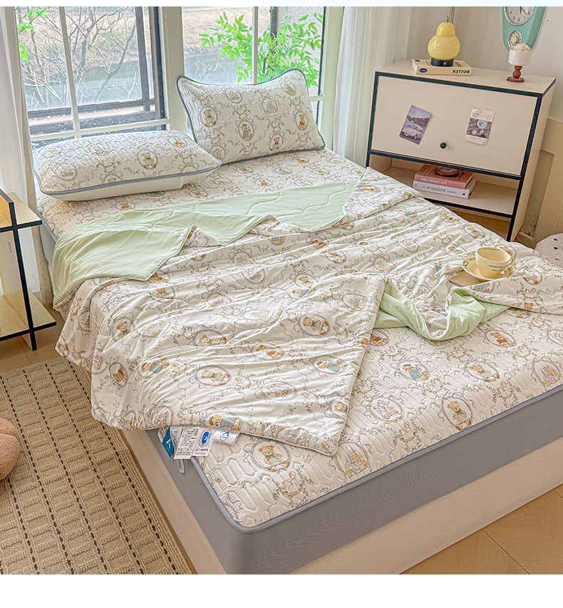 2025新款A类云母凉感丝豆豆被夏被凉席系列-夏被四件套