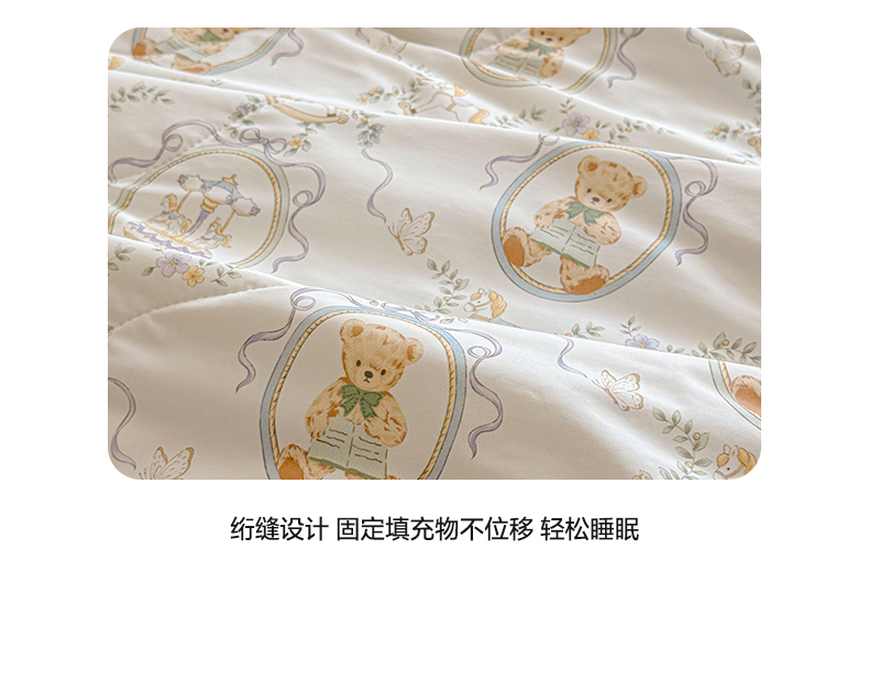 莱登卡奴 2026新款新款A类凉感丝锦氨数码印花夏被四件套 熊堡轻梦
