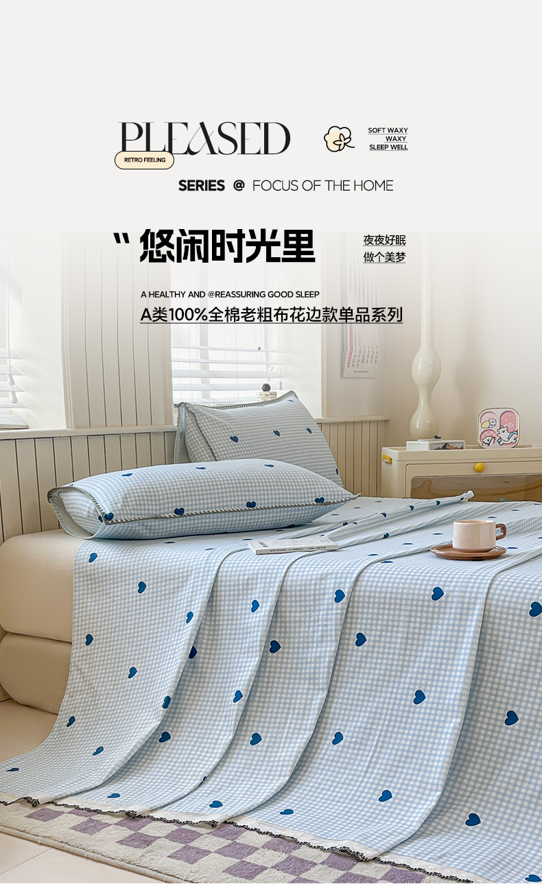2026新款A类100%全棉老粗布花边款单品系列床单