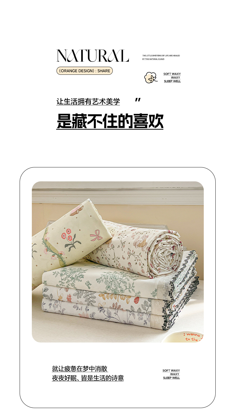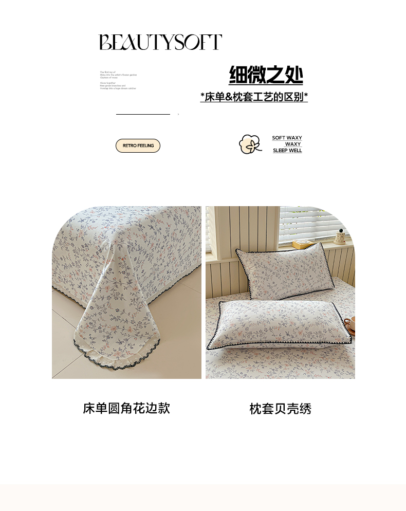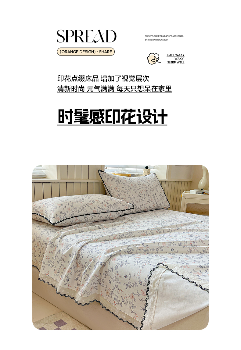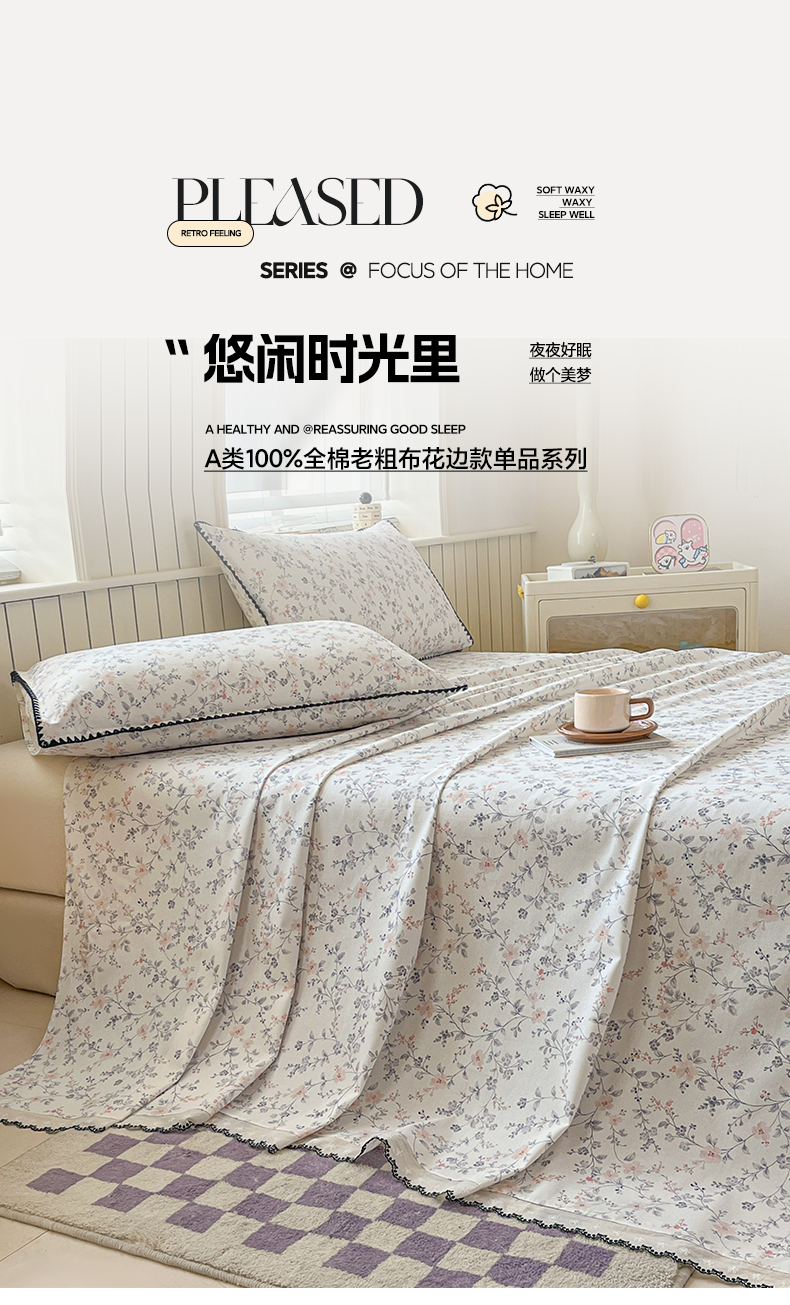 2026新款A类100%全棉老粗布花边款单品系列床单