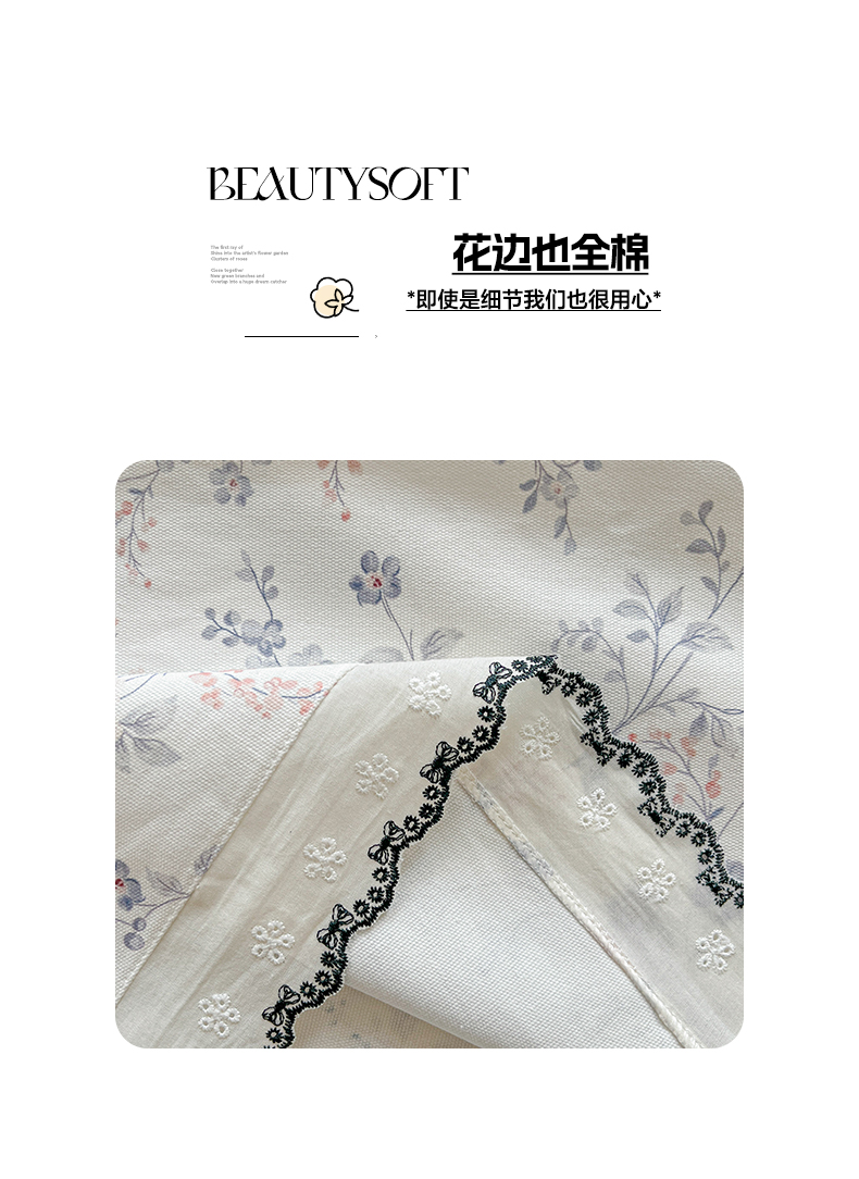 > 莱登卡奴 2026新款A类100%全棉老粗布花边款单品系列床单 花边-花枝