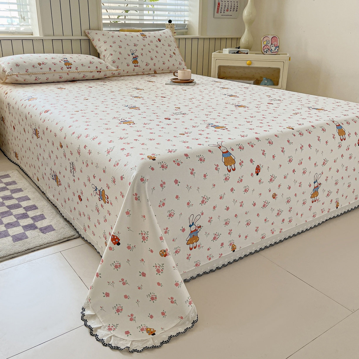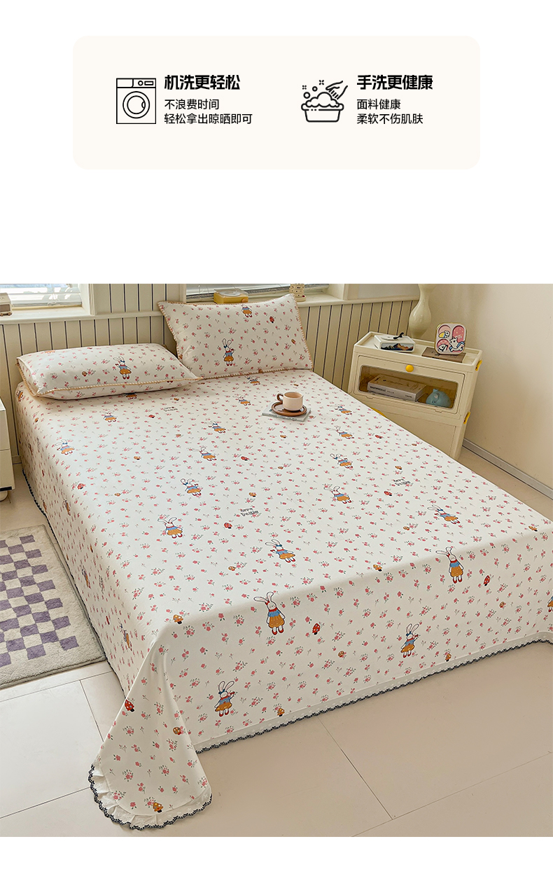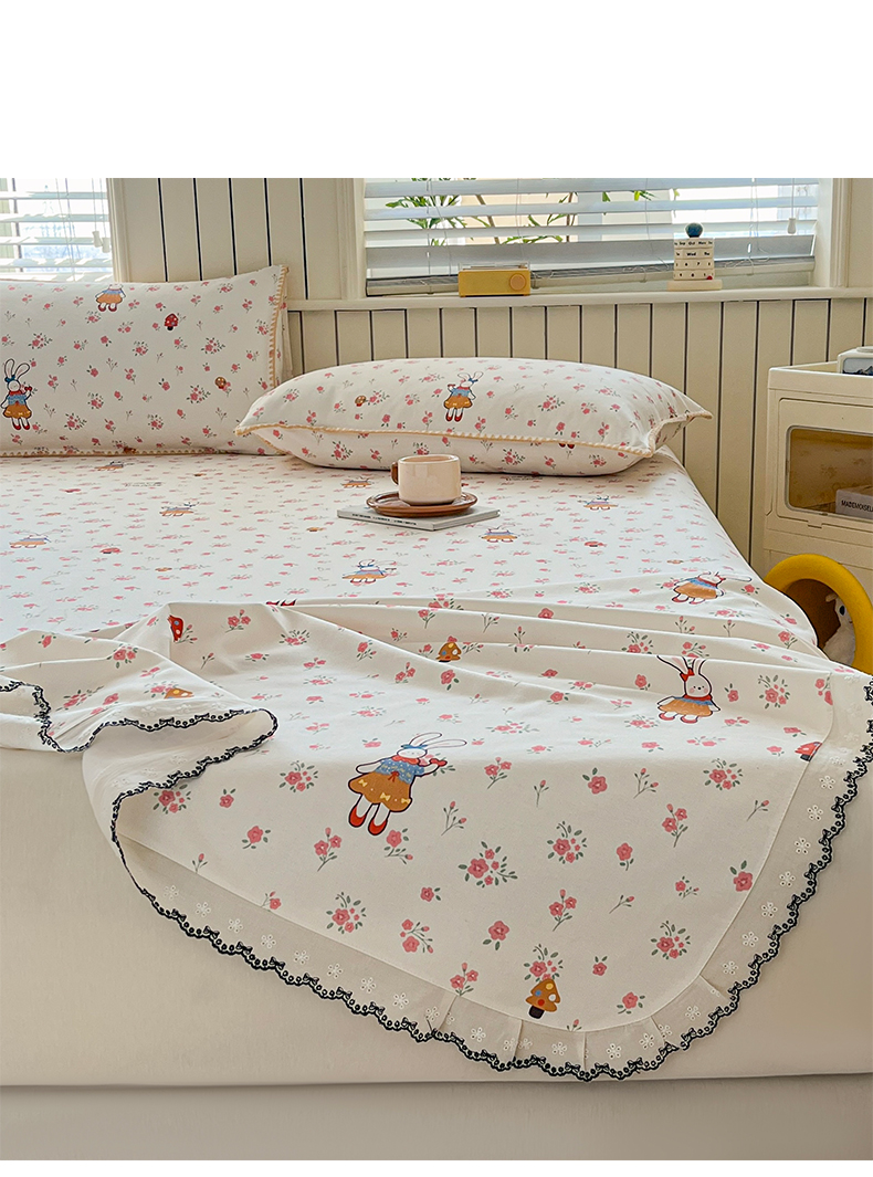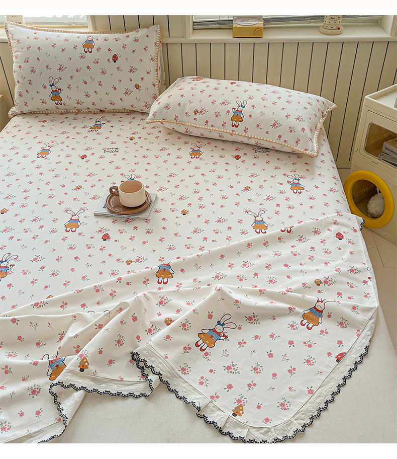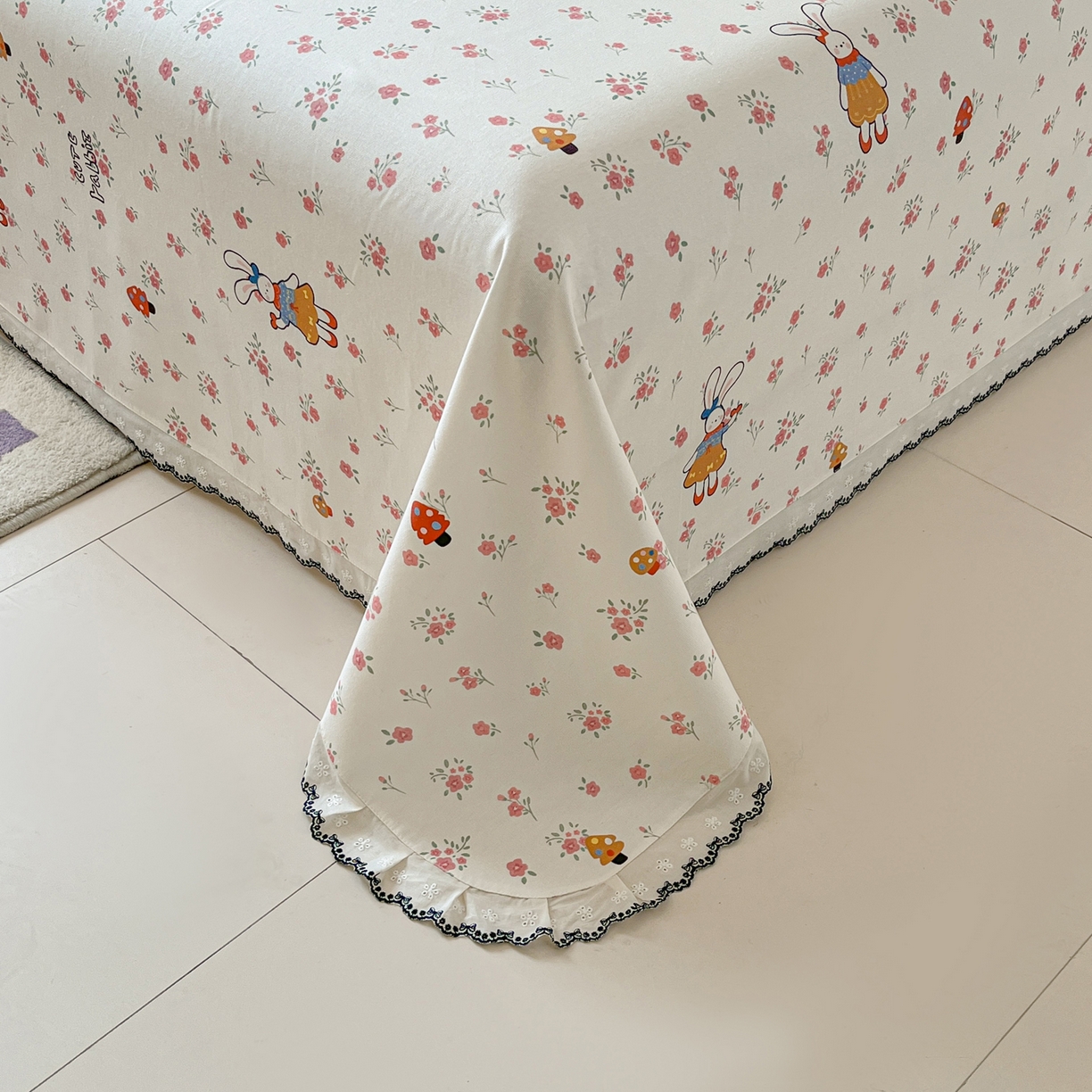 > 莱登卡奴 2026新款A类100%全棉老粗布花边款单品系列床单 花边-蘑菇兔