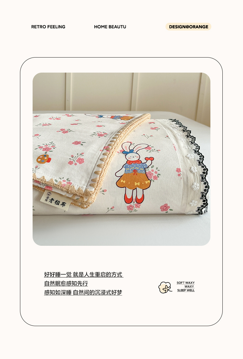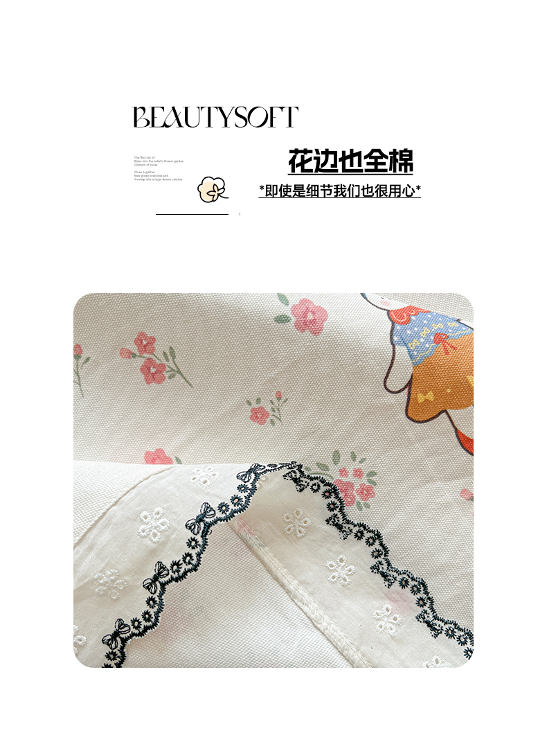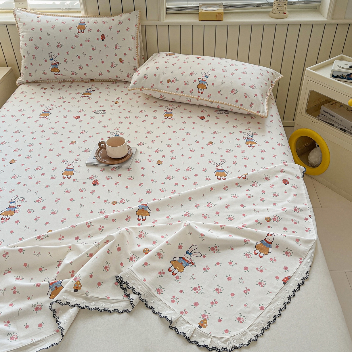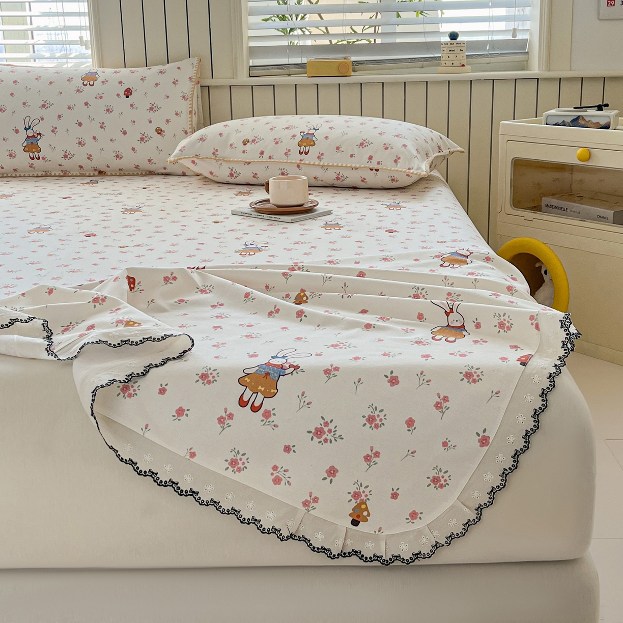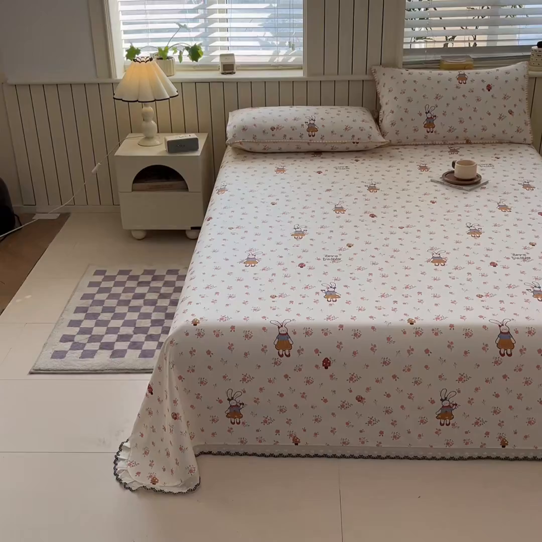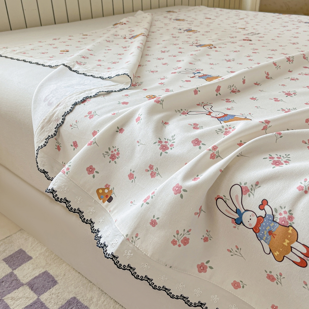 > 莱登卡奴 2026新款A类100%全棉老粗布花边款单品系列床单 花边-蘑菇兔