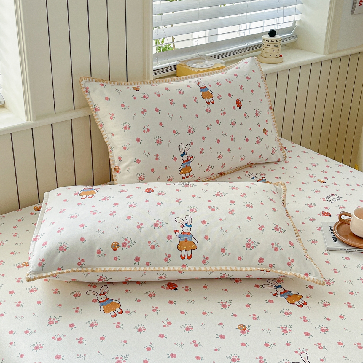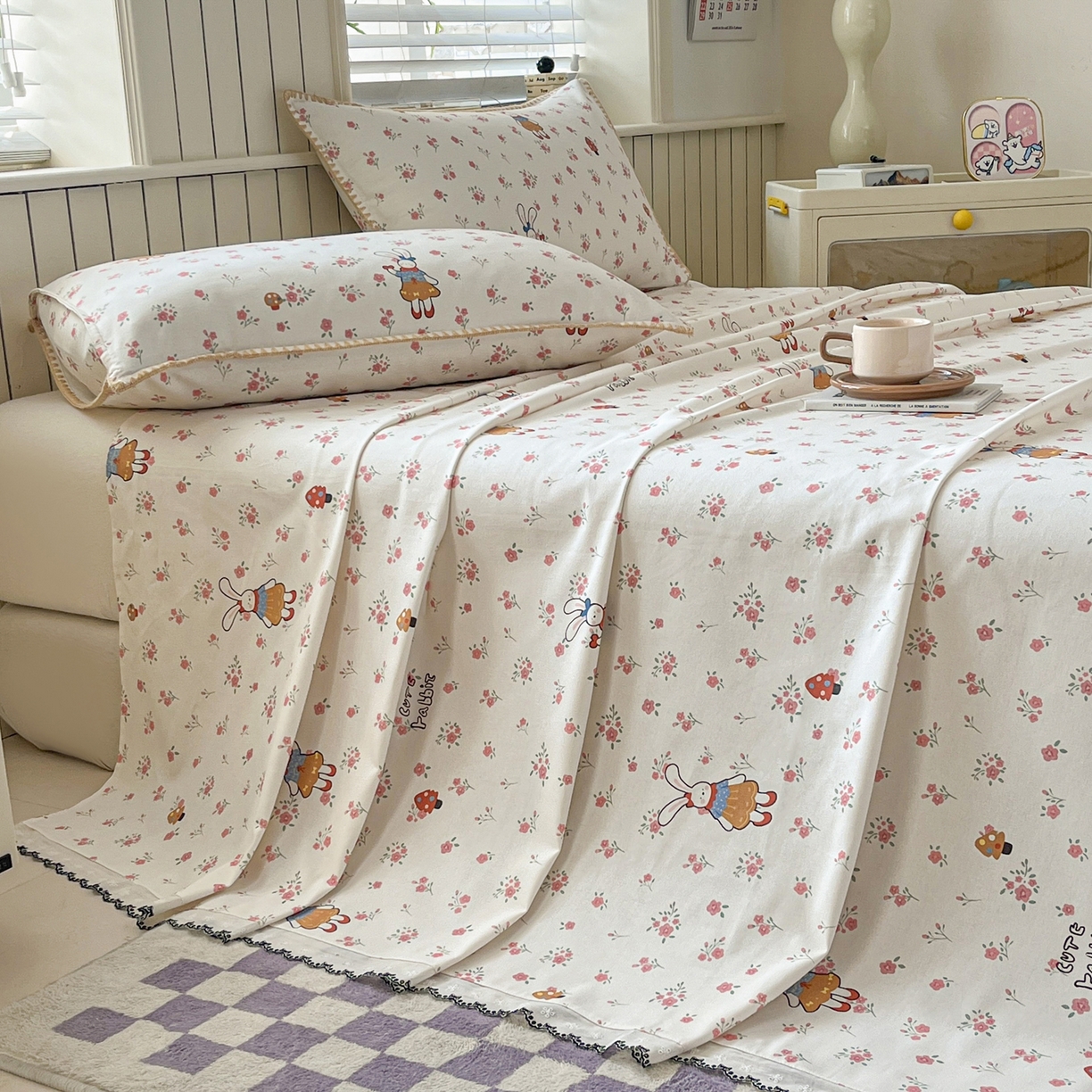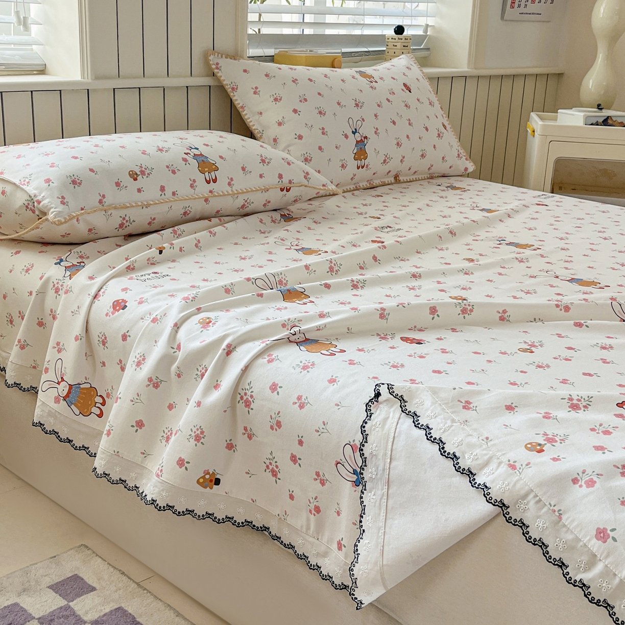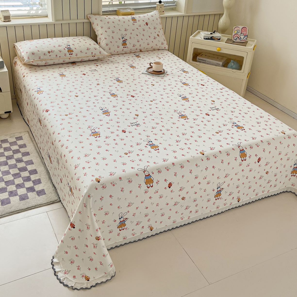 > 莱登卡奴 2026新款A类100%全棉老粗布花边款单品系列床单 花边-蘑菇兔