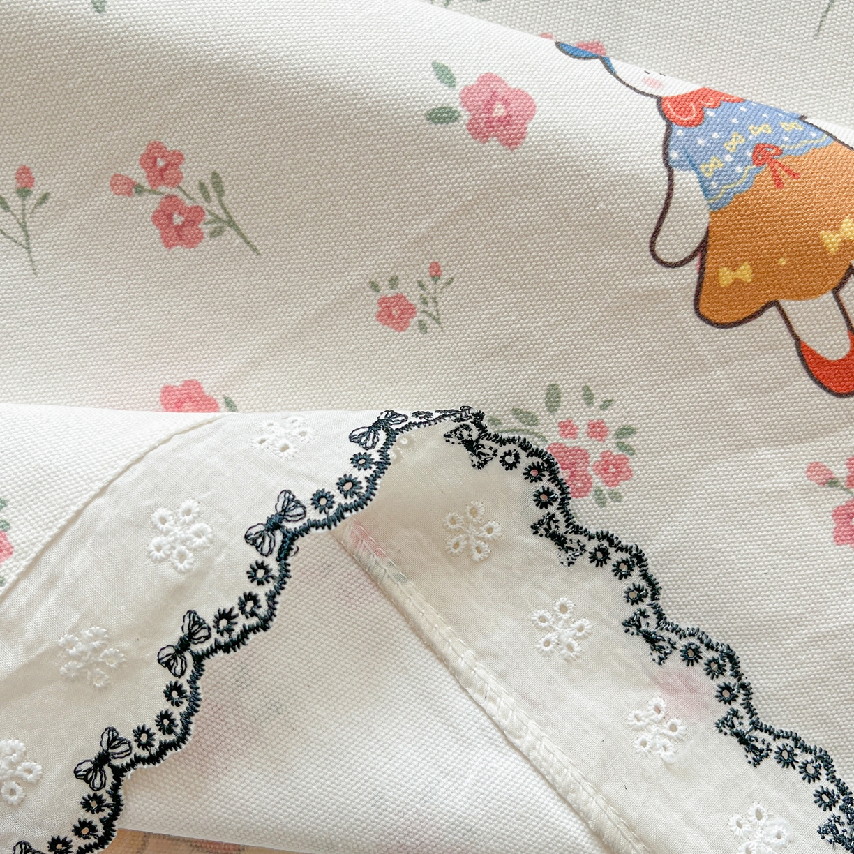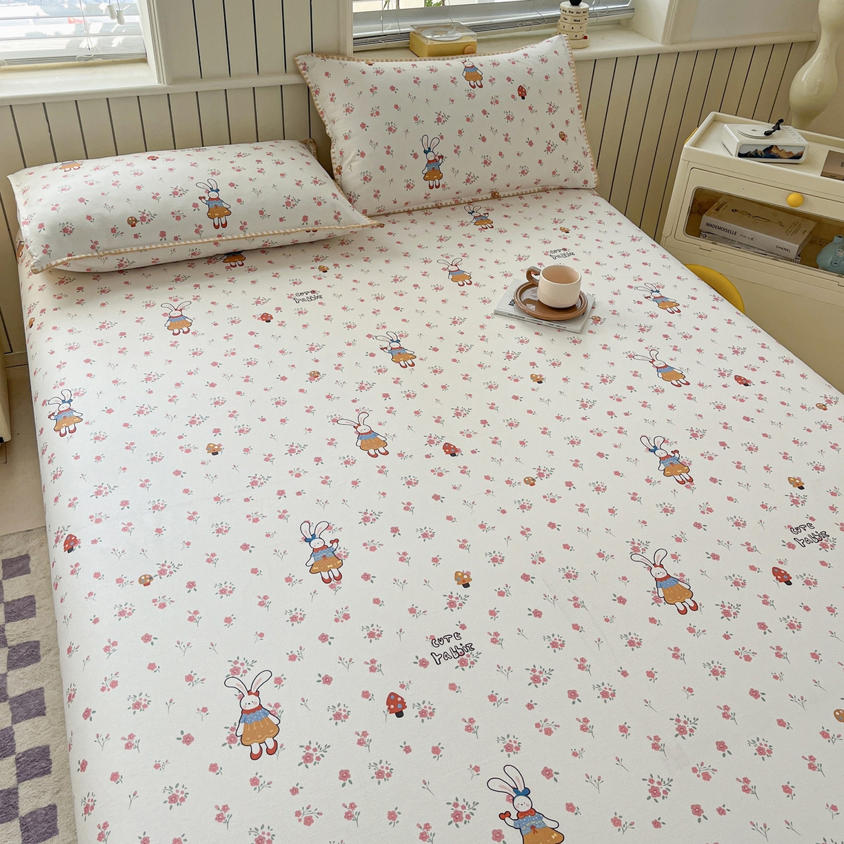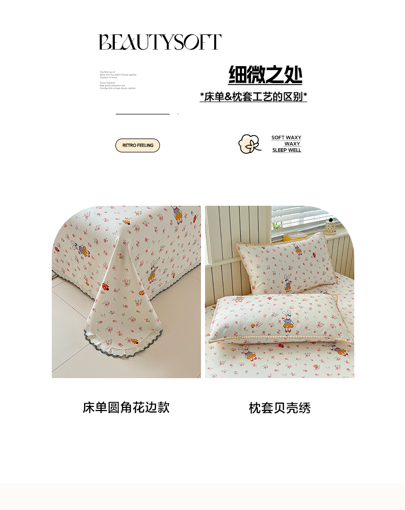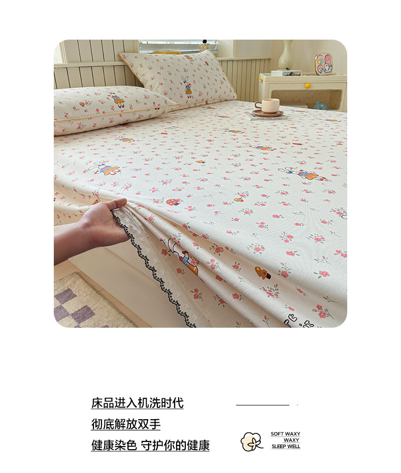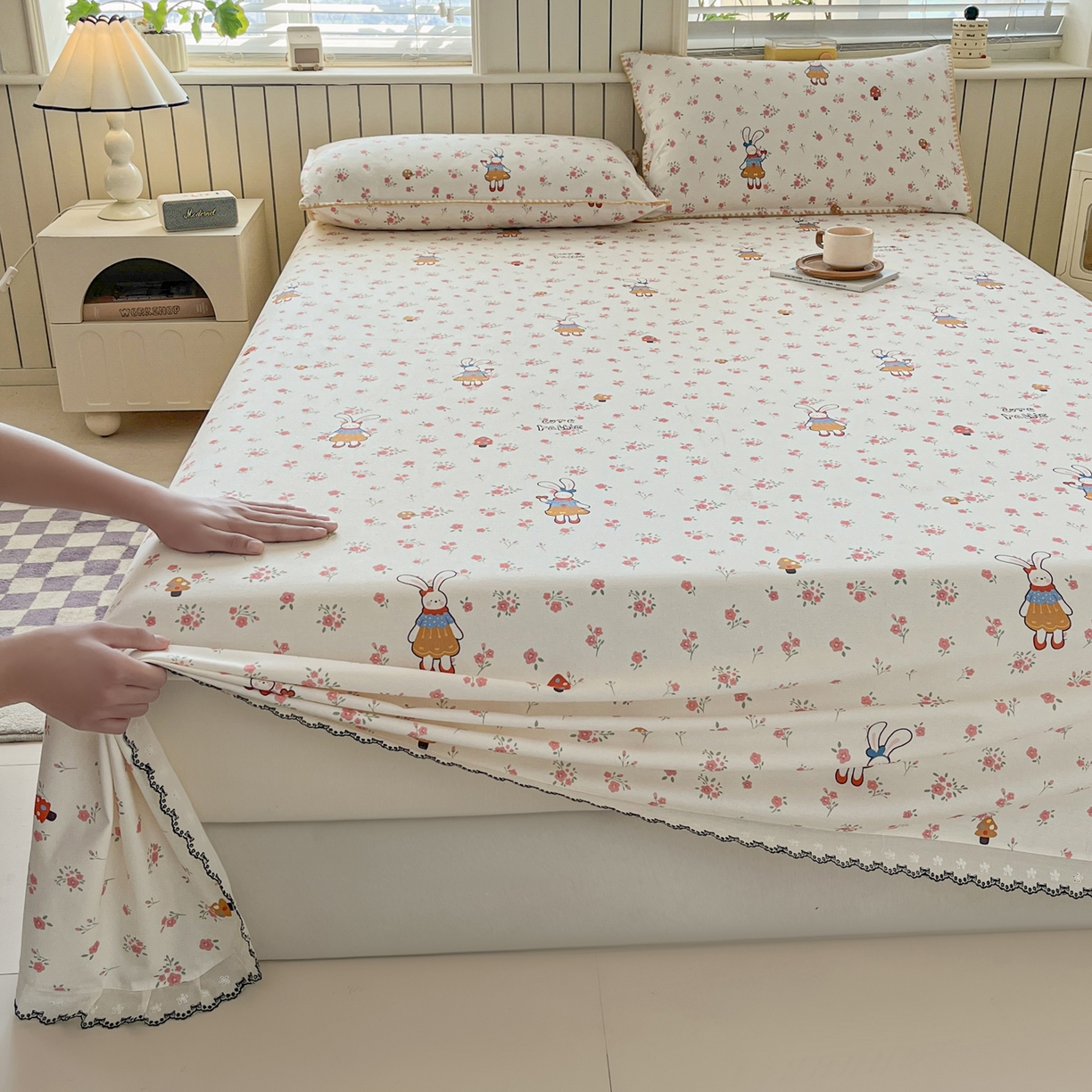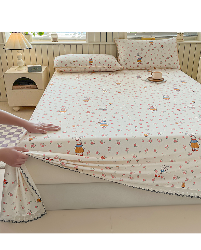 > 莱登卡奴 2026新款A类100%全棉老粗布花边款单品系列床单 花边-蘑菇兔