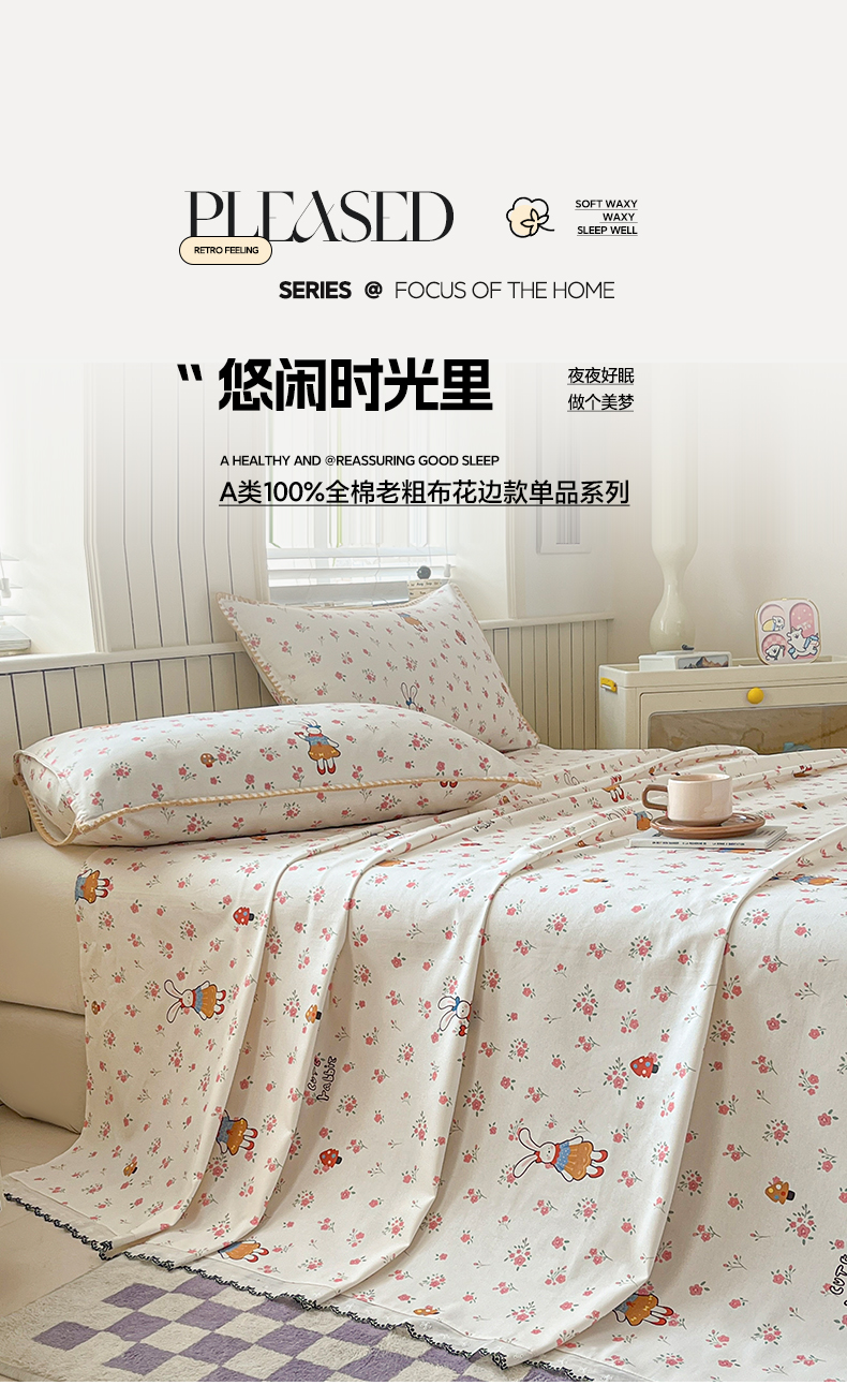 2026新款A类100%全棉老粗布花边款单品系列床单
