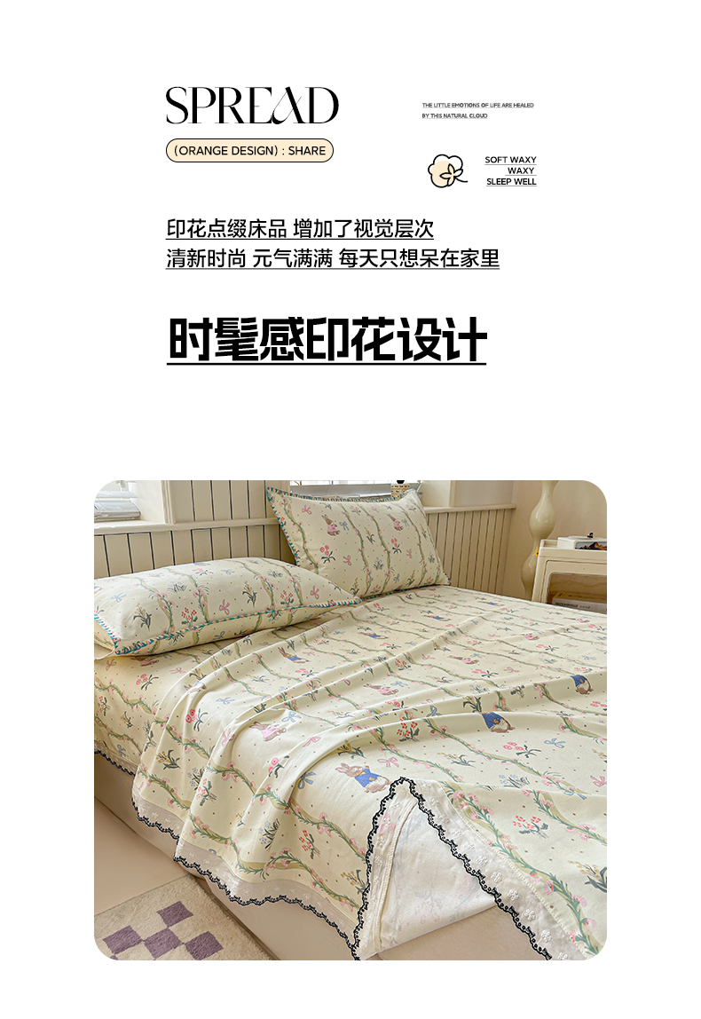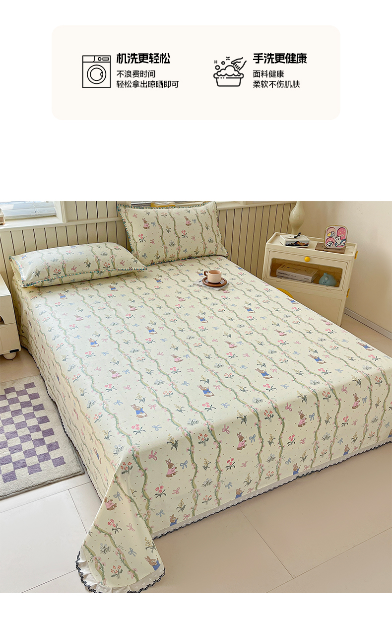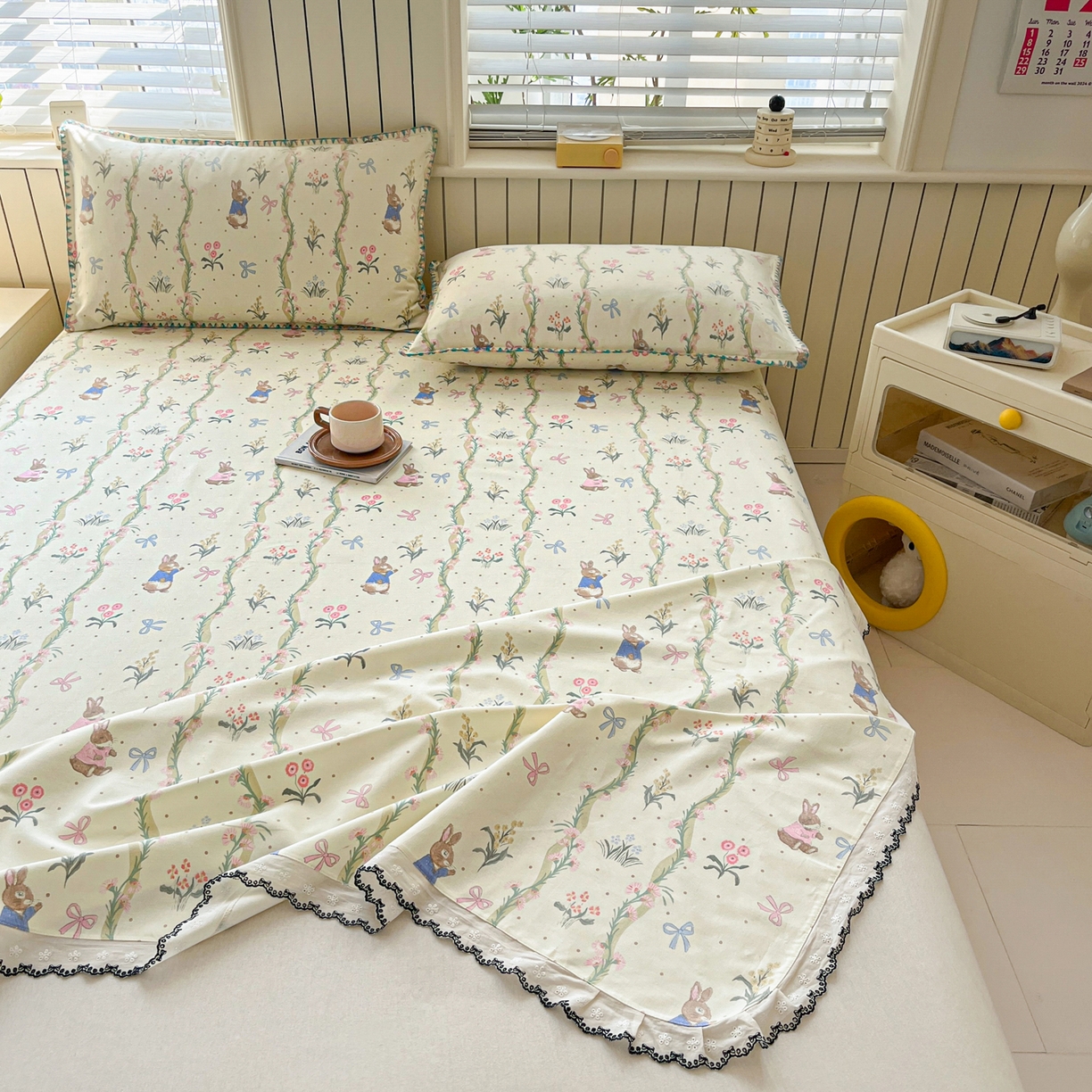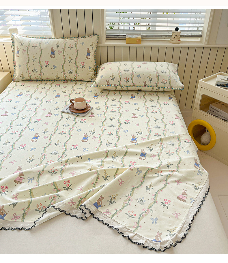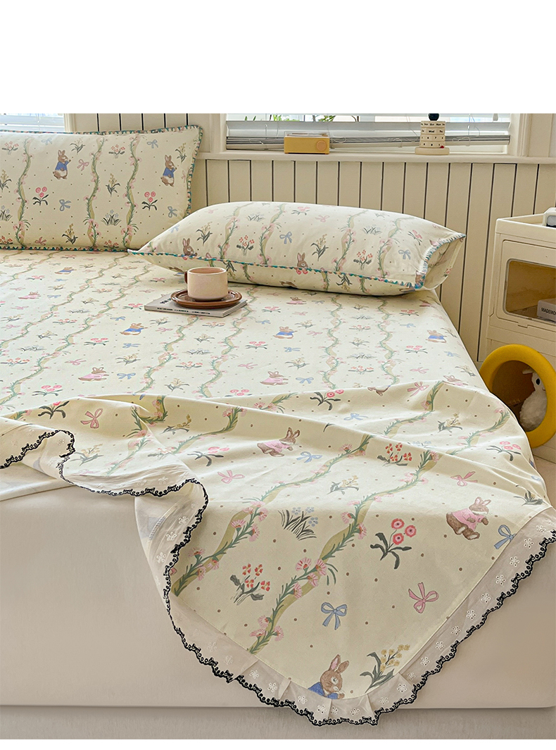 > 莱登卡奴 2026新款A类100%全棉老粗布花边款单品系列床单 花边-藤蔓兔