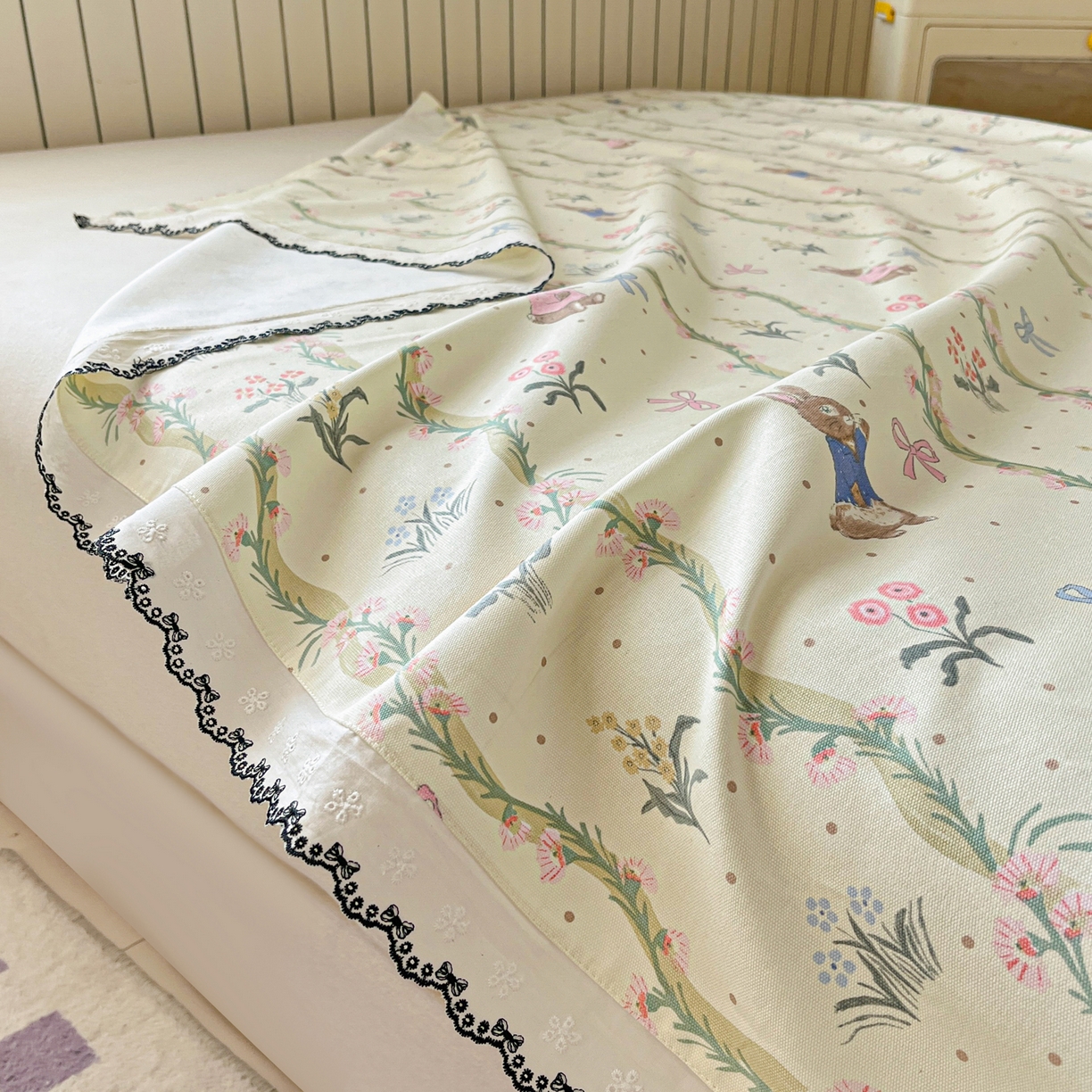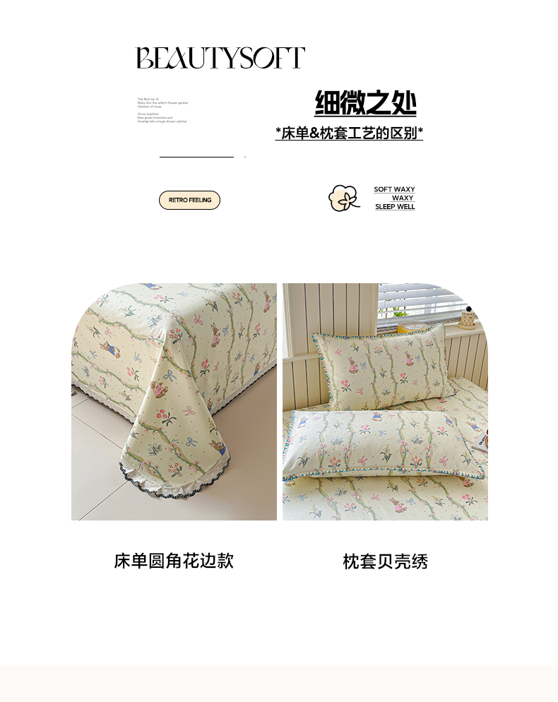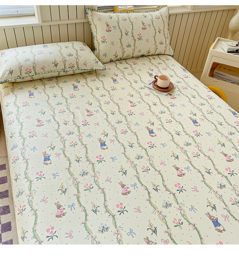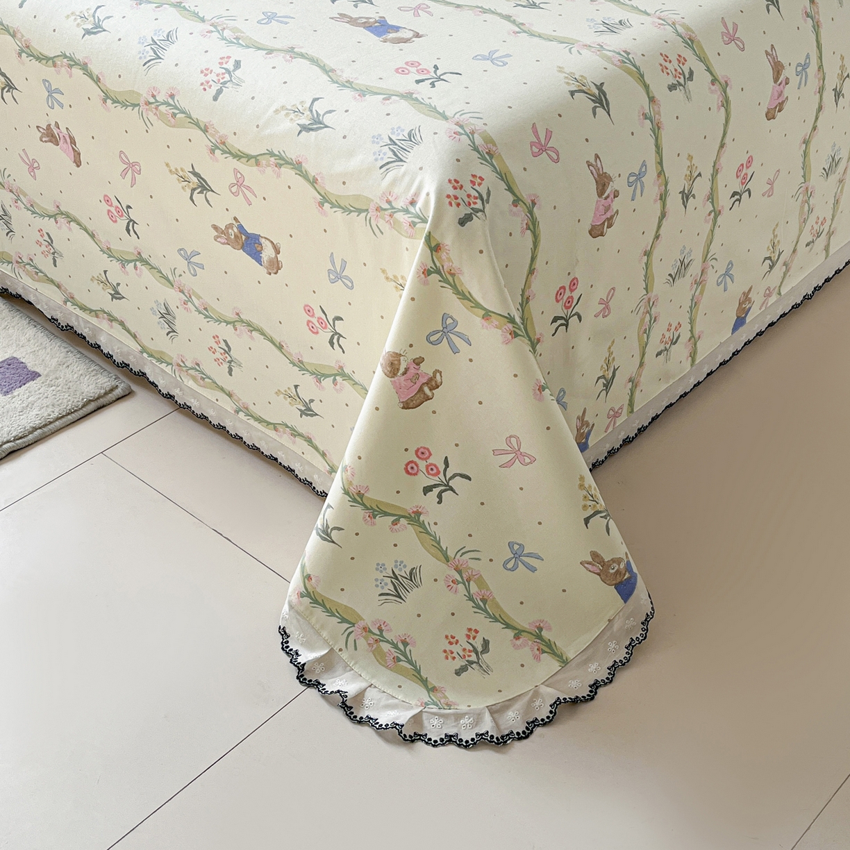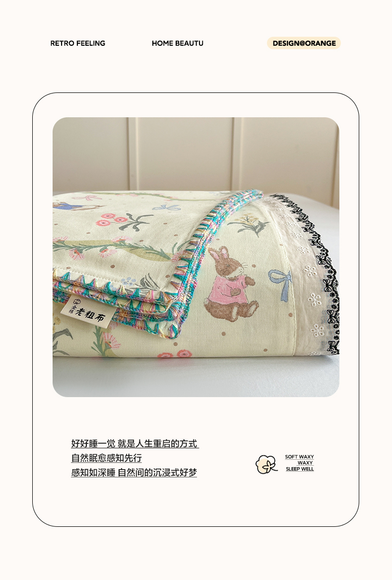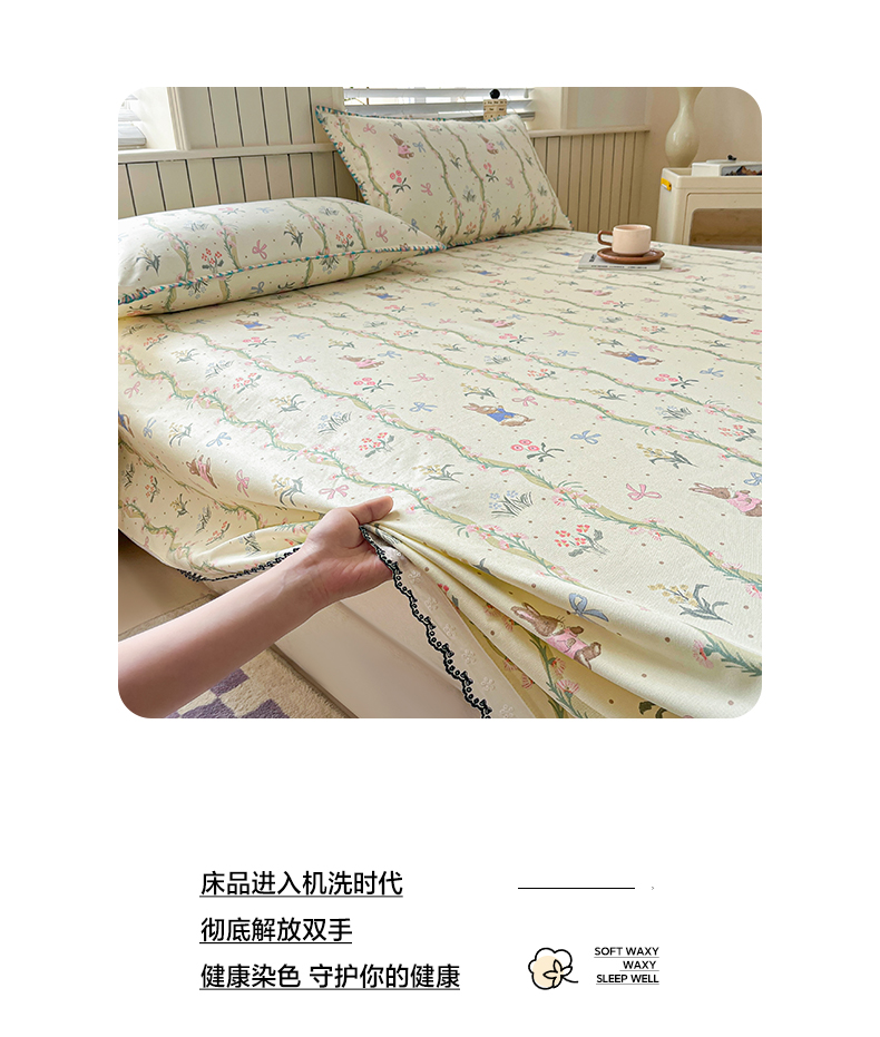 > 莱登卡奴 2026新款A类100%全棉老粗布花边款单品系列床单 花边-藤蔓兔