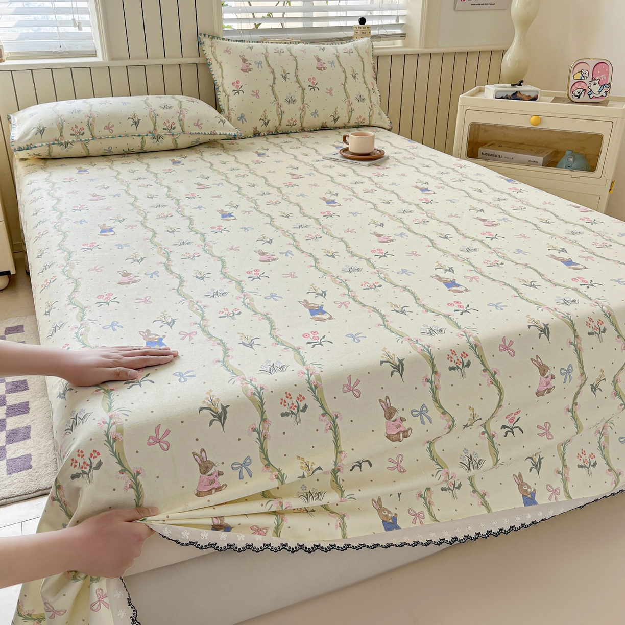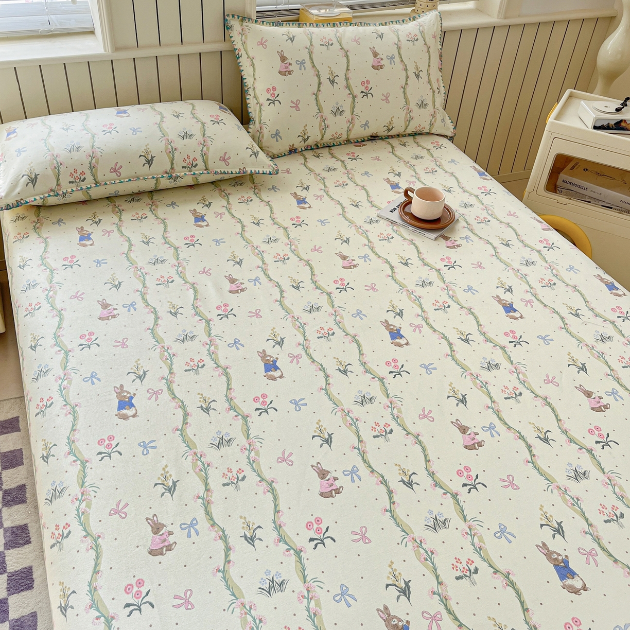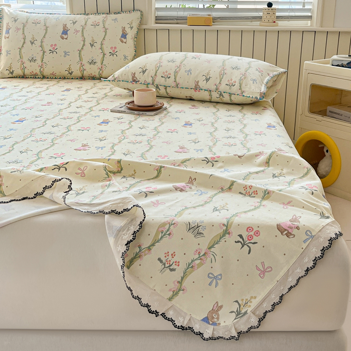 莱登卡奴 2026新款A类100%全棉老粗布花边款单品系列床单 花边-藤蔓兔