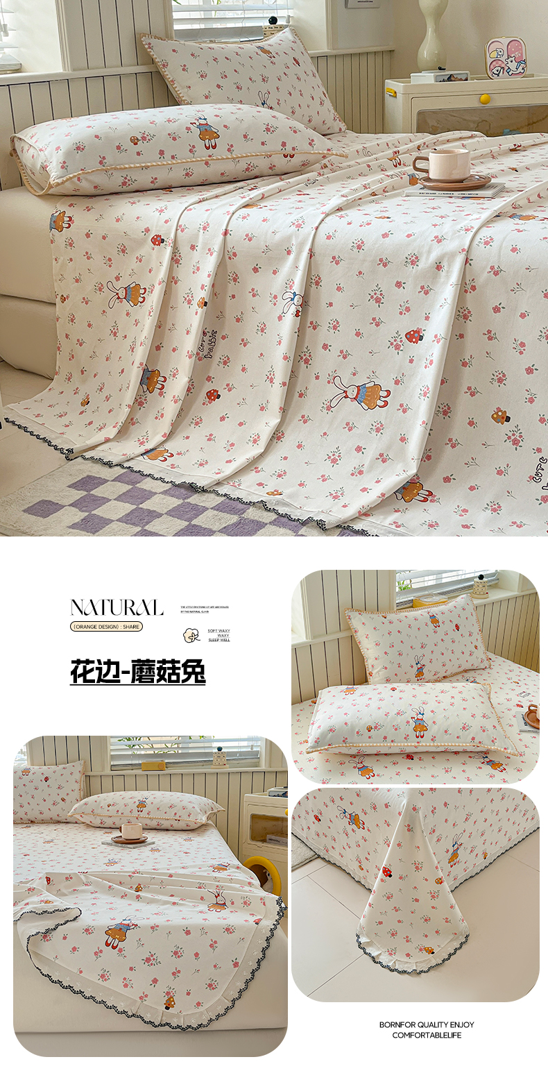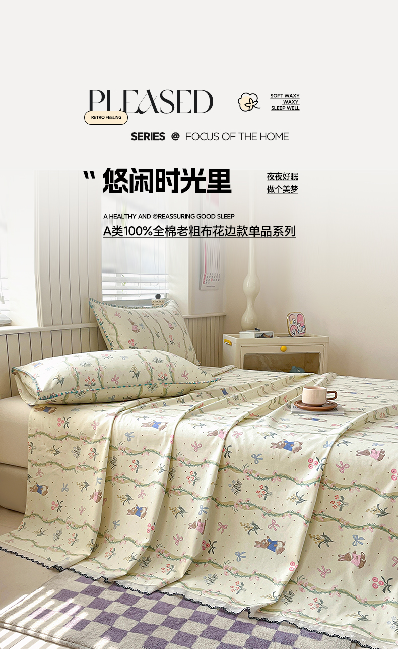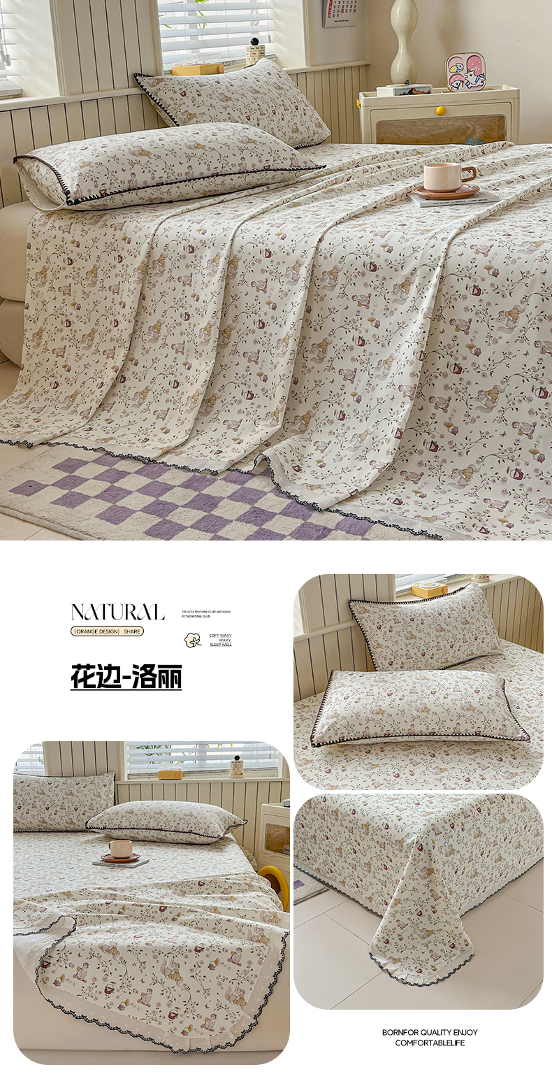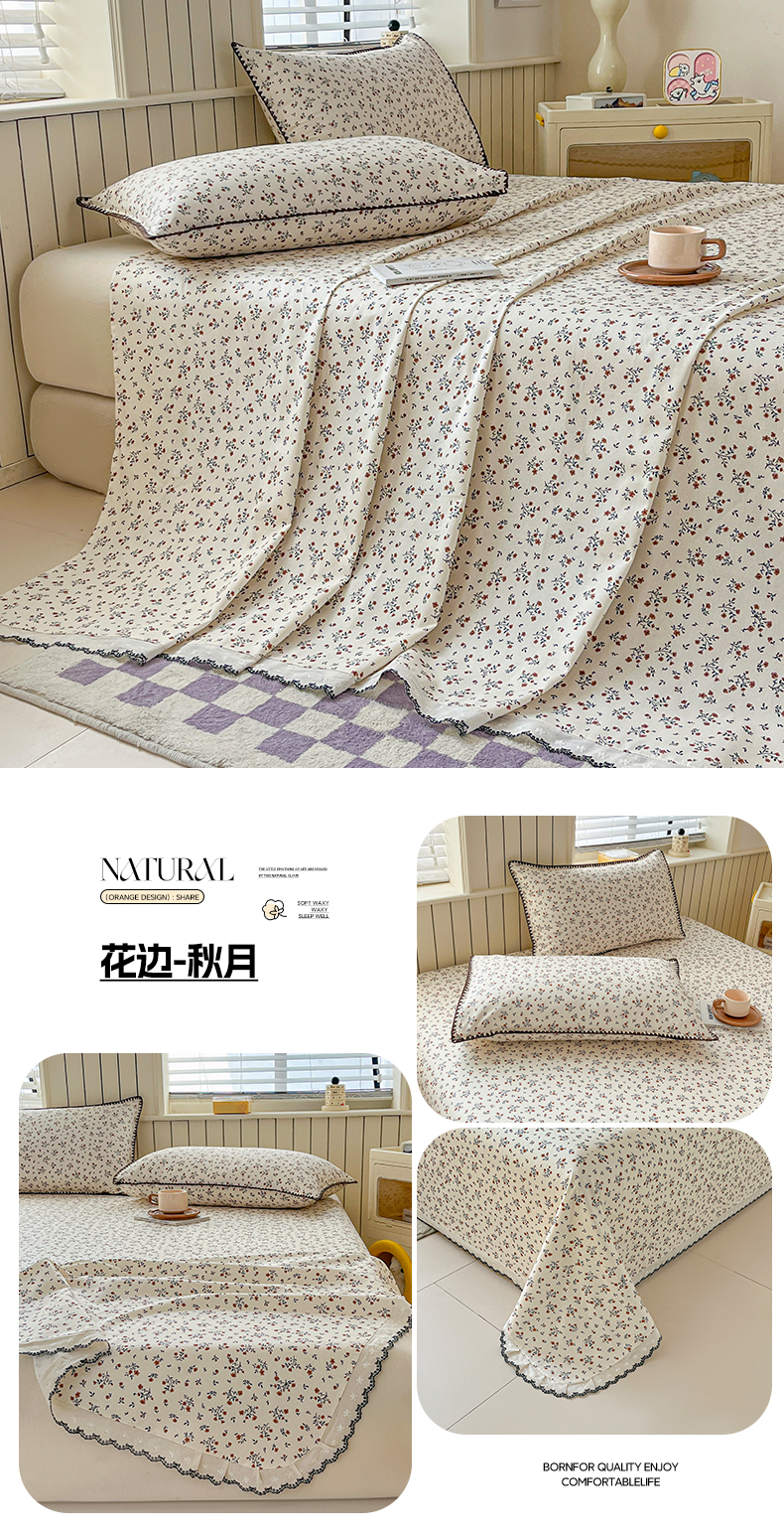 2026新款A类100%全棉老粗布花边款单品系列床单