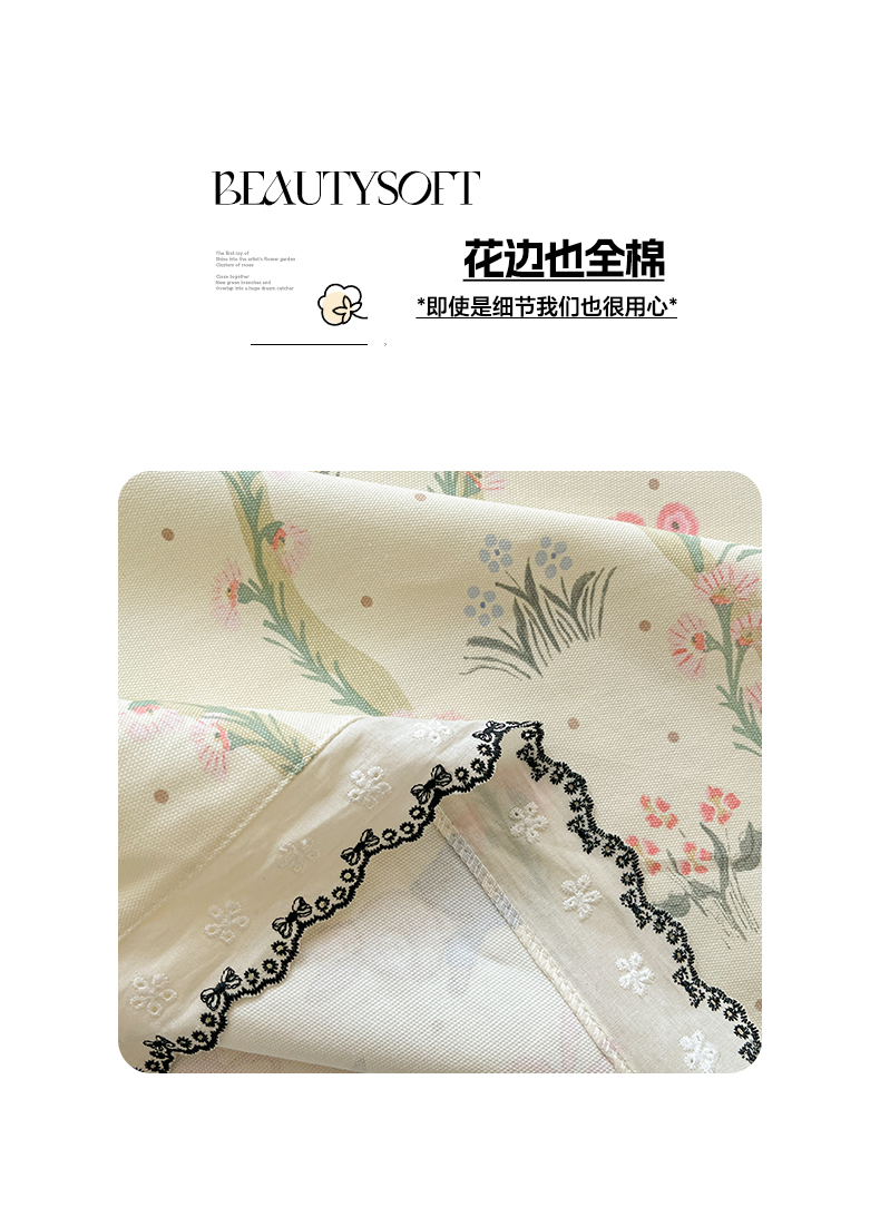 2026新款全棉A类小清新花边床盖款系列四件套