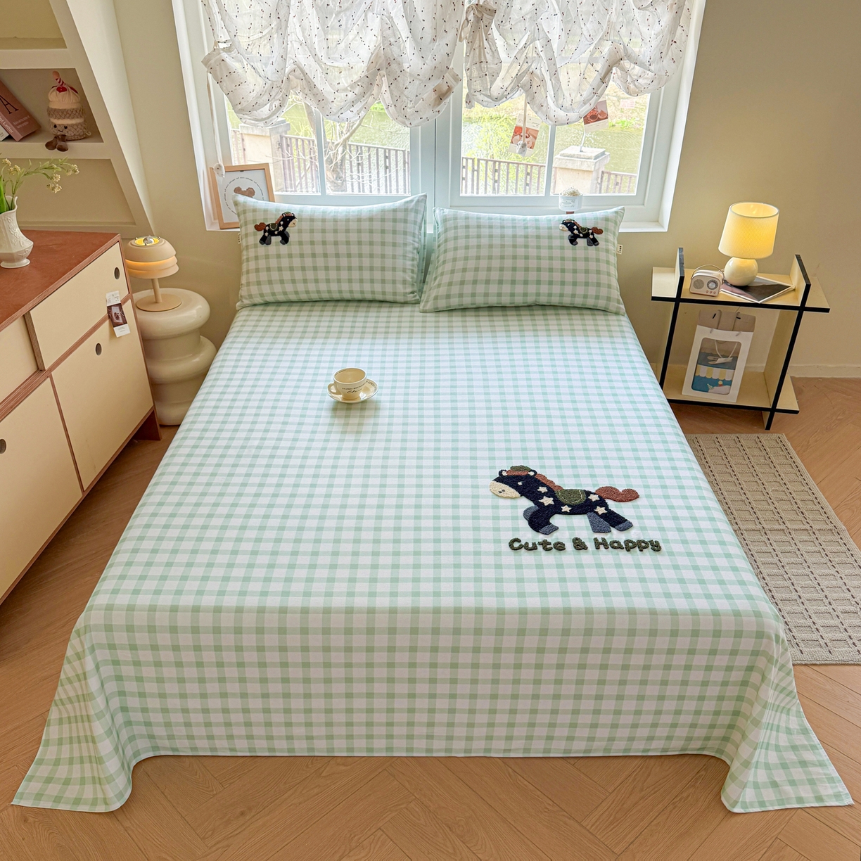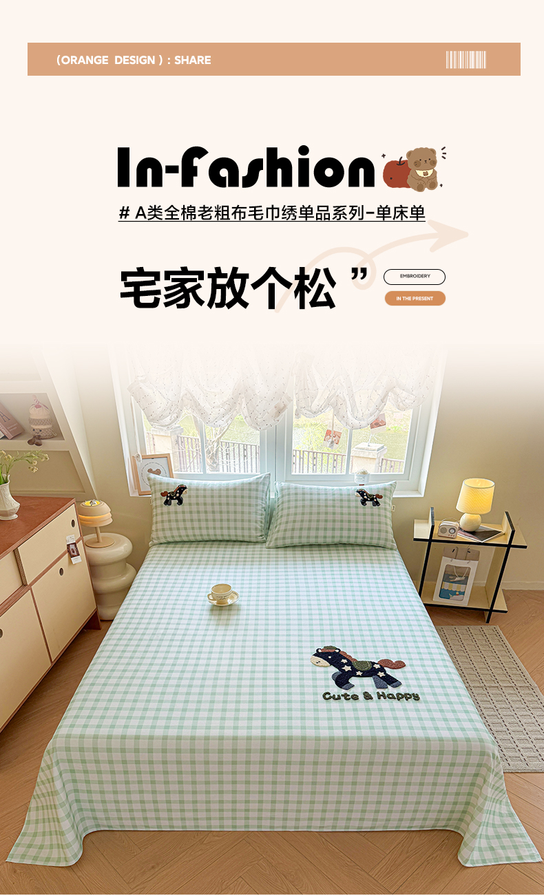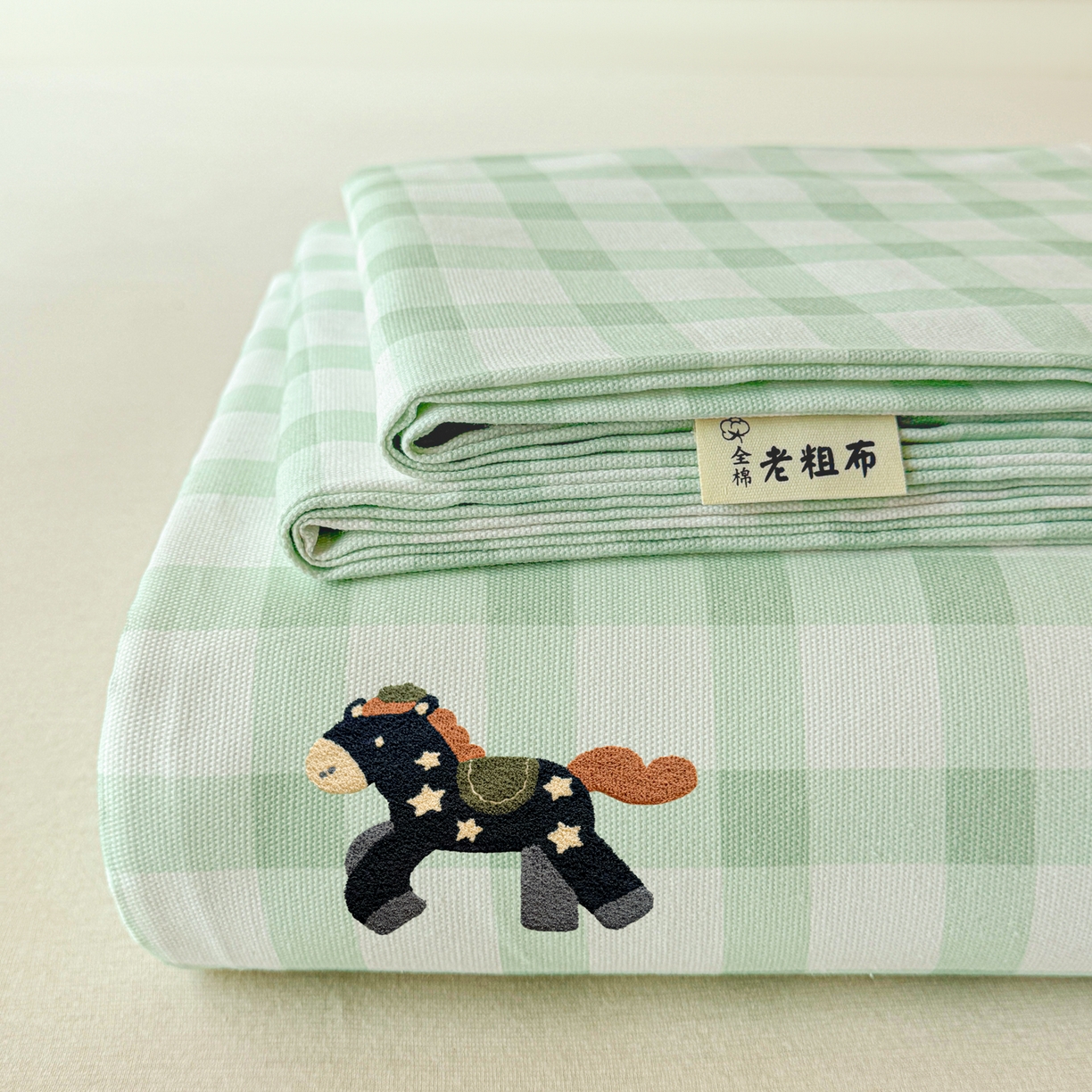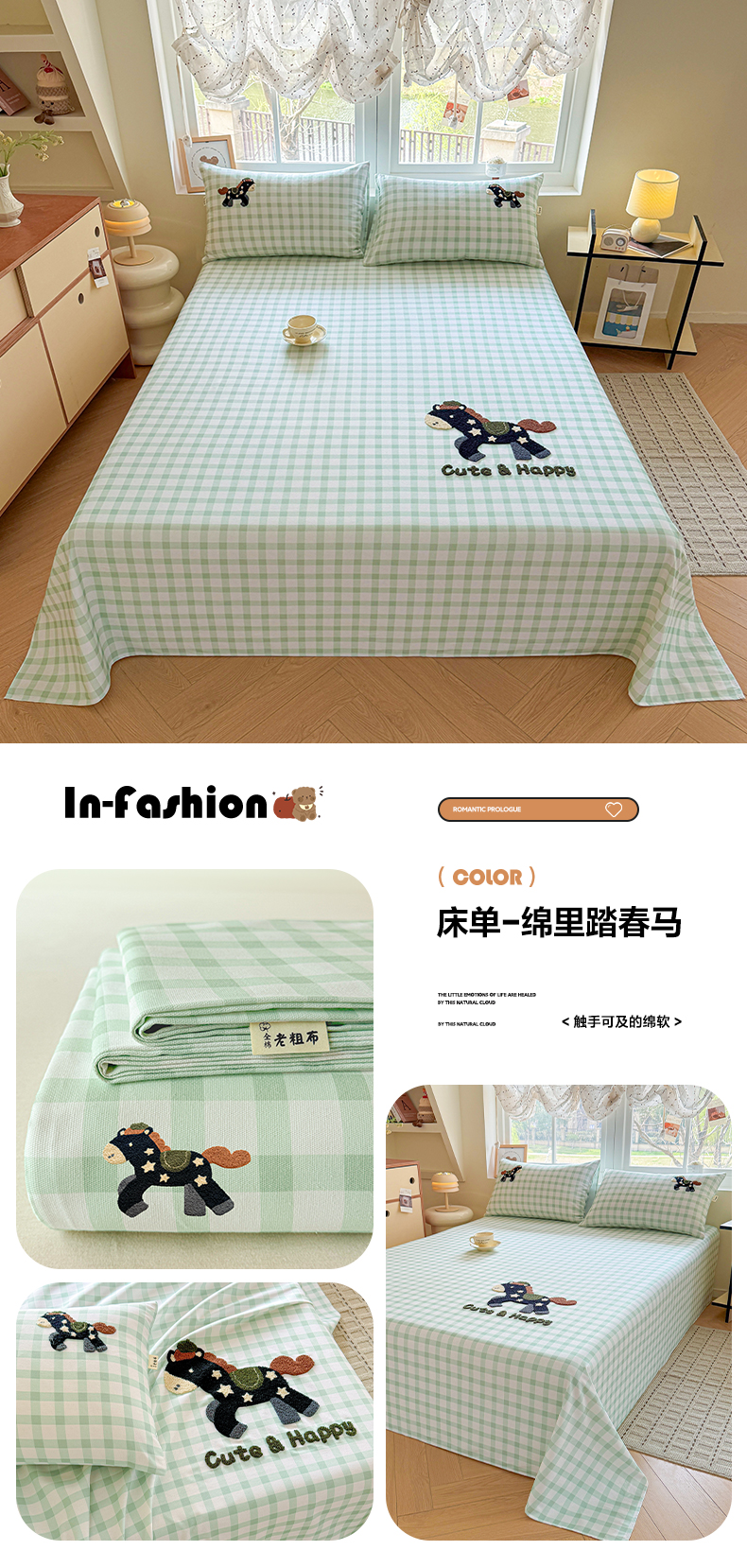 > 莱登卡奴 2026新款A类100%全棉老粗布席子凉席毛巾绣单床单床单单件 床单-绵里踏春马