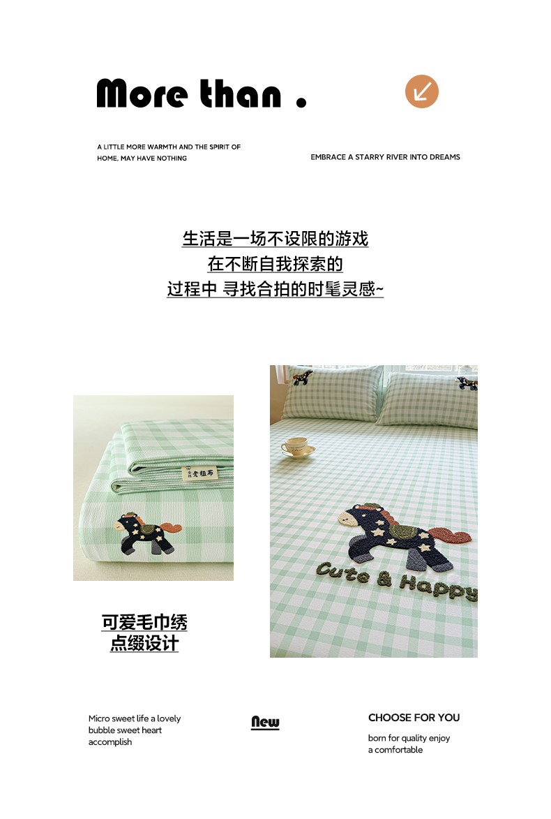 2026春夏新款全棉A类水洗华夫格毛巾绣大豆夏被夏凉被空调被四件套系列