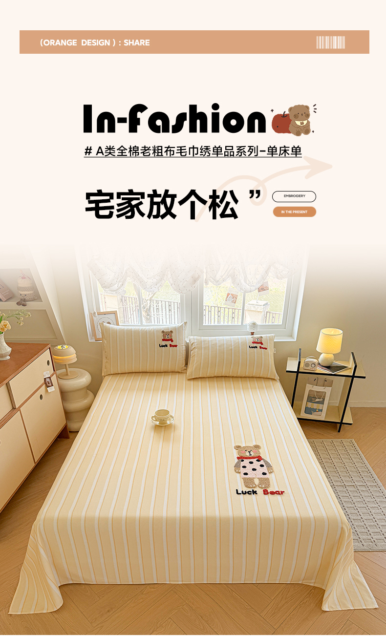 莱登卡奴 2026新款A类100%全棉老粗布席子凉席毛巾绣单床单床单单件 组合图(仅供展示不可下单)