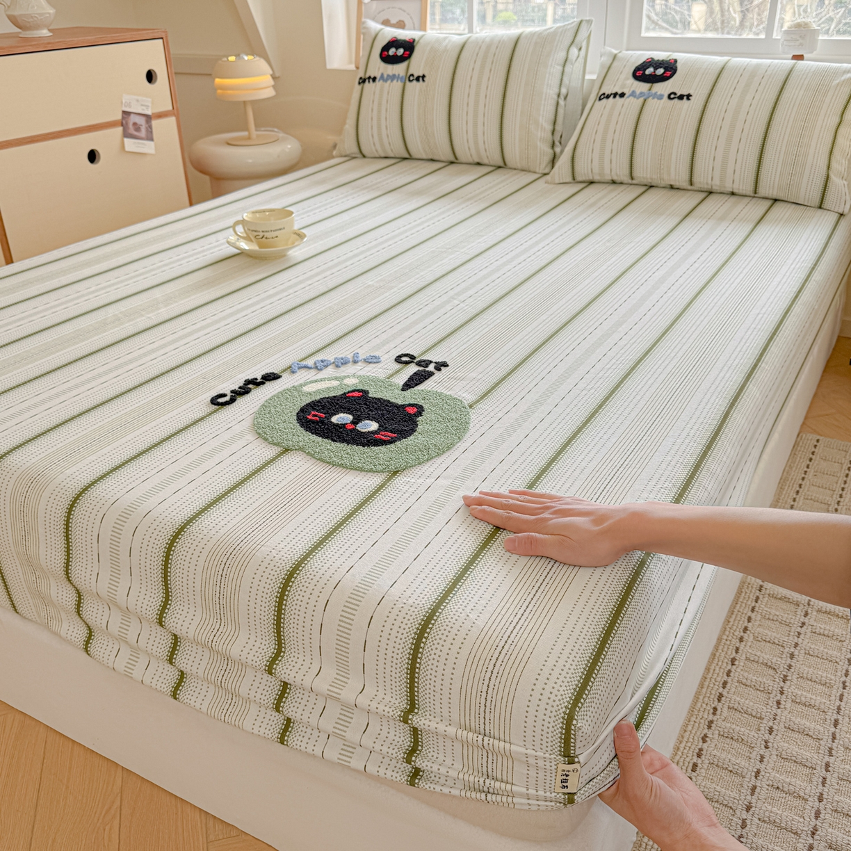 2026新款A类100%全棉老粗布席子凉席毛巾绣单床笠床笠单件
