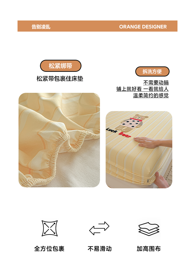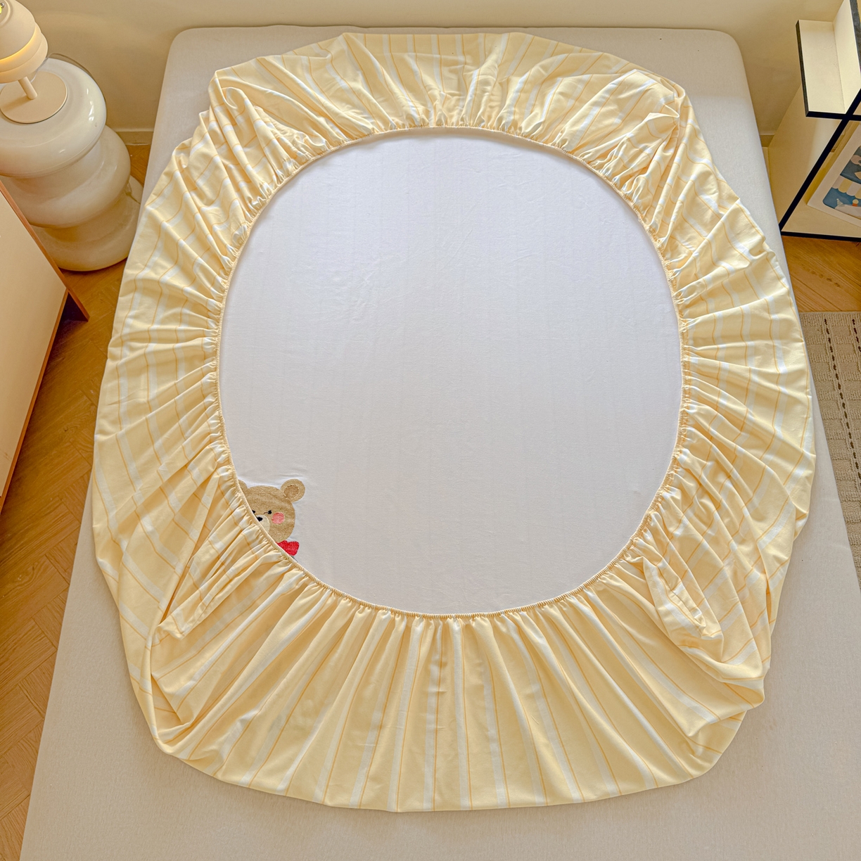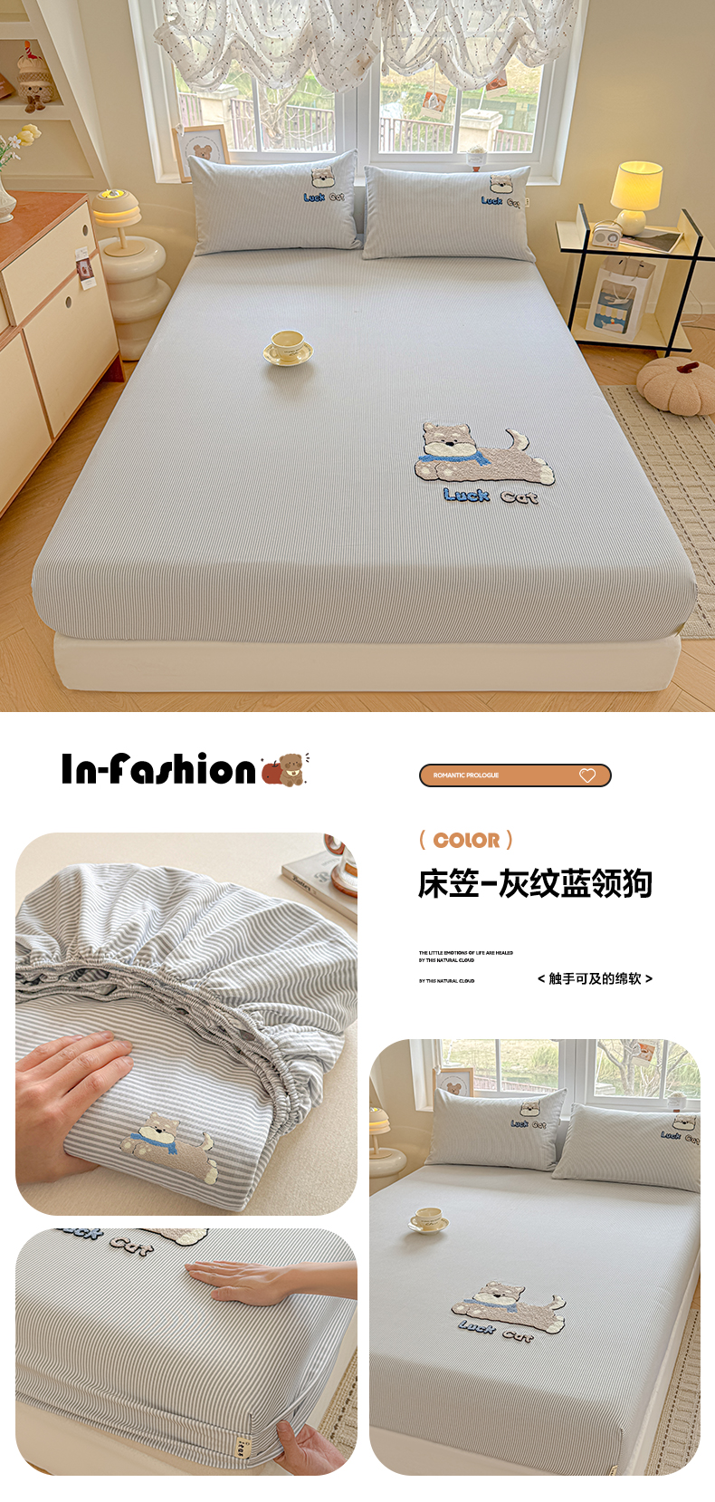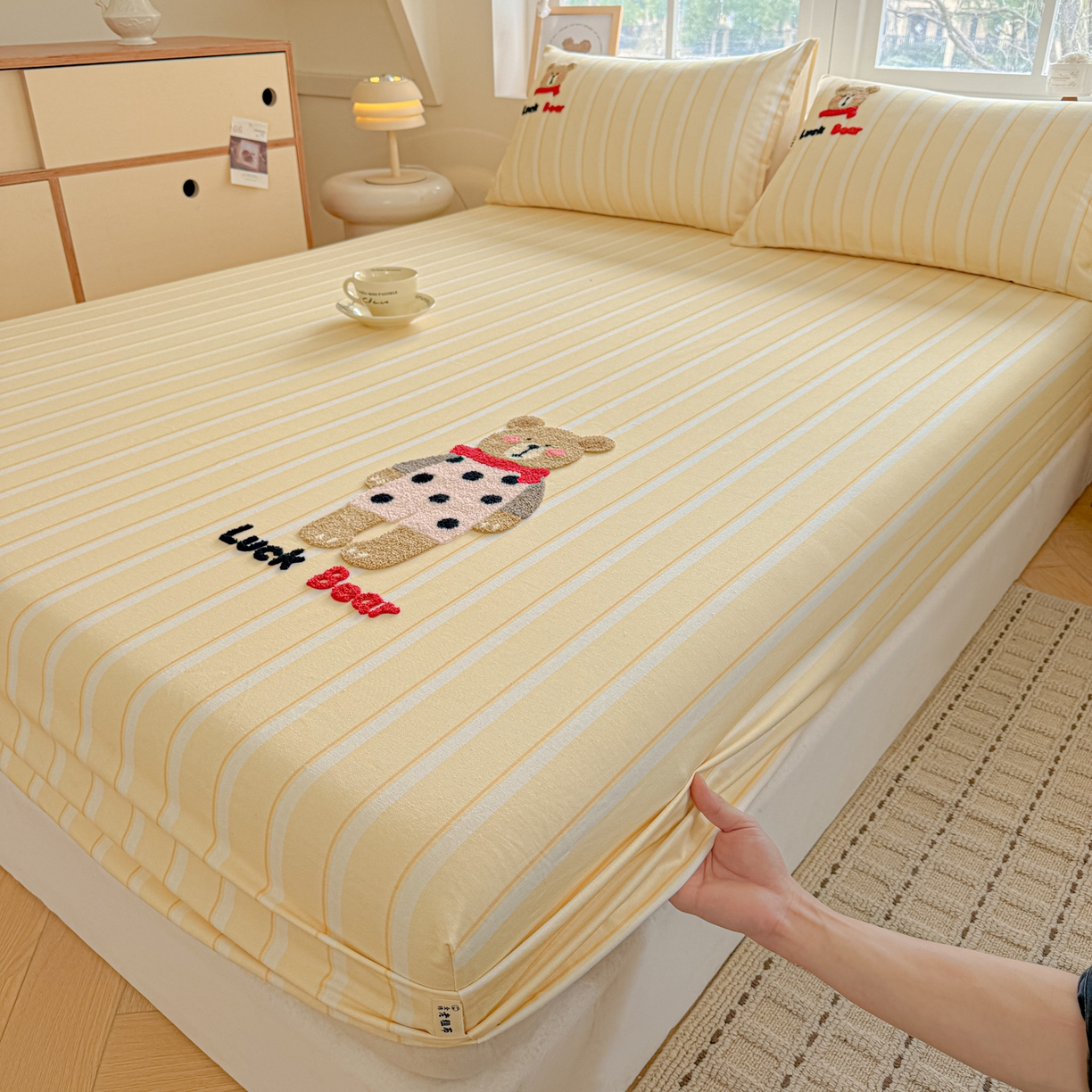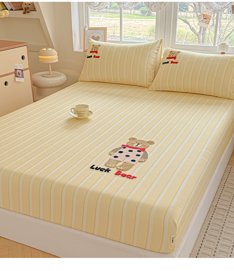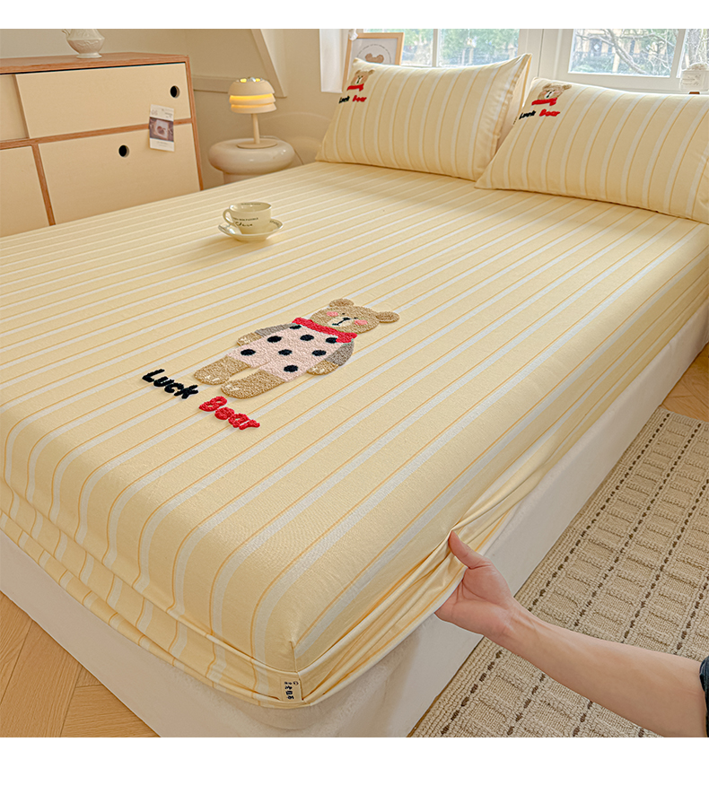 > 莱登卡奴 2026新款A类100%全棉老粗布席子凉席毛巾绣单床笠床笠单件 床笠-波点小暖熊