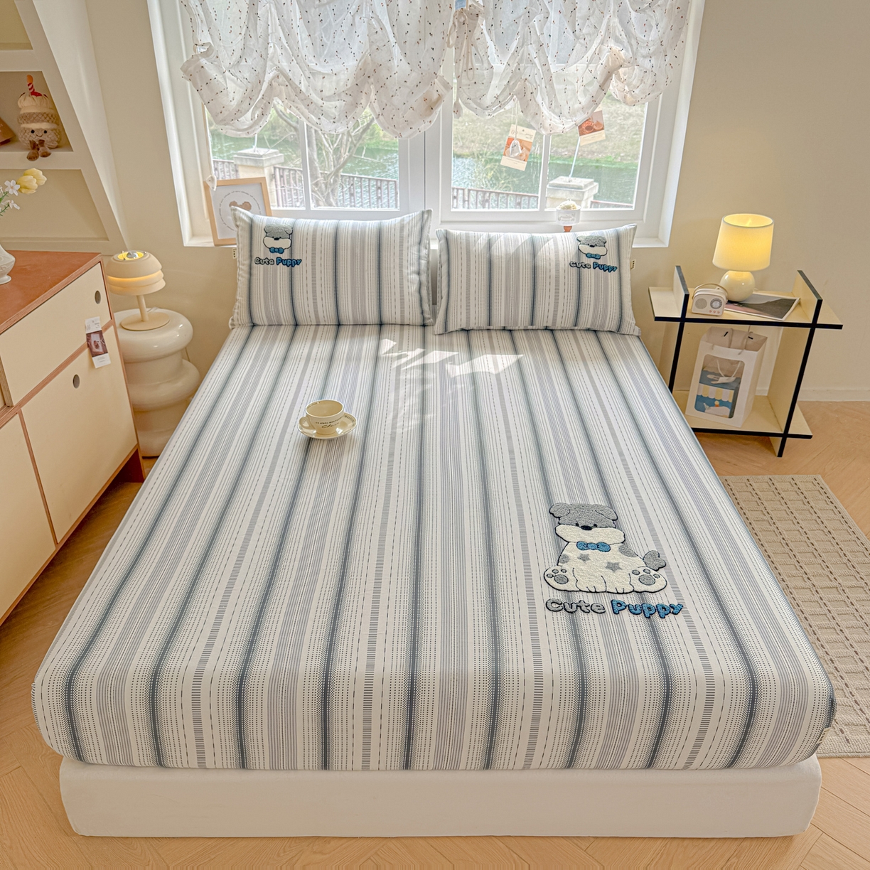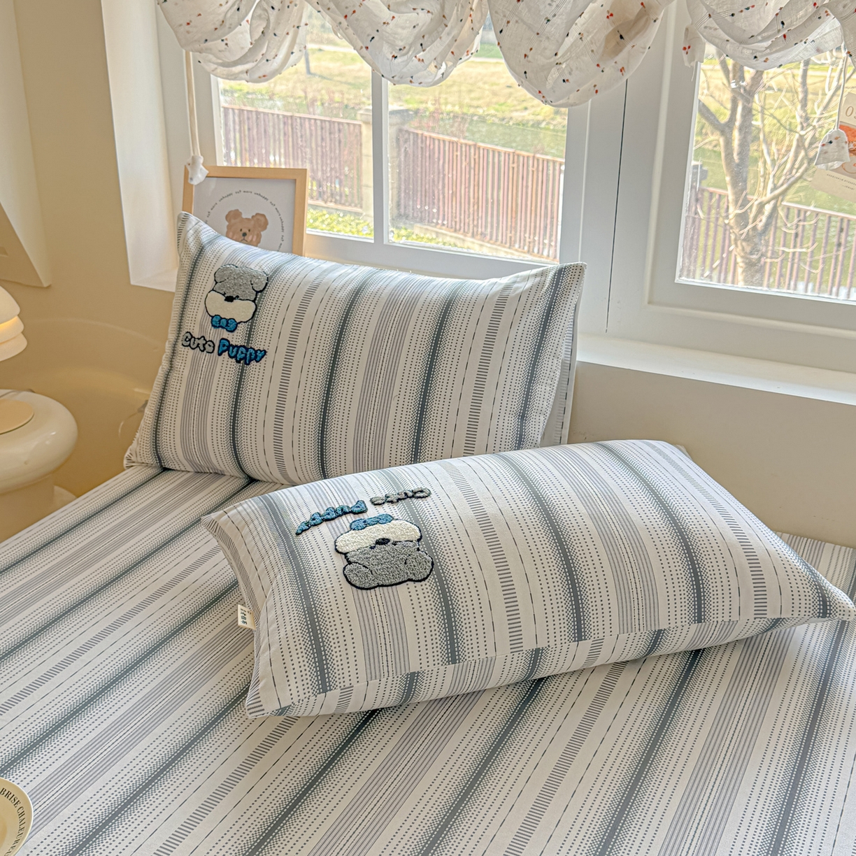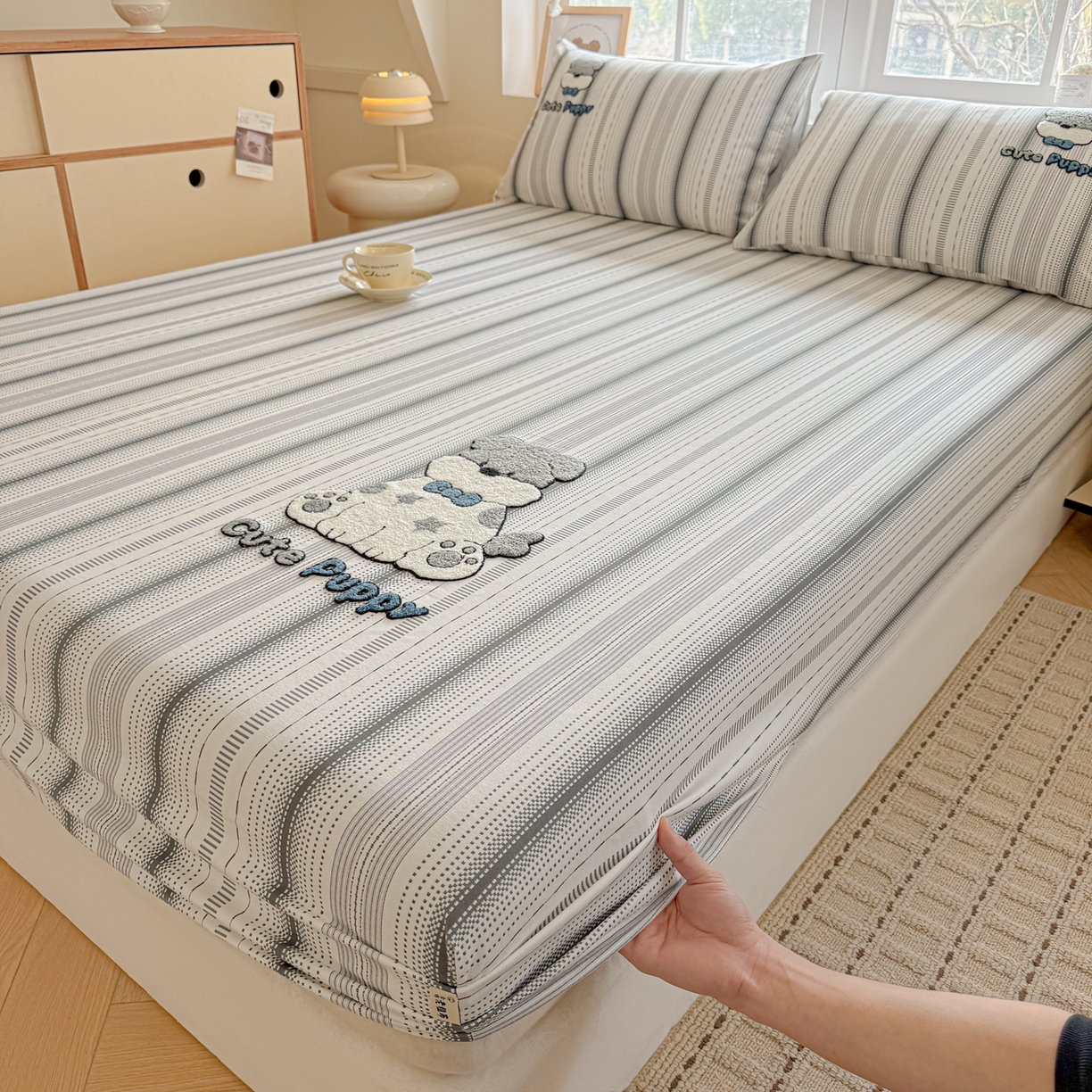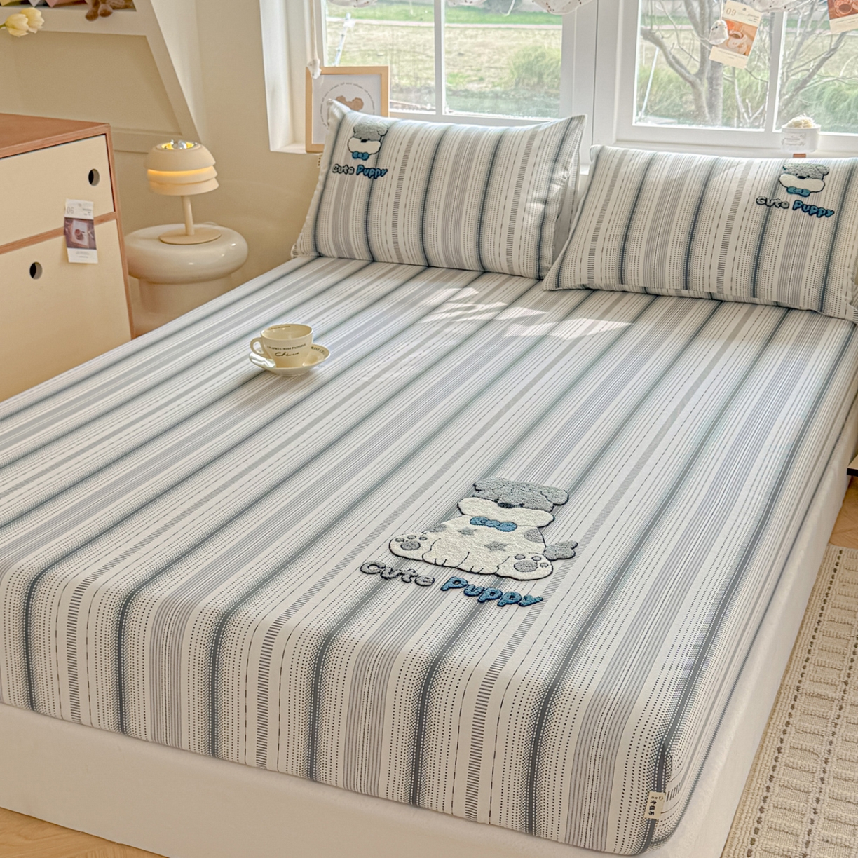 莱登卡奴 2026新款A类100%全棉老粗布席子凉席毛巾绣单床笠床笠单件 床笠-灰调萌犬