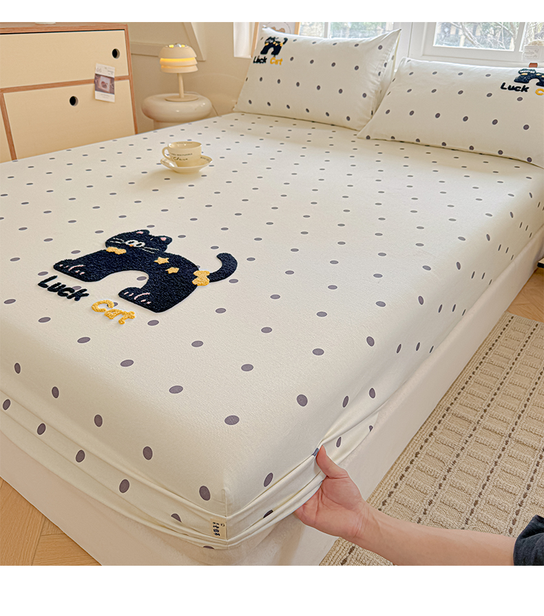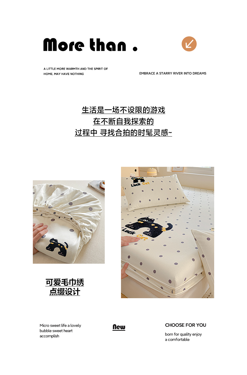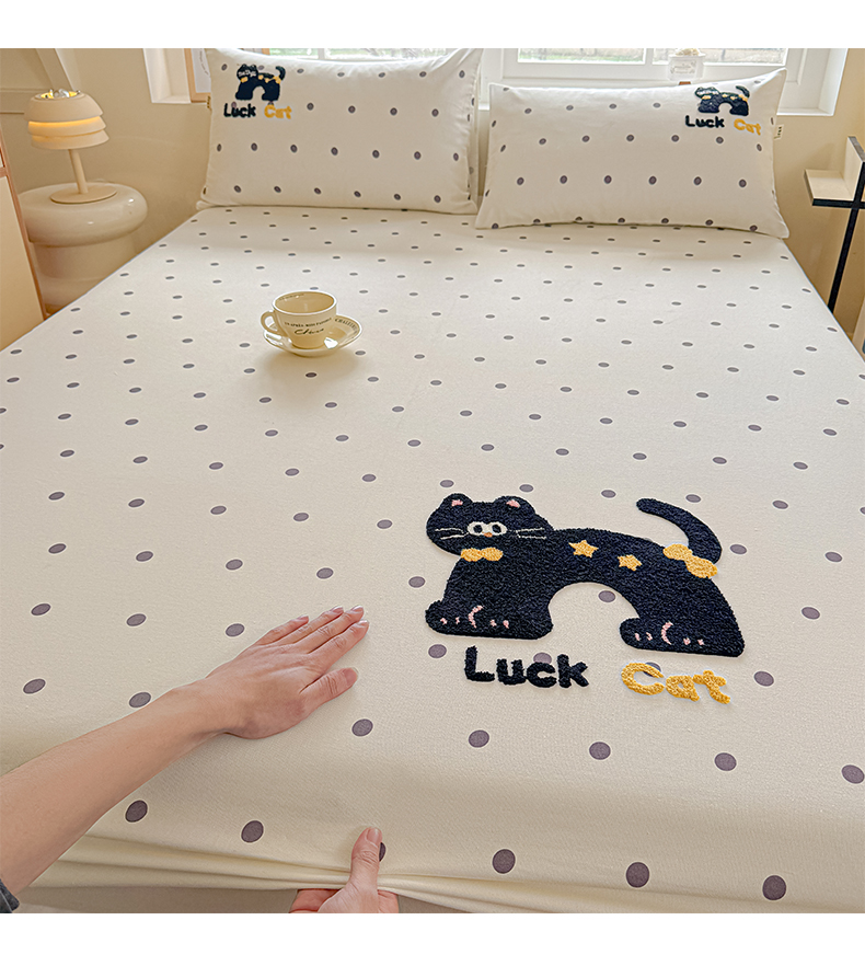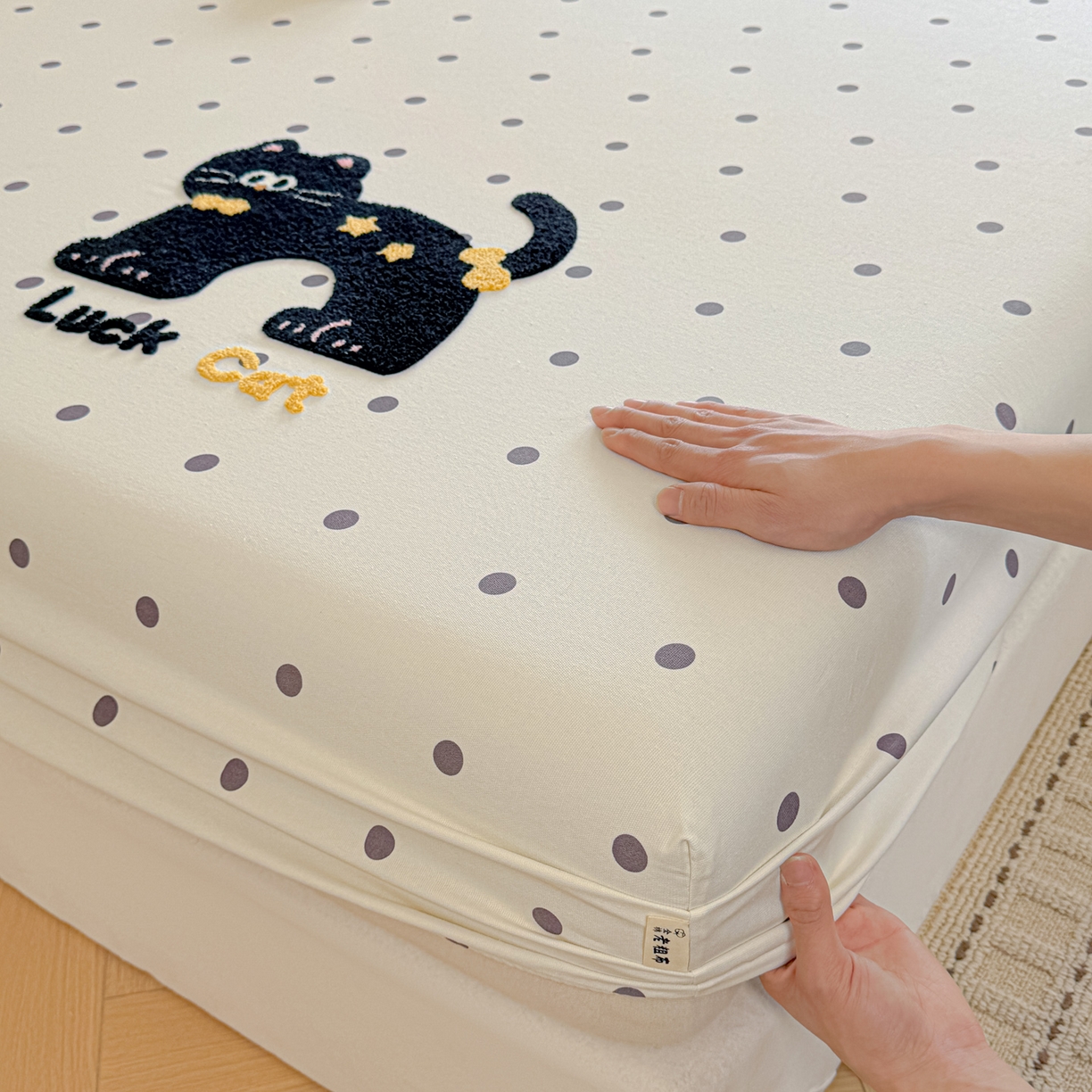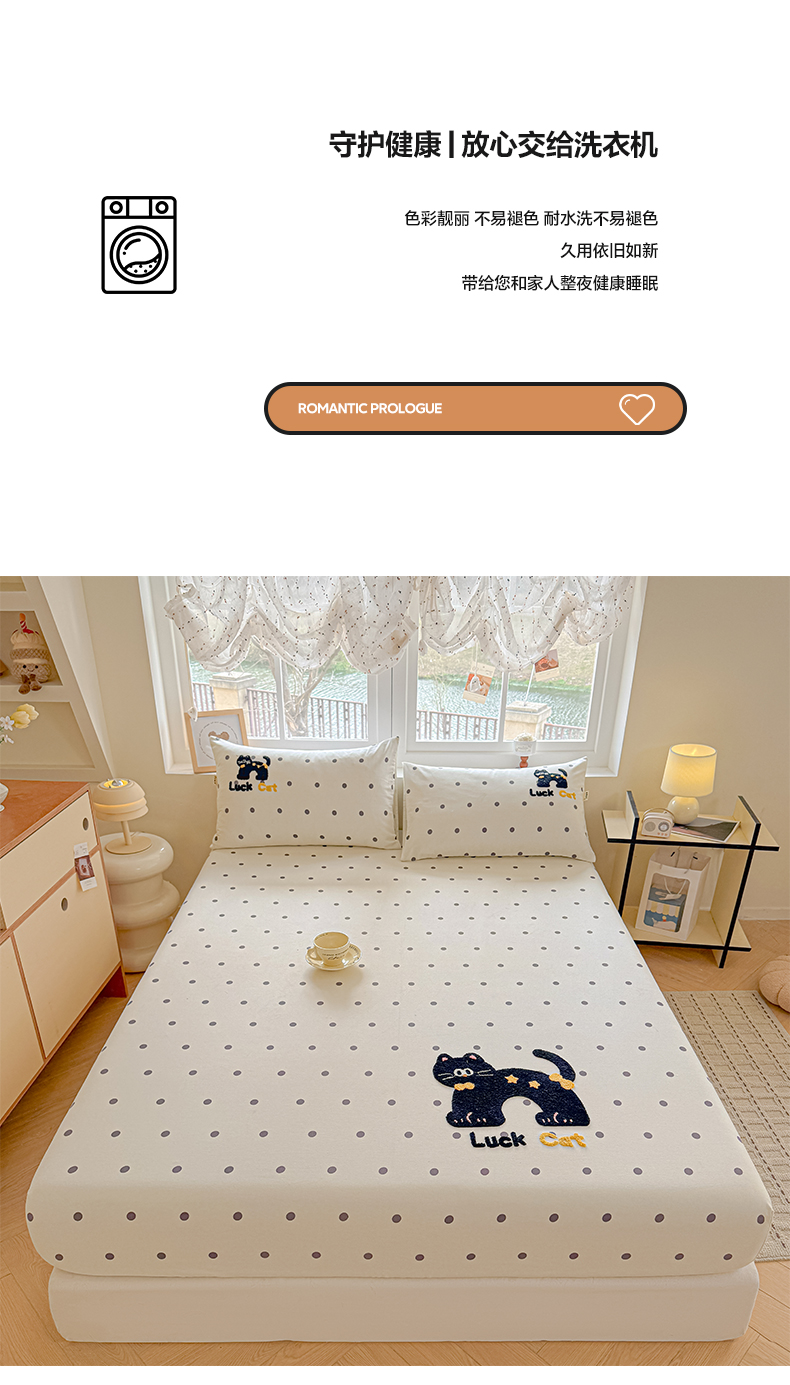 > 莱登卡奴 2026新款A类100%全棉老粗布席子凉席毛巾绣单床笠床笠单件 床笠-卡布幸运猫
