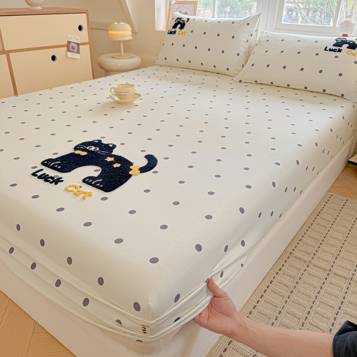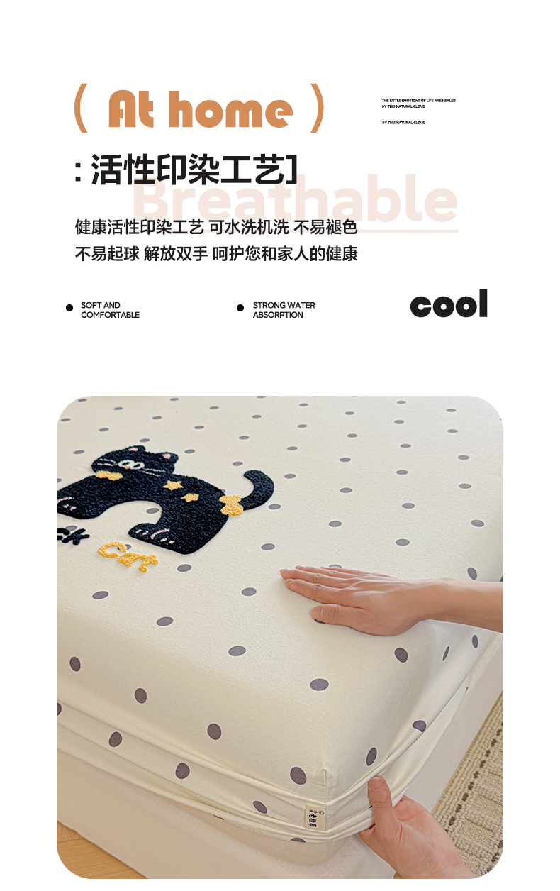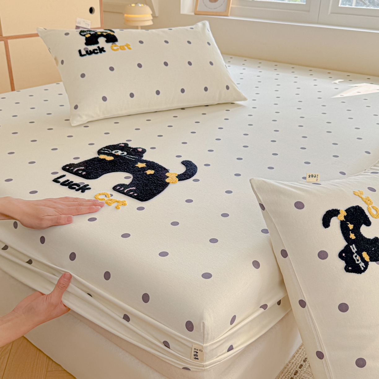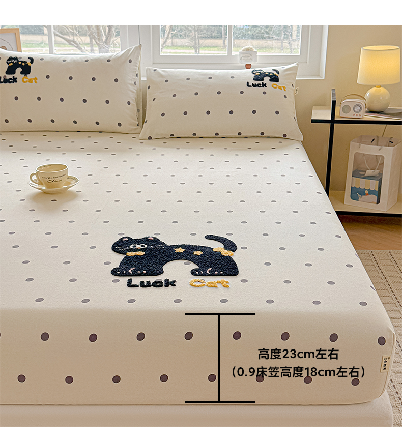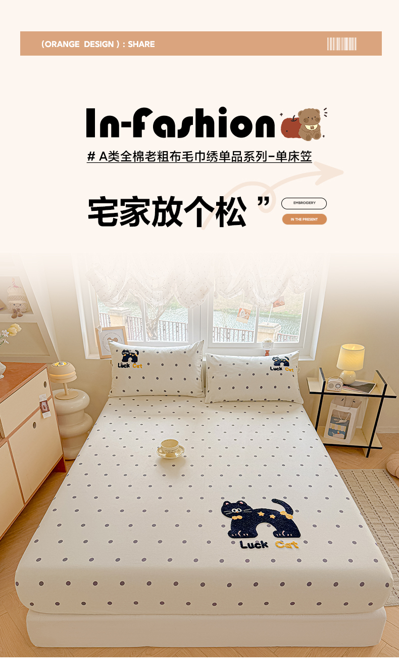 > 莱登卡奴 2026新款A类100%全棉老粗布席子凉席毛巾绣单床笠床笠单件 床笠-卡布幸运猫