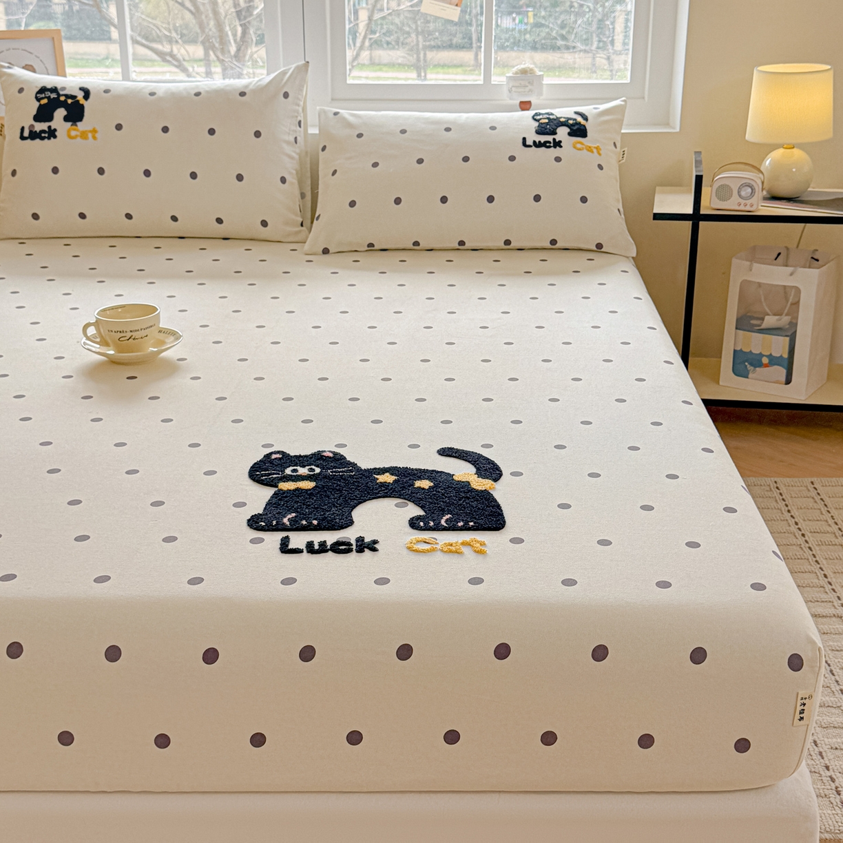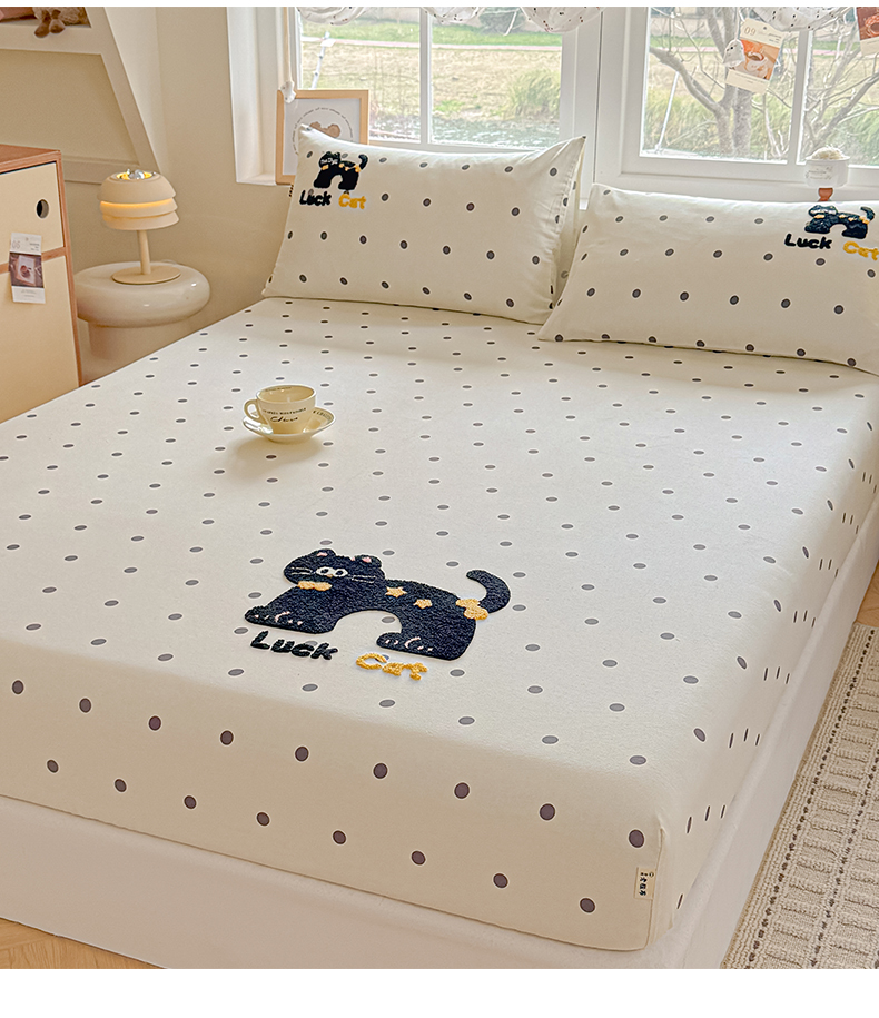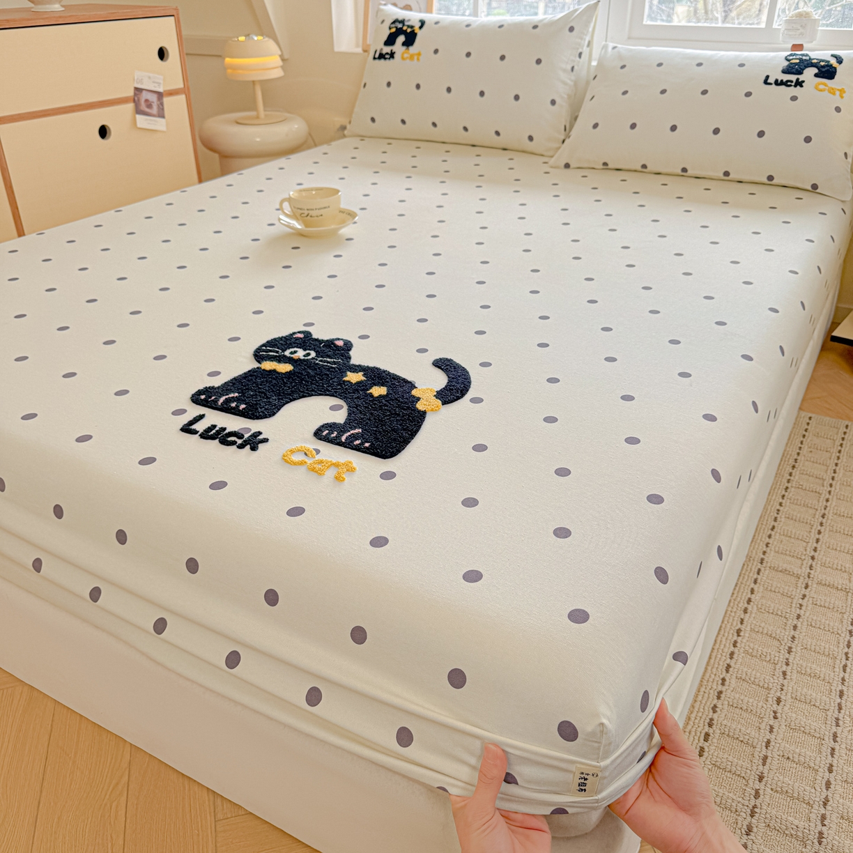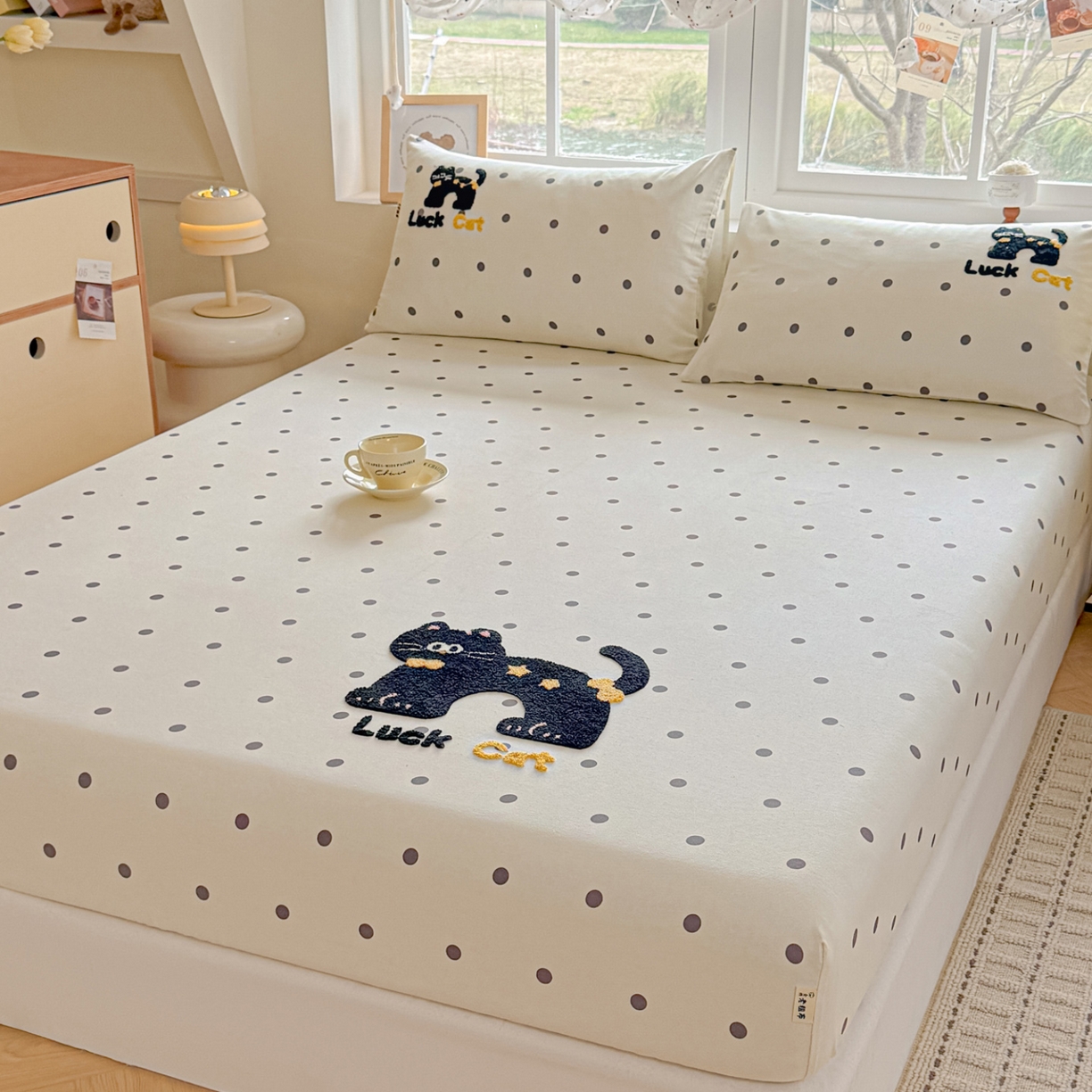 > 莱登卡奴 2026新款A类100%全棉老粗布席子凉席毛巾绣单床笠床笠单件 床笠-卡布幸运猫