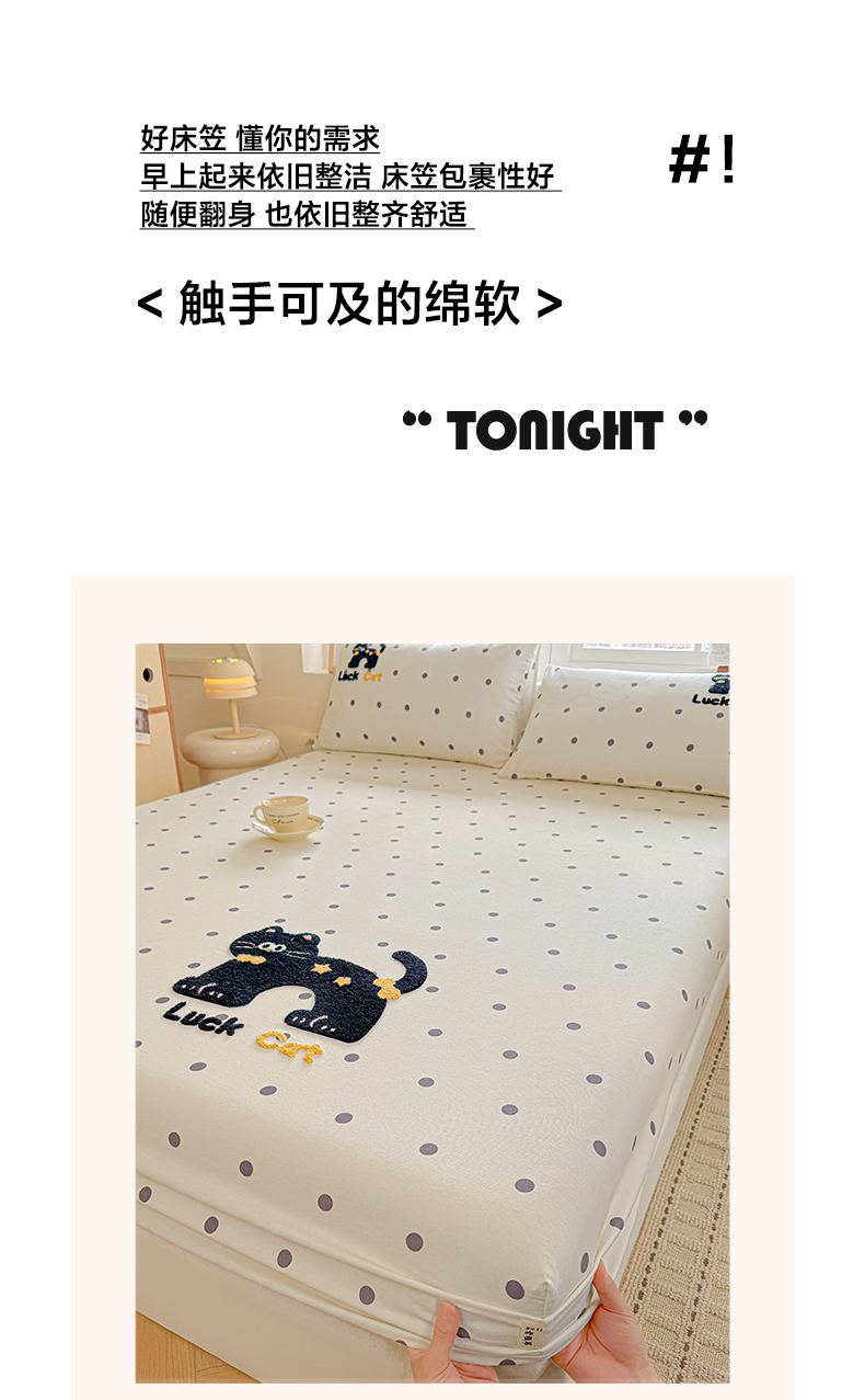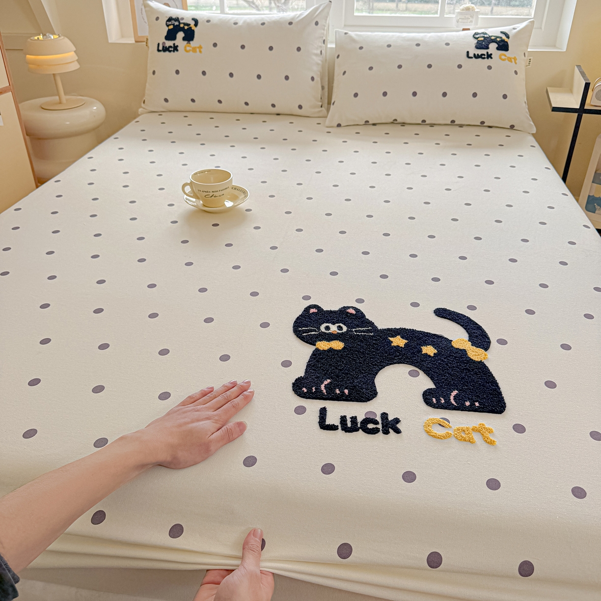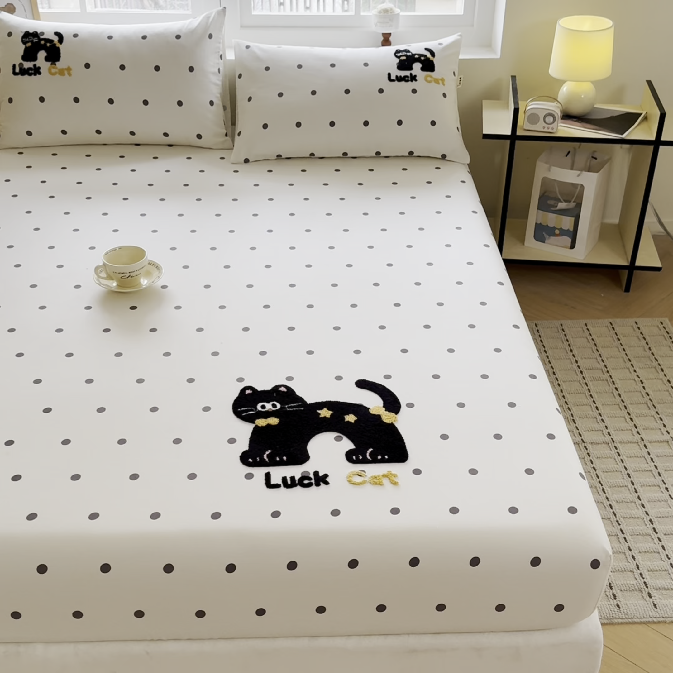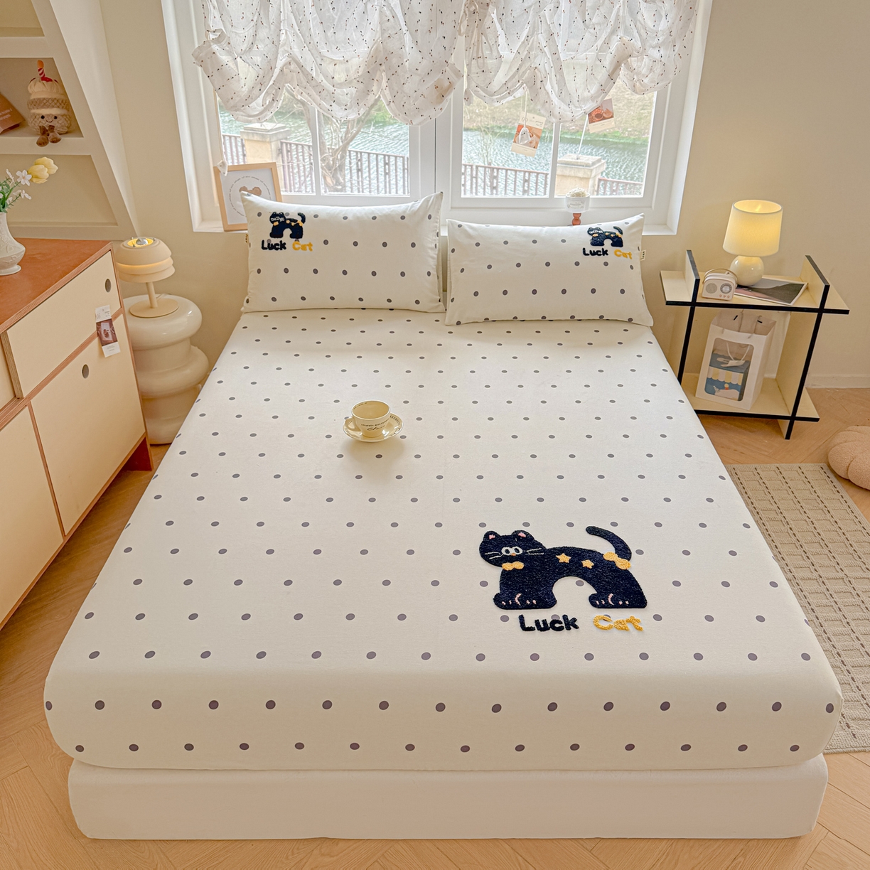 > 莱登卡奴 2026新款A类100%全棉老粗布席子凉席毛巾绣单床笠床笠单件 床笠-卡布幸运猫