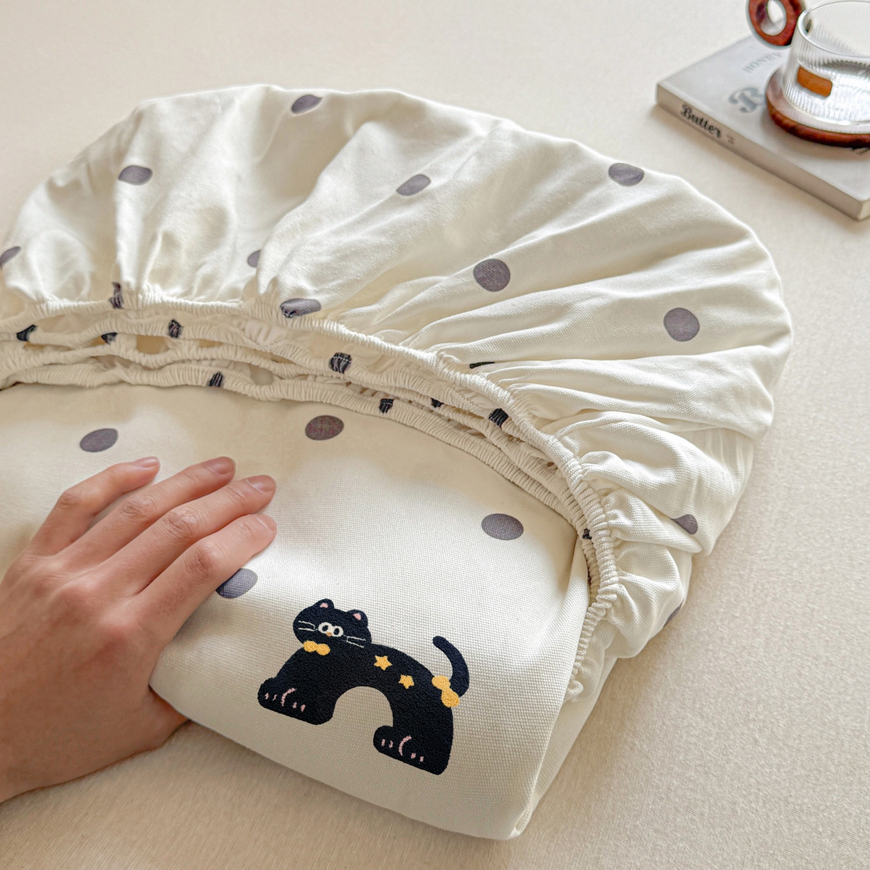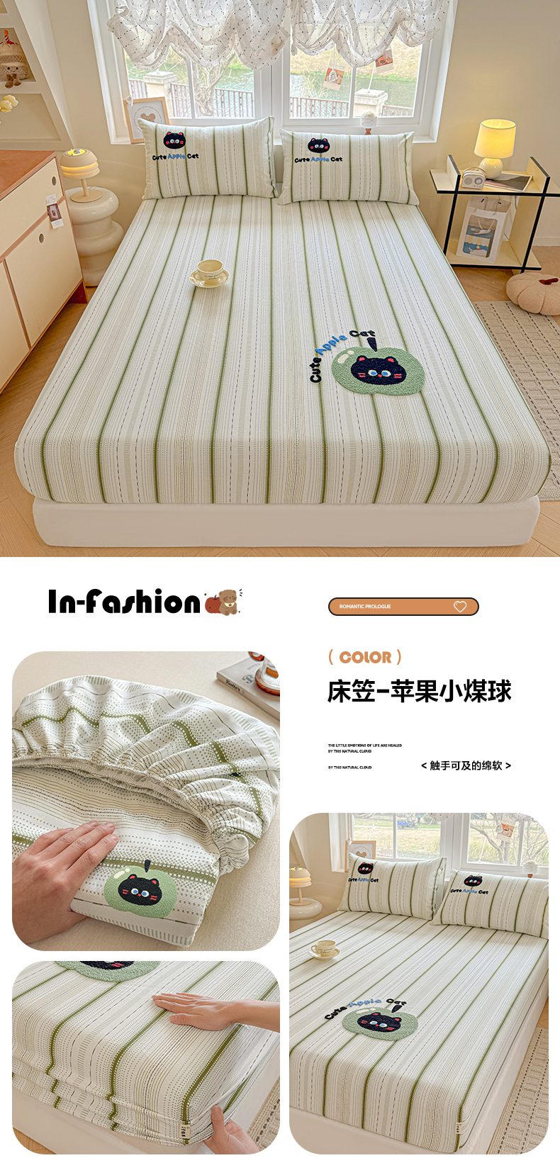 莱登卡奴 2026新款A类100%全棉老粗布席子凉席毛巾绣单床笠床笠单件 床笠-卡布幸运猫