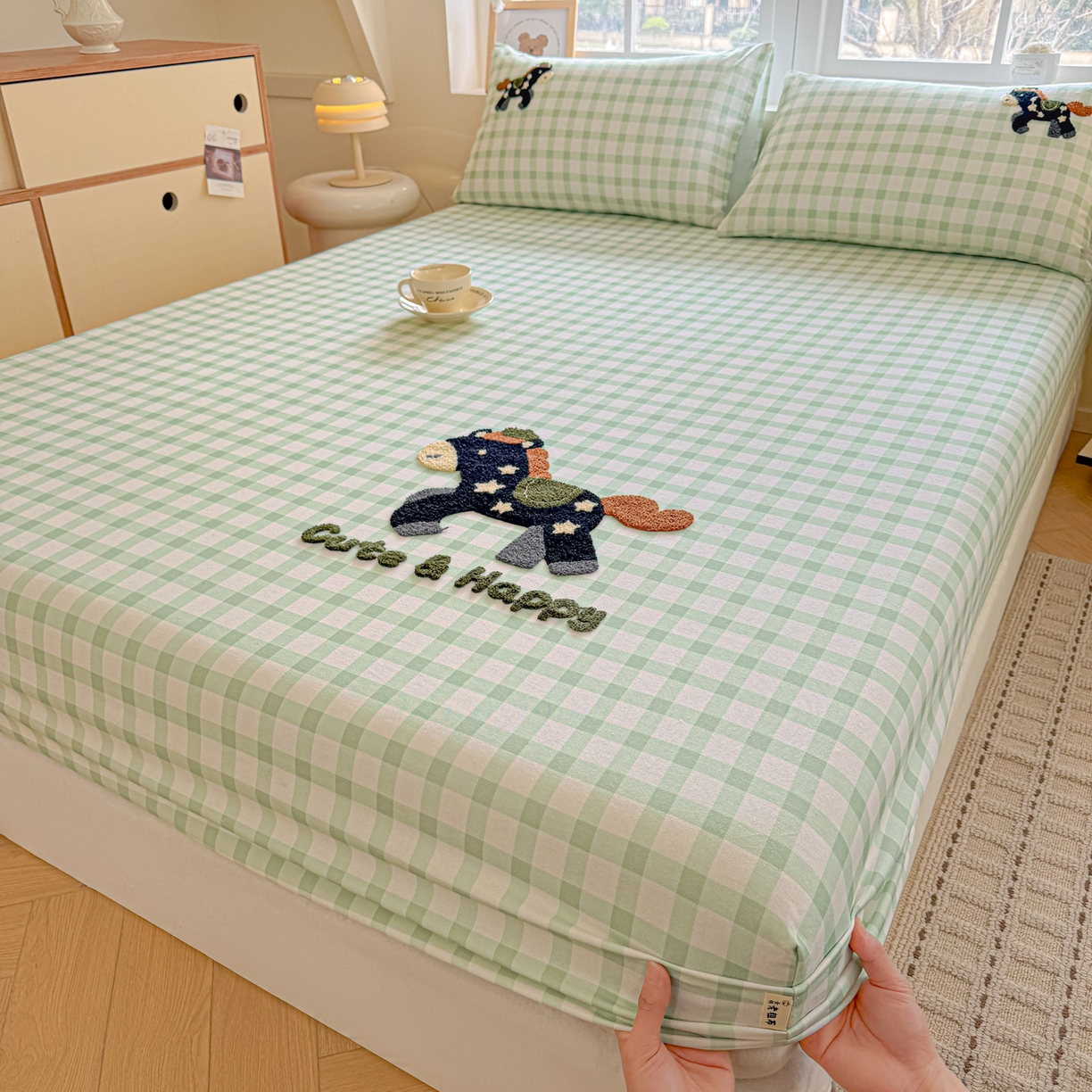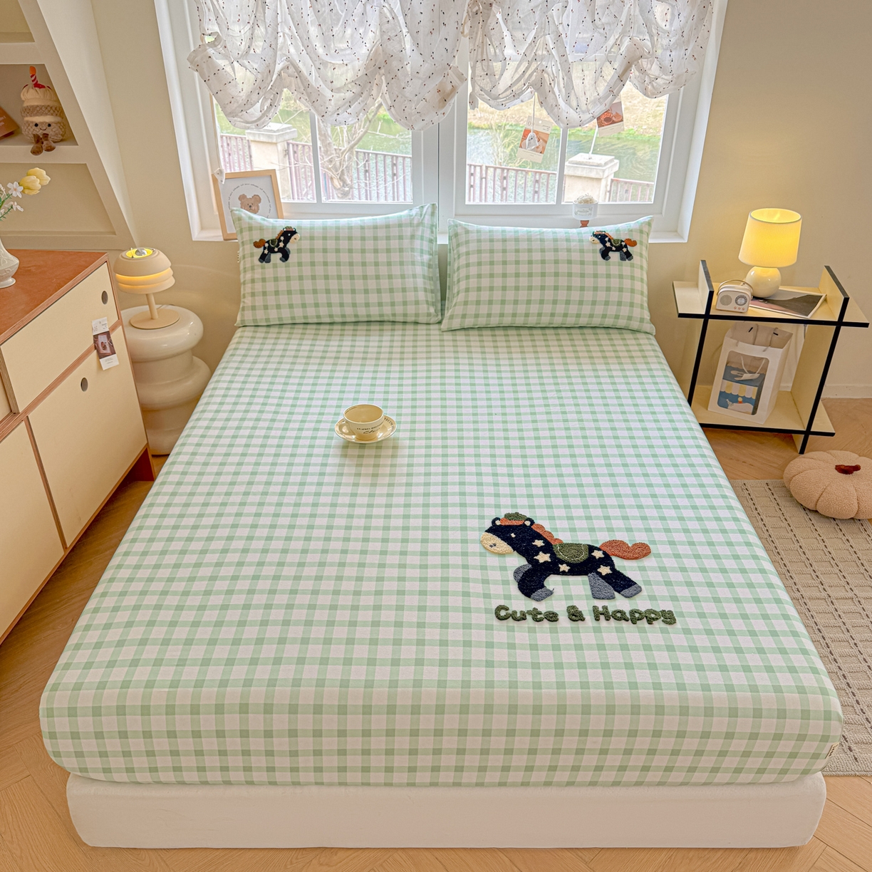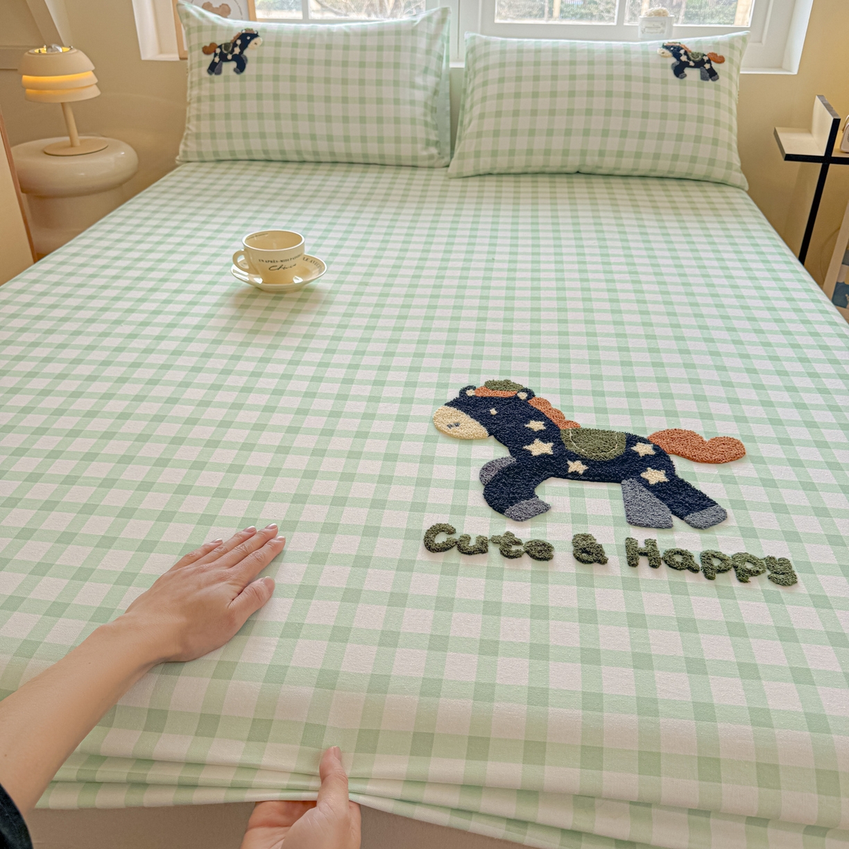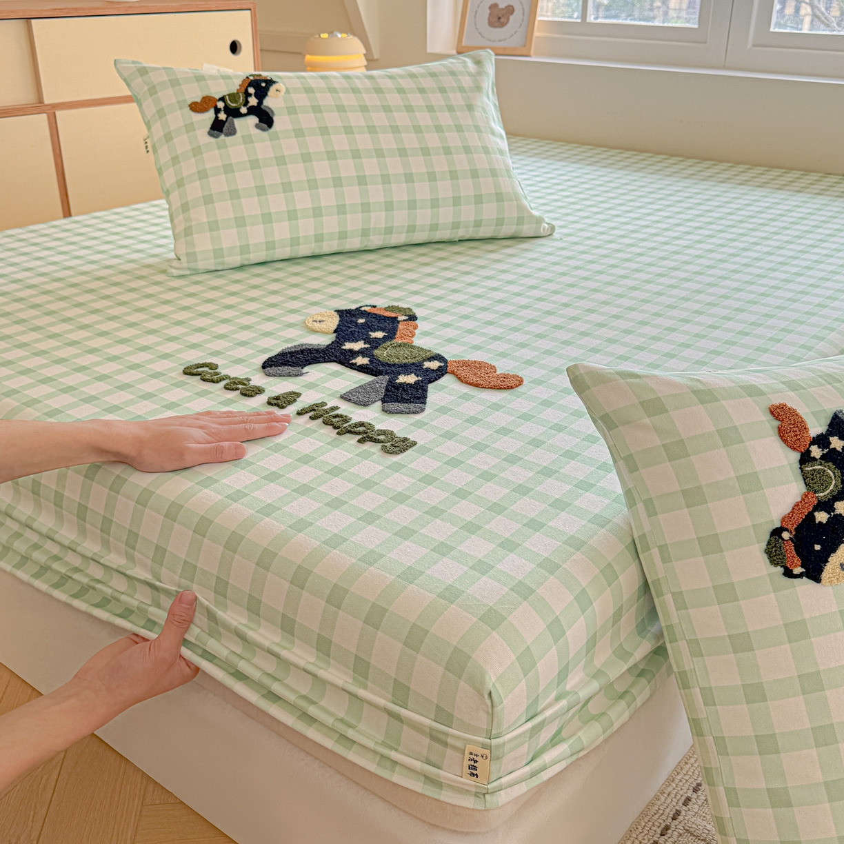 2025新款A类100%全棉磨毛条格卡通系列四件套
