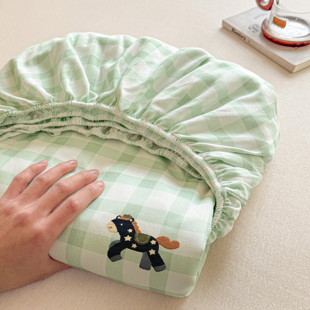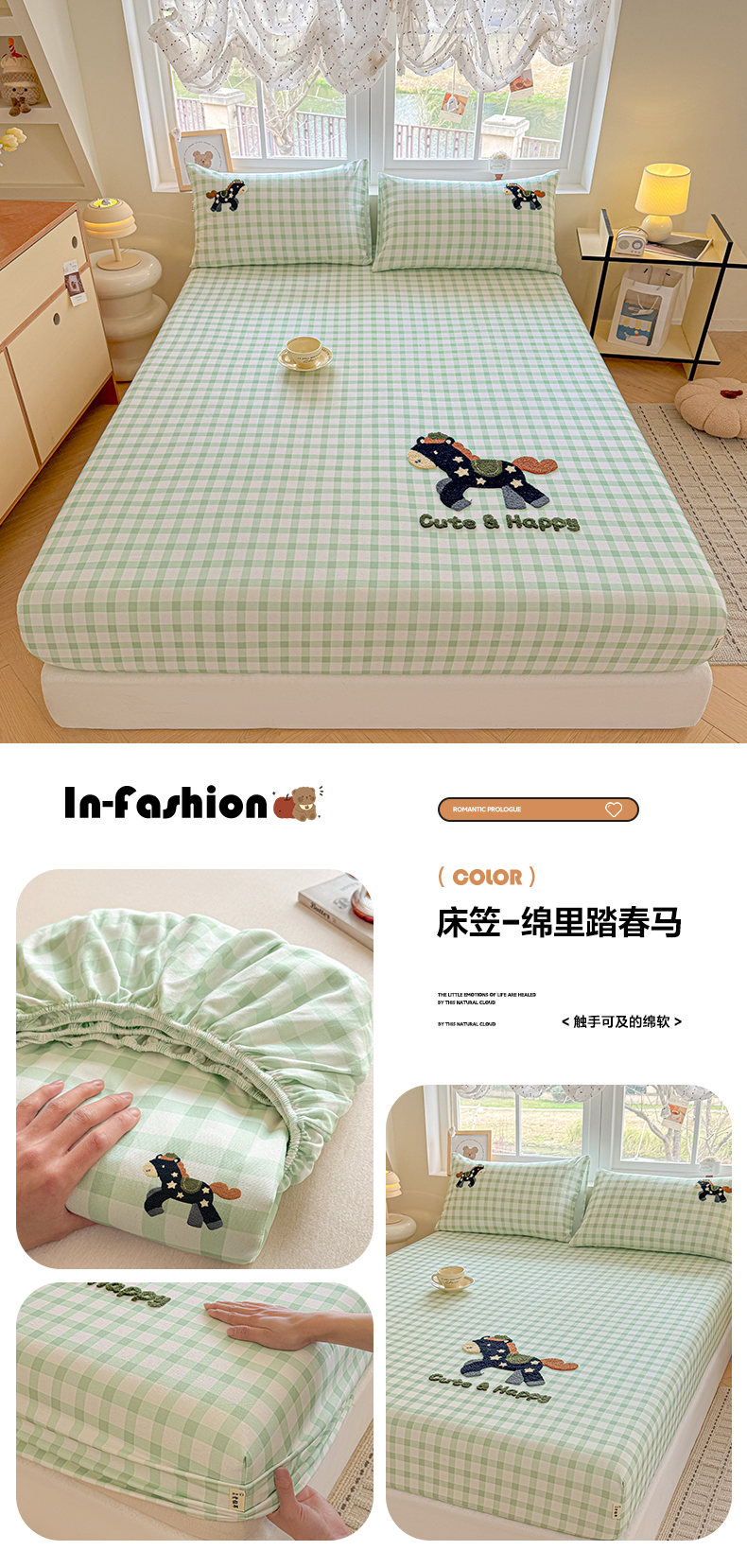 > 莱登卡奴 2026新款A类100%全棉老粗布席子凉席毛巾绣单床笠床笠单件 床笠-绵里踏春马
