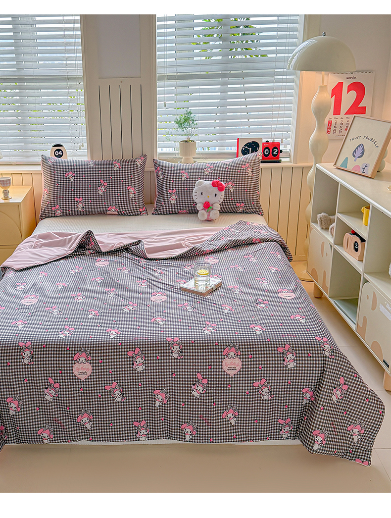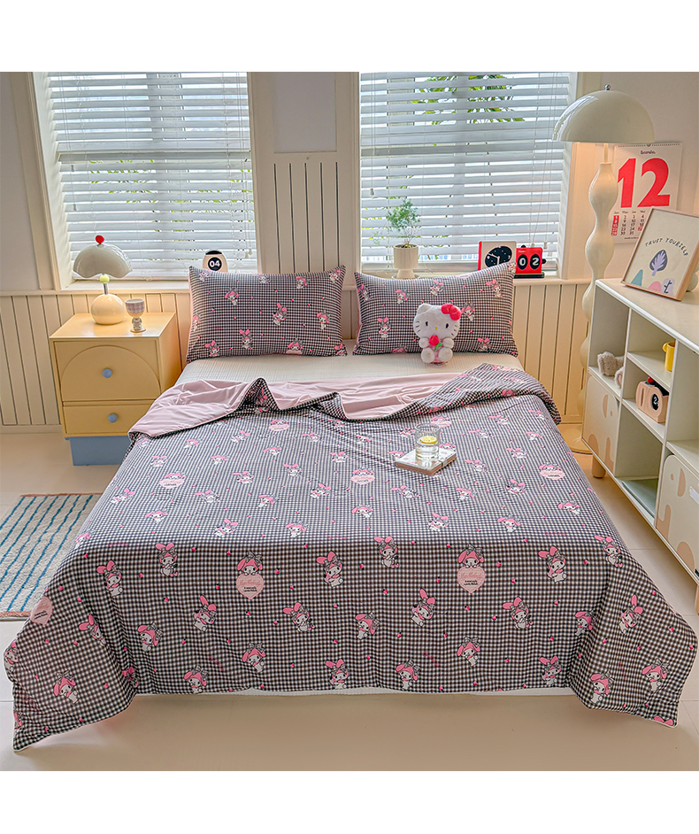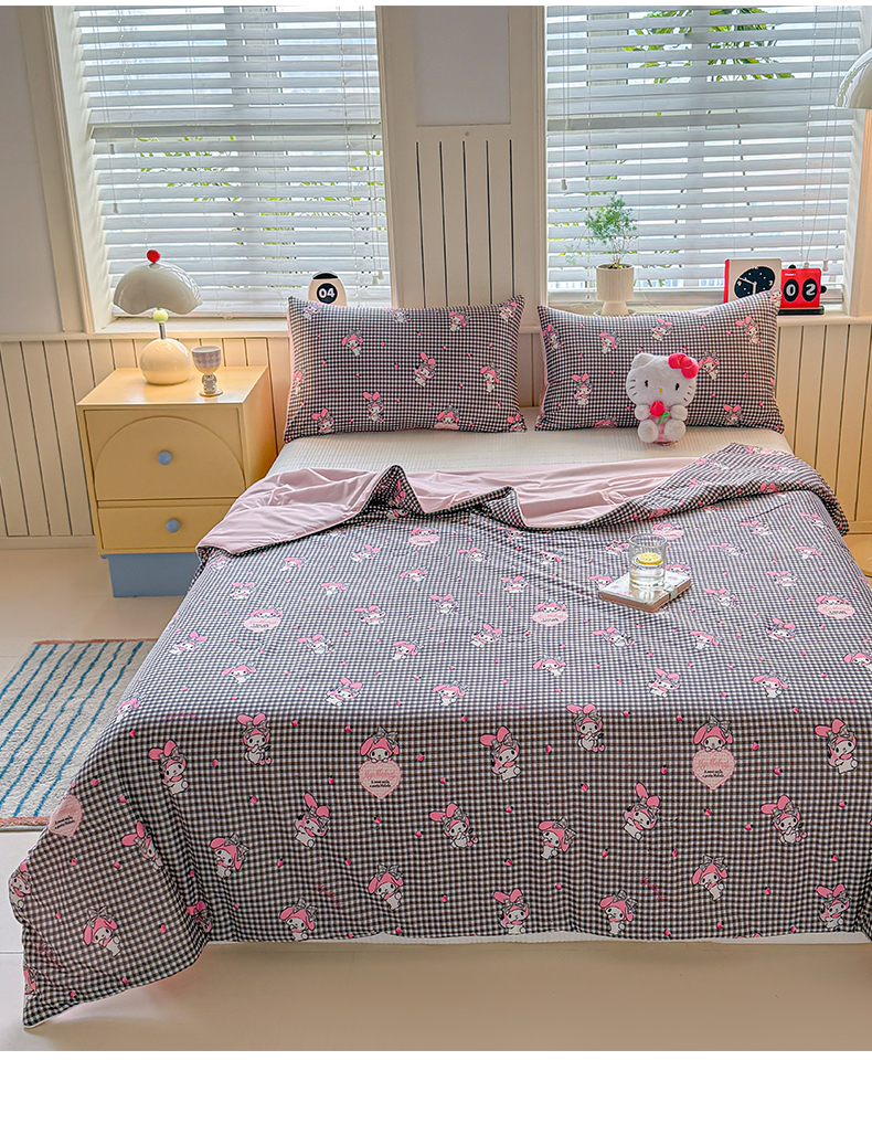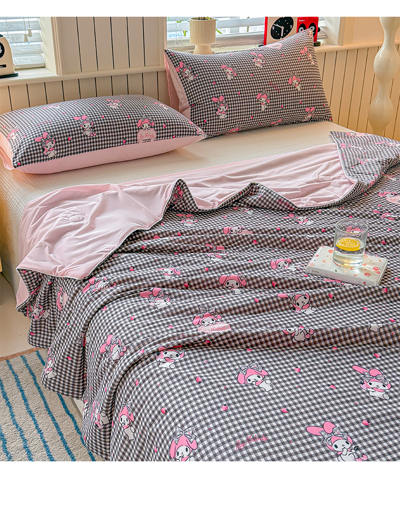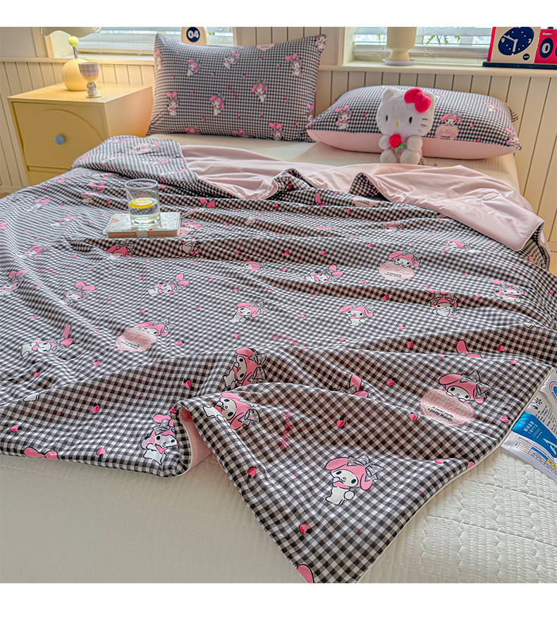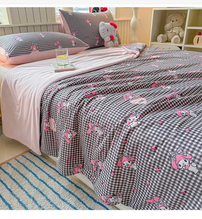 > 莱登卡奴 2026新款A类三丽鸥针织棉凉感丝双面用夏被夏凉被空调被 格子美乐蒂