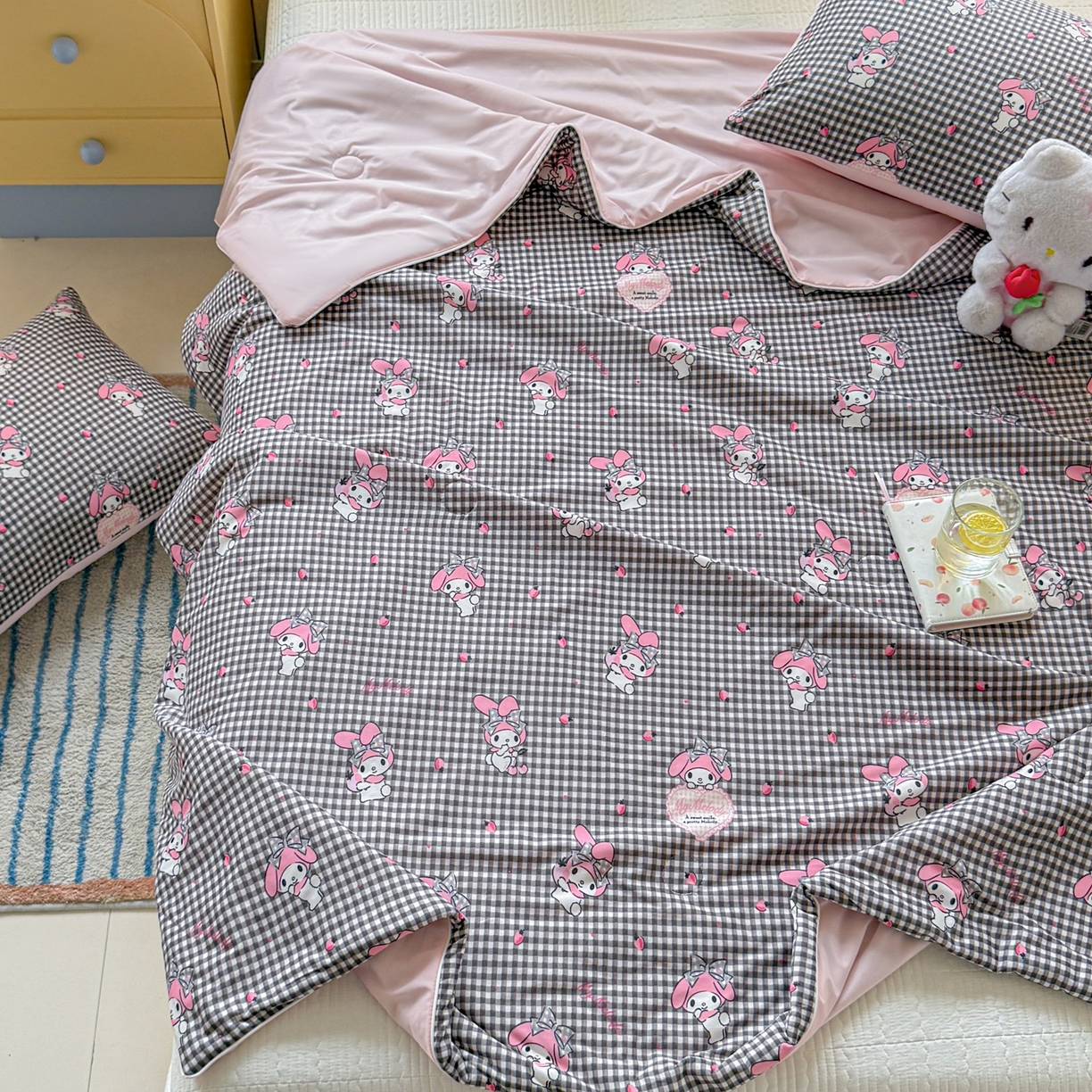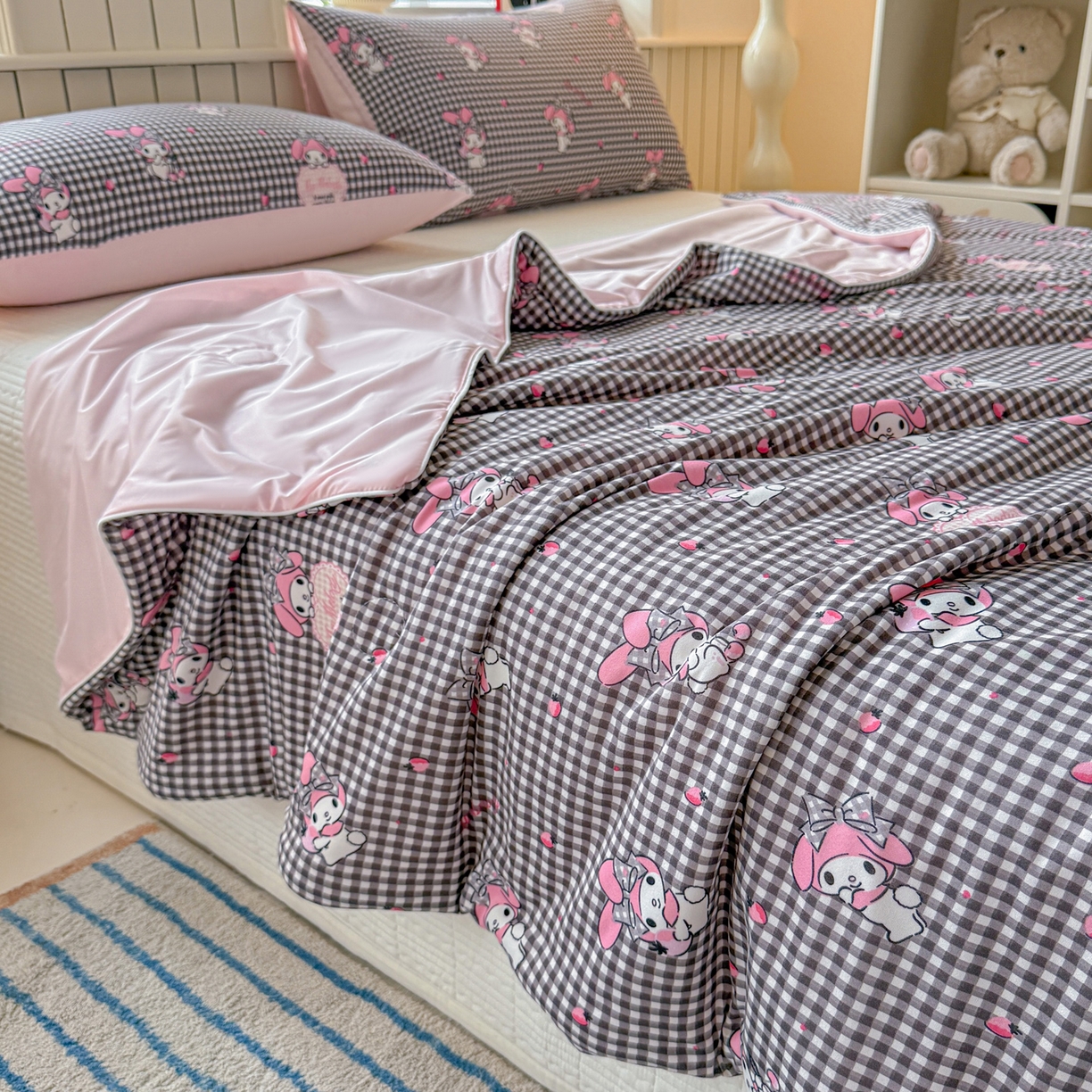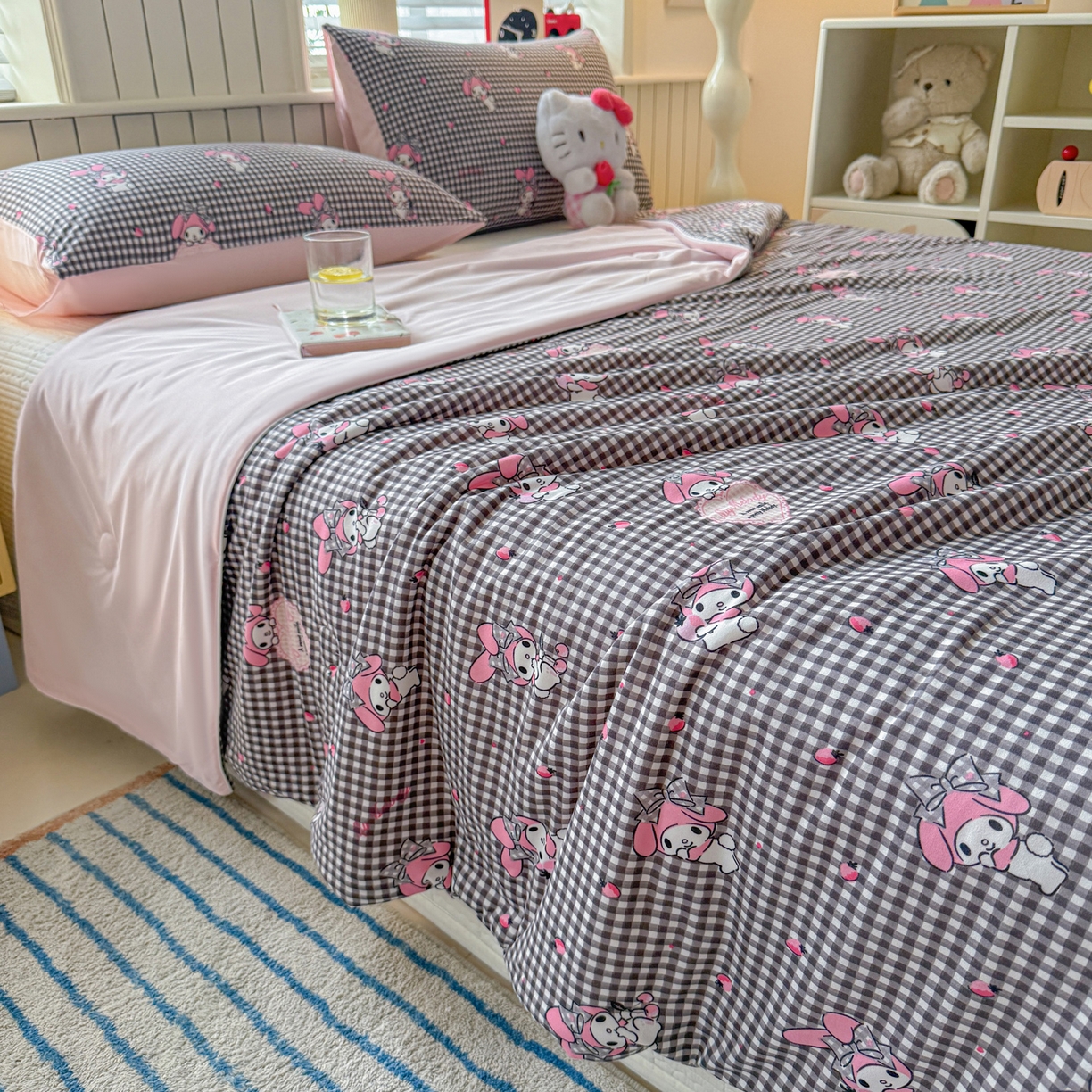 > 莱登卡奴 2026新款A类三丽鸥针织棉凉感丝双面用夏被夏凉被空调被 格子美乐蒂