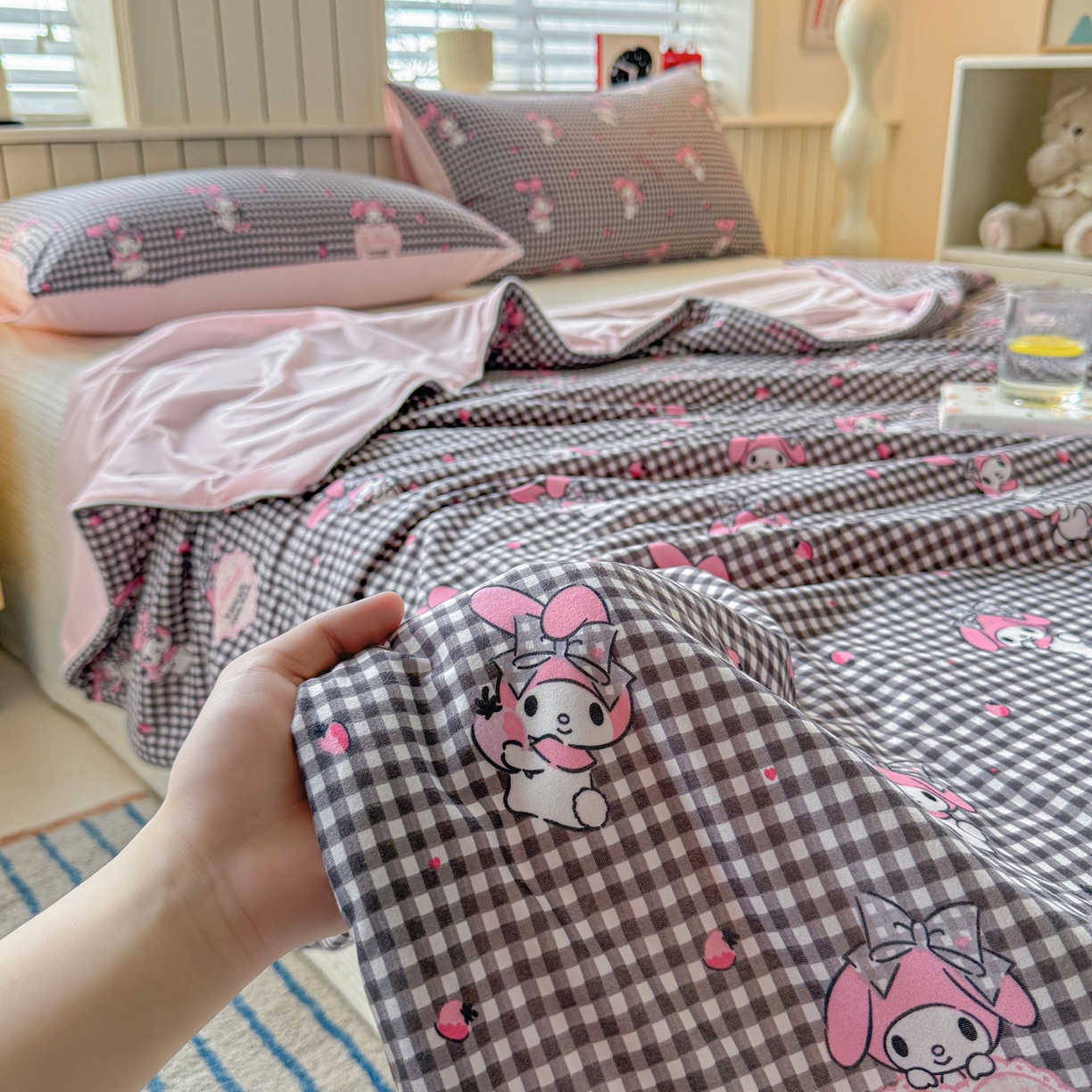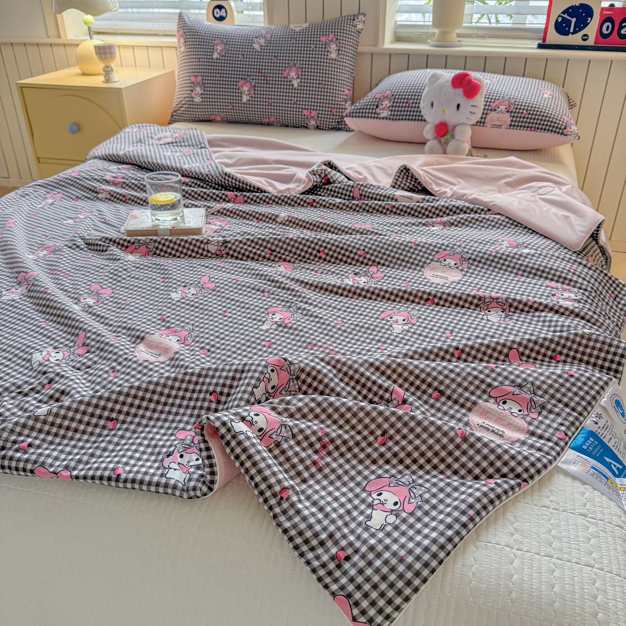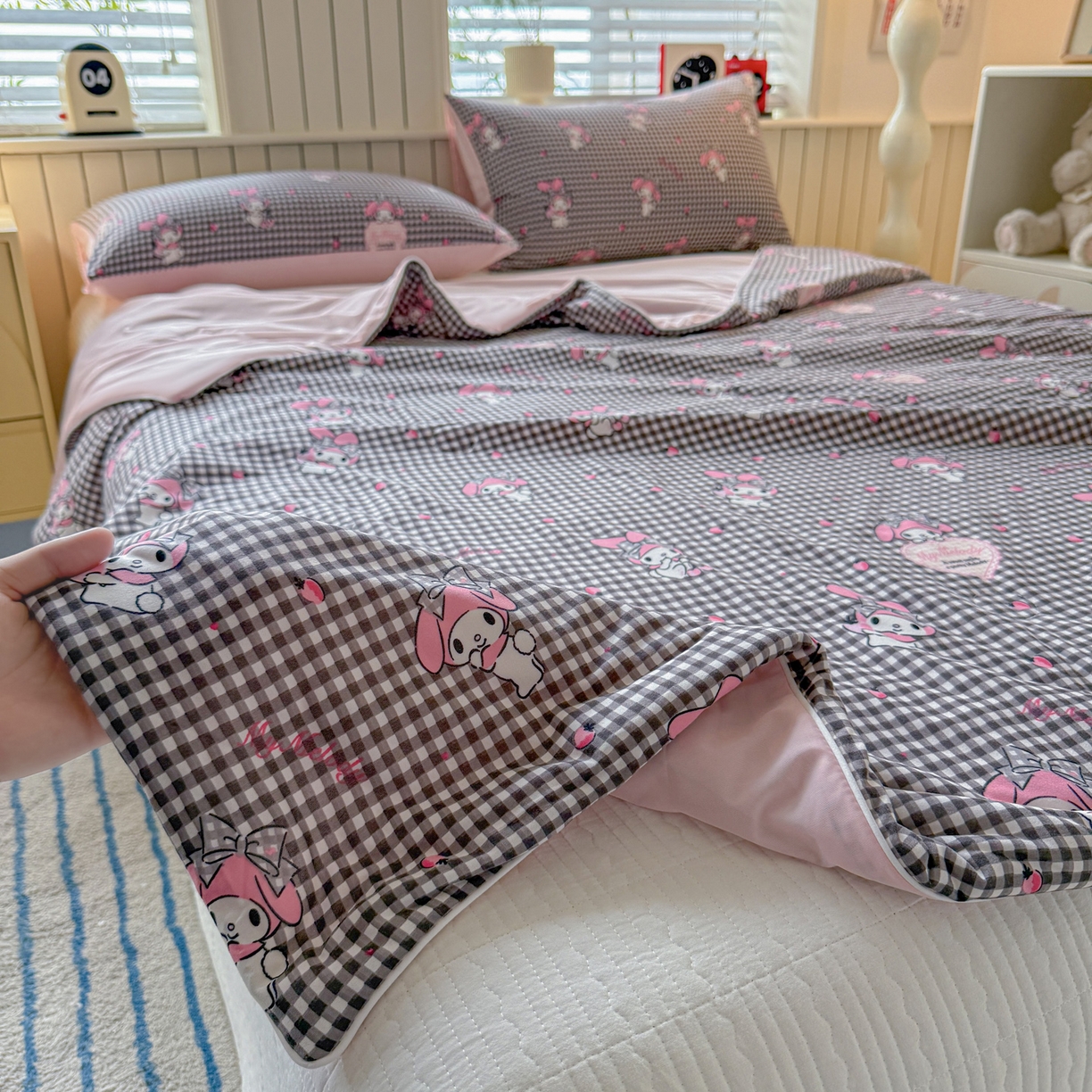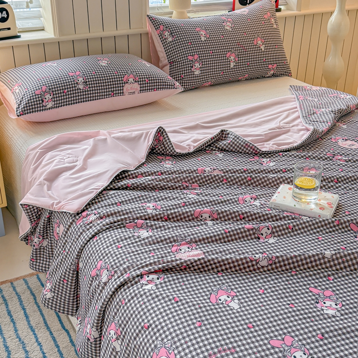 > 莱登卡奴 2026新款A类三丽鸥针织棉凉感丝双面用夏被夏凉被空调被 格子美乐蒂