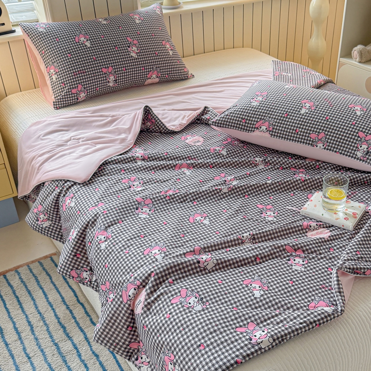 莱登卡奴 2026新款A类三丽鸥针织棉凉感丝双面用夏被夏凉被空调被 格子美乐蒂