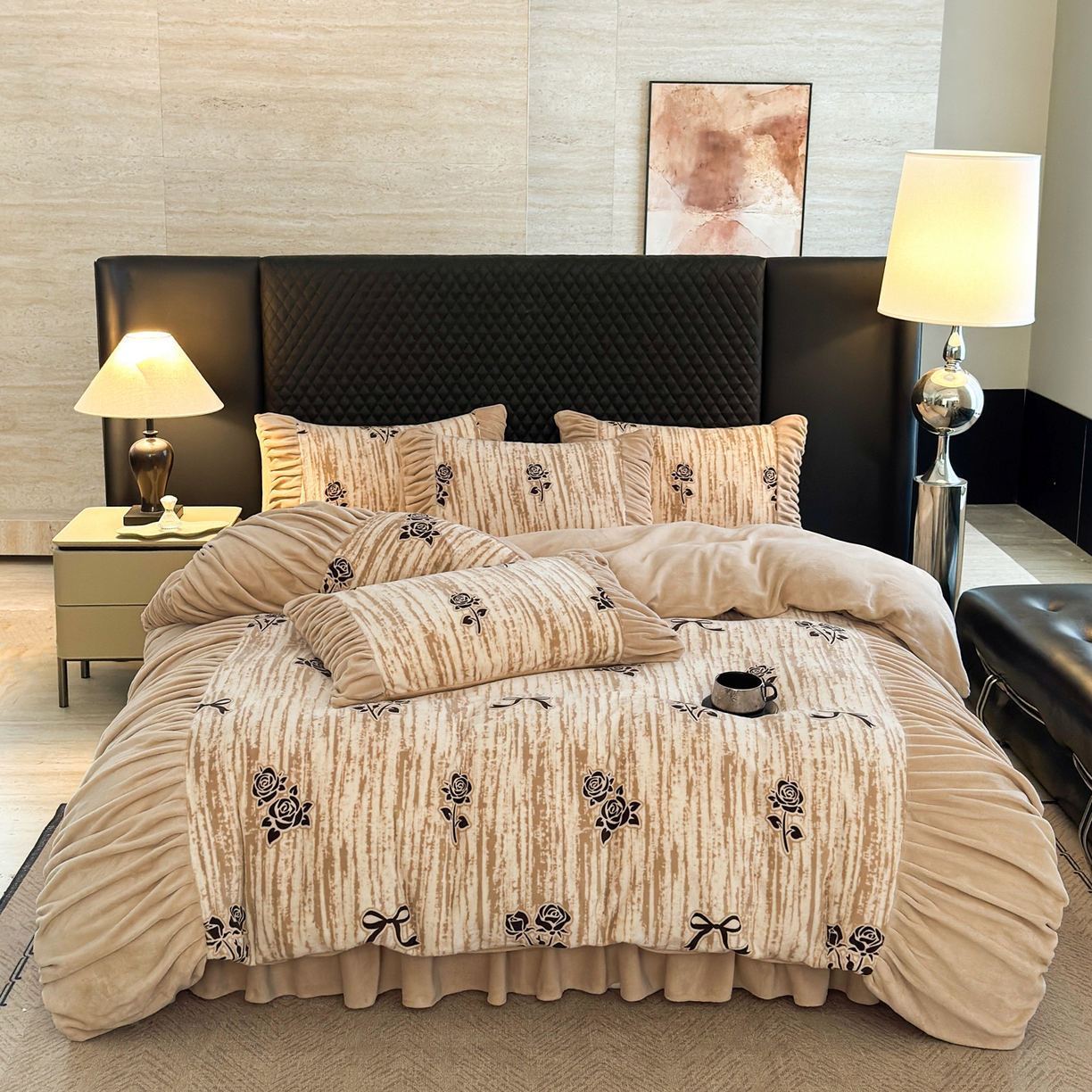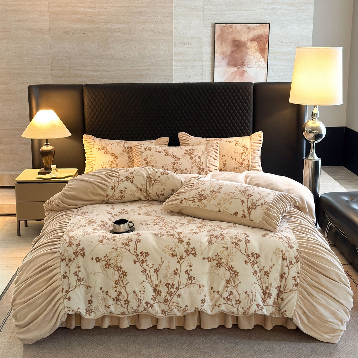 (总)莱登卡奴 2025新款高克重牛奶绒花边床盖款系列四件套