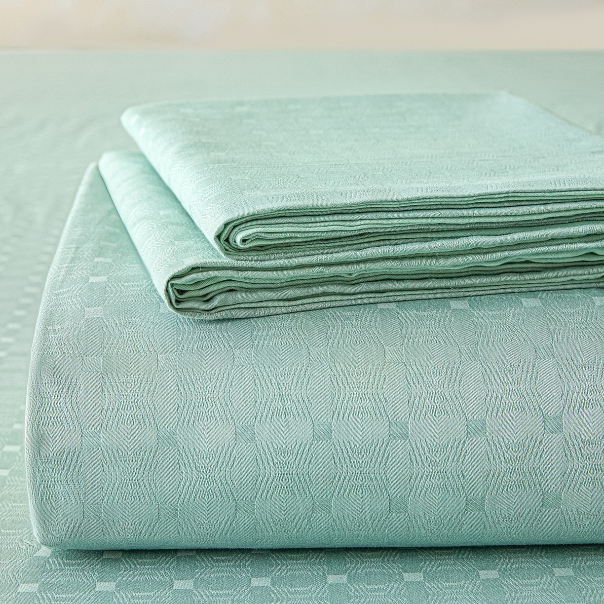 莱登卡奴 2026新款全棉A类贡缎提花单品时尚系列-床单-枕套 床单-编织抹茶绿
