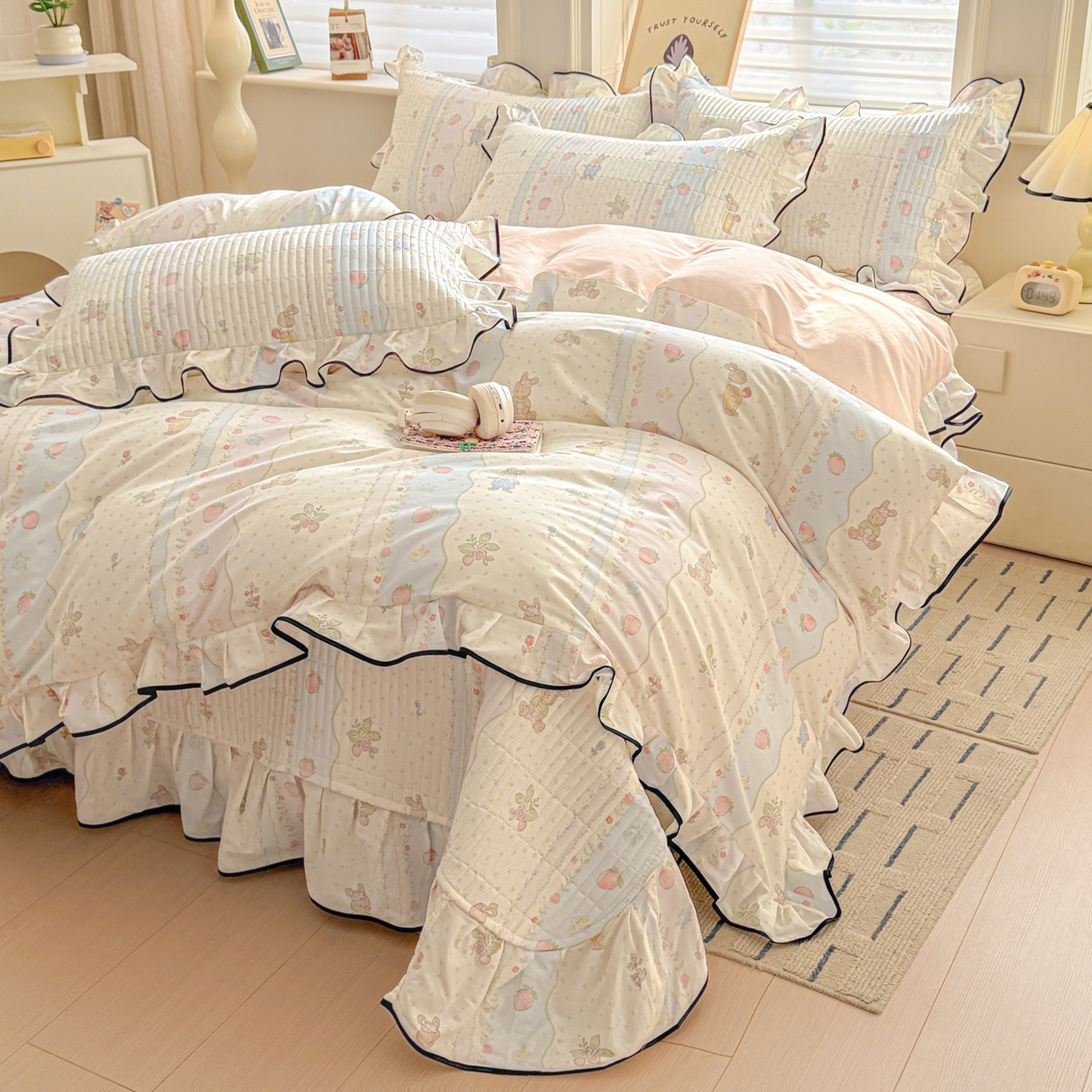 莱登卡奴 2026新款全棉A类小清新花边床盖款系列四件套 兔子草莓园