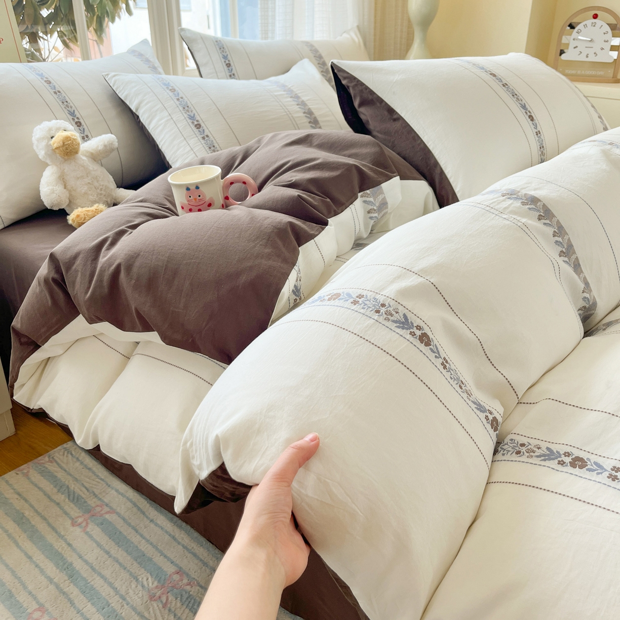 2022全棉水洗棉贝壳刺绣四件套-自然光
