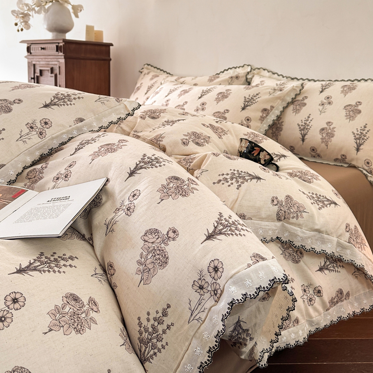 2026新款A类水洗棉麻复古花边麻棉四件套