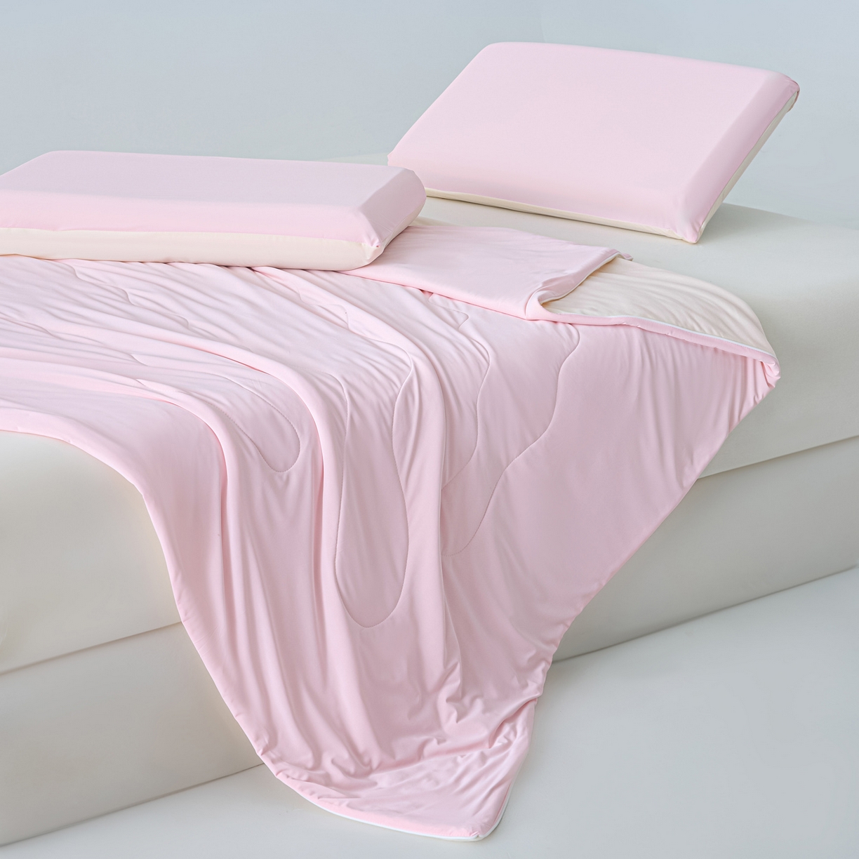 莱登卡奴 2026新款A类凉感丝仿锦氨针织棉双面用夏被 蜜桃奶霜