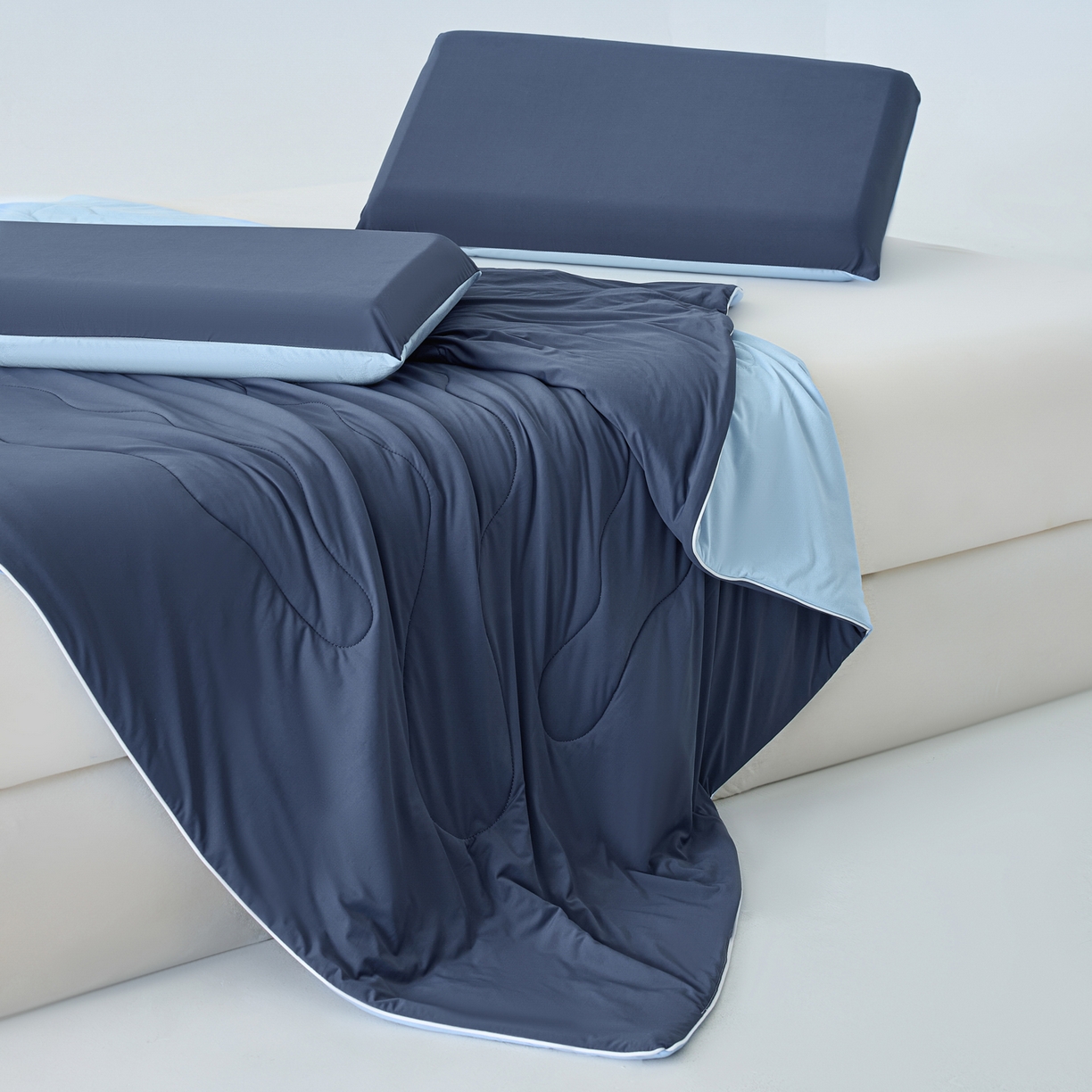 莱登卡奴 2026新款A类凉感丝仿锦氨针织棉双面用夏被 深海雾蓝