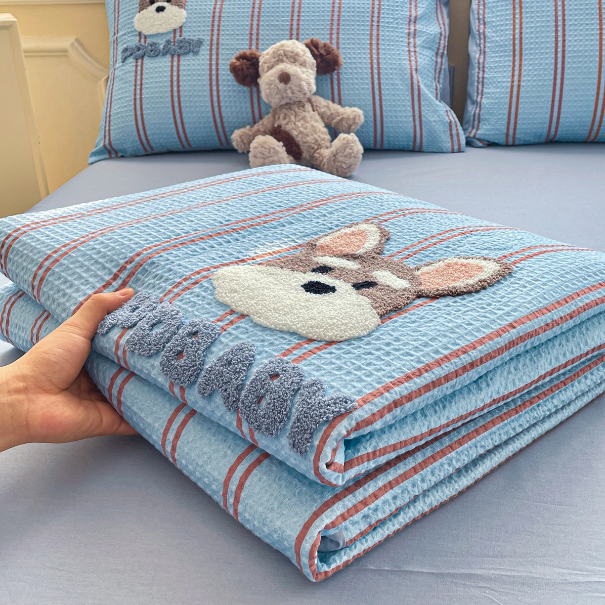 > 产品中心 > 2026春夏新款全棉A类水洗华夫格毛巾绣大豆夏被夏凉被空调被四件套系列