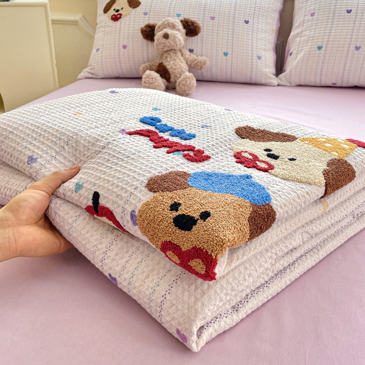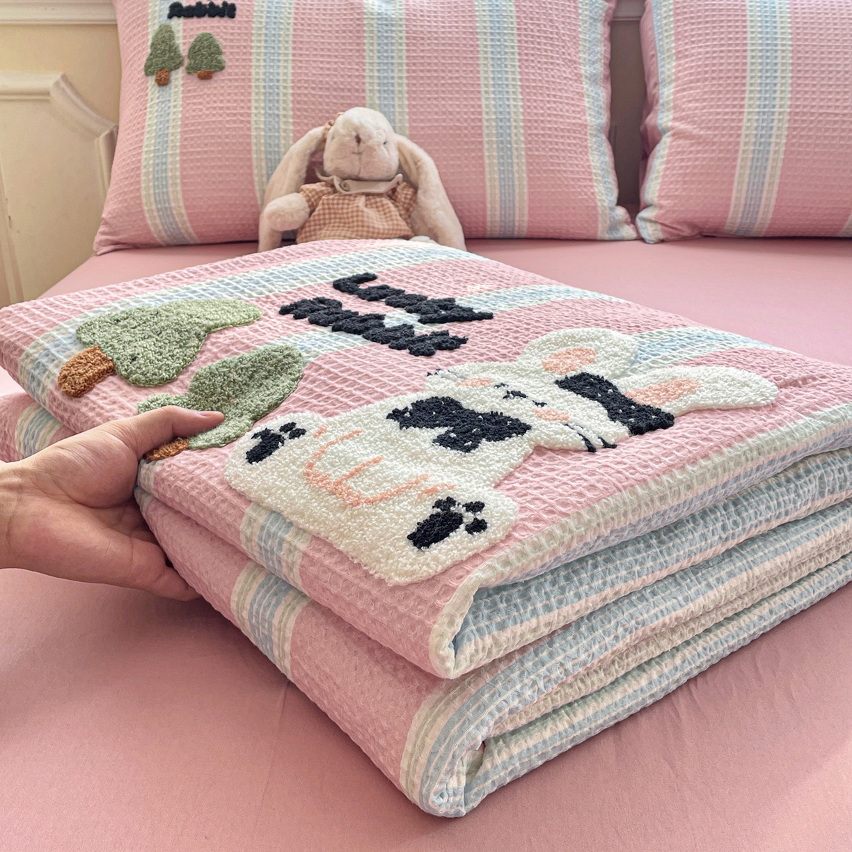 2026春夏新款全棉A类水洗华夫格毛巾绣大豆夏被夏凉被空调被四件套系列