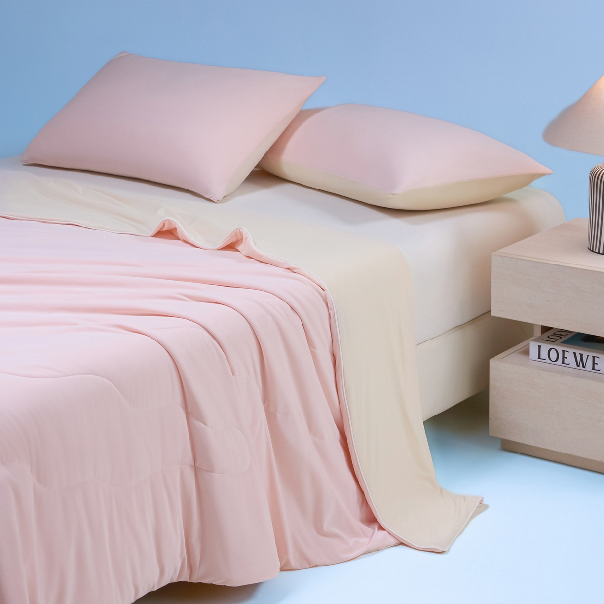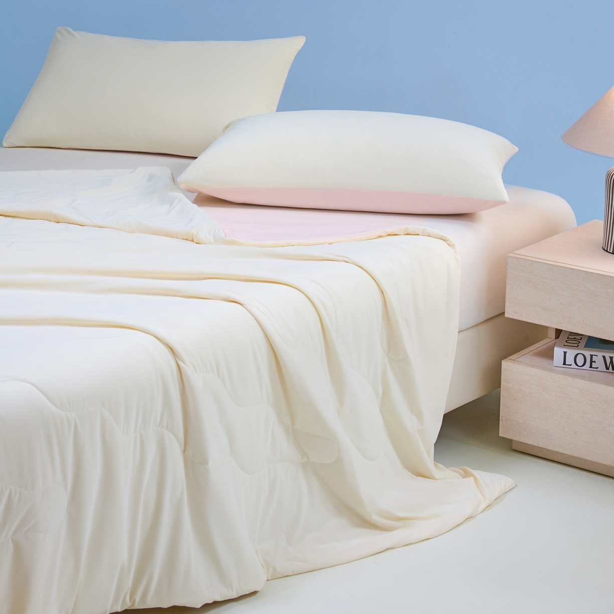 莱登卡奴 2026新款A类凉感丝锦氨撞色夏被夏凉被空调被 锦氨米黄粉