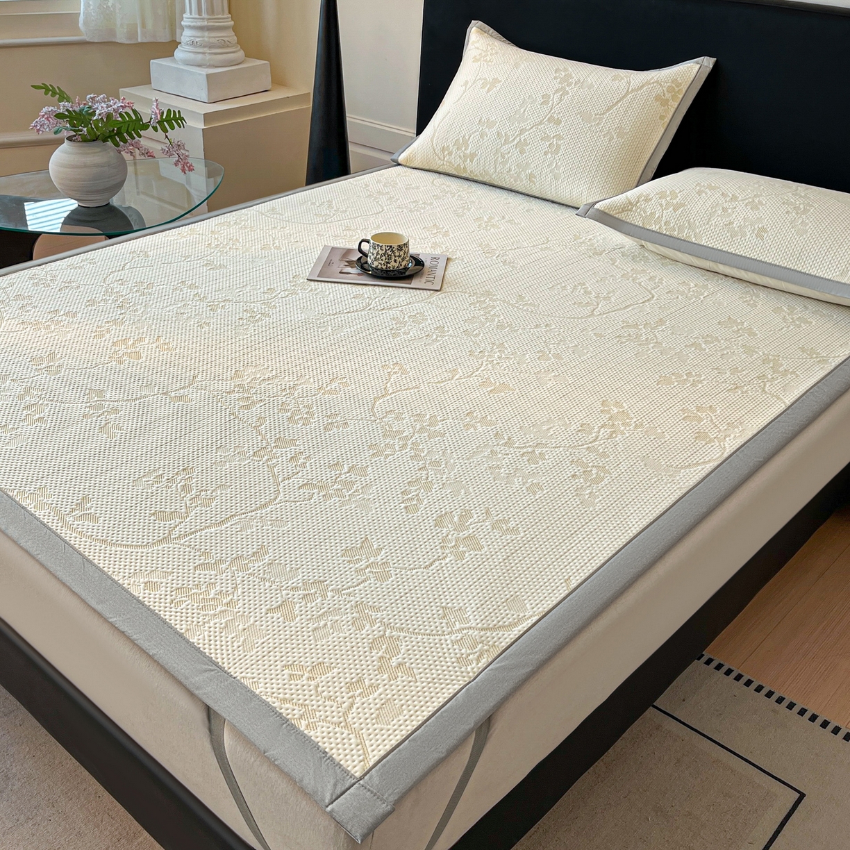2025新款A类云母凉感丝豆豆被夏被凉席系列-花边凉席床笠款